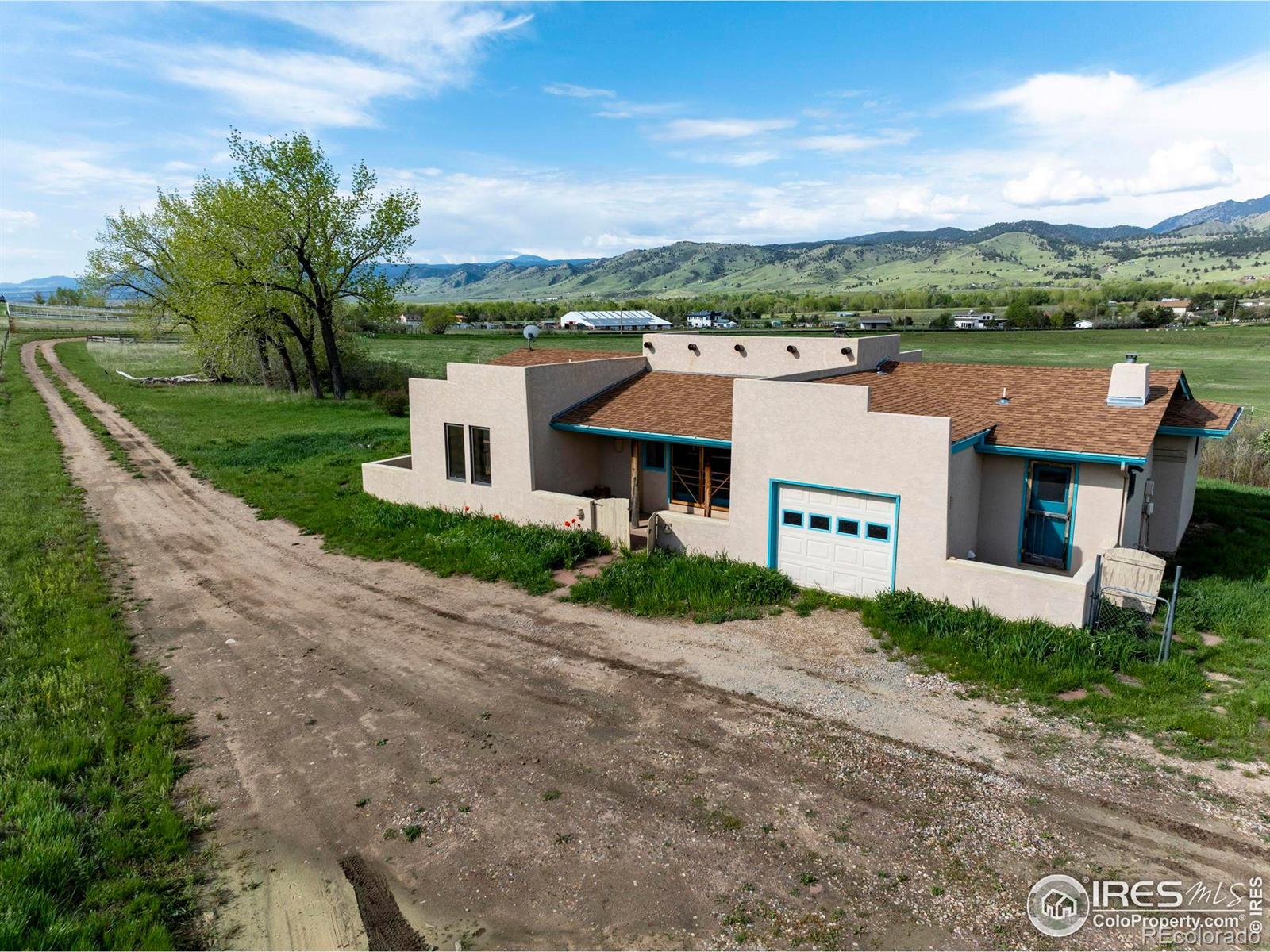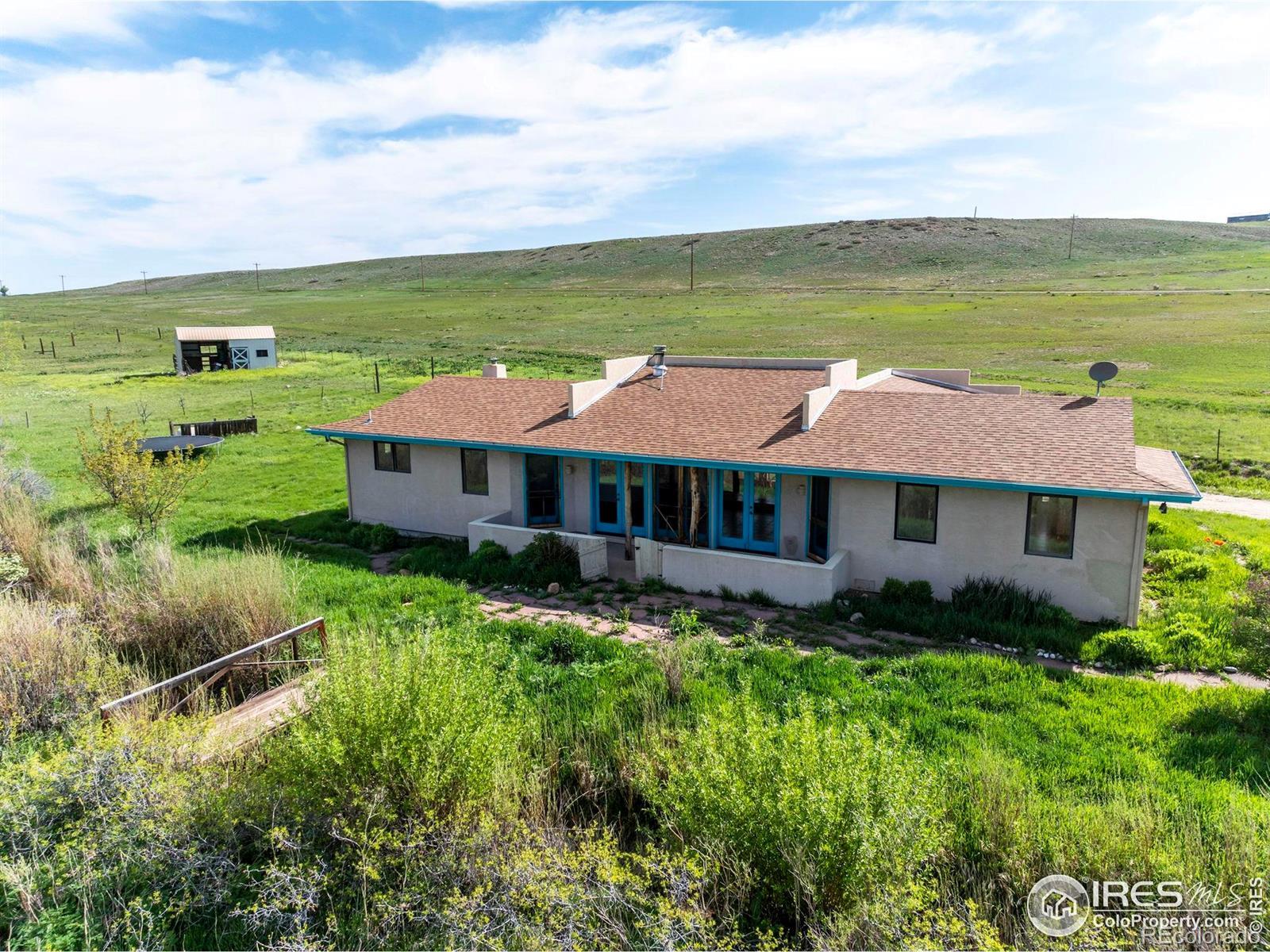 39 peaceful acres! Fabulous mountain views, and plenty of Colorado sunshine. Purchase price includes 20 shares of Lefthand Ditch Water. Small southwestern style home with multiple patios, and many windows to enjoy the views. District water to the house, and radiant floor heat inside of the home. The power lines to the house have been buried, so as not to impede the views. The house does need some work, and primary value is in the land. Home to be sold in "as is" condition. Exceptionally tranquil property!