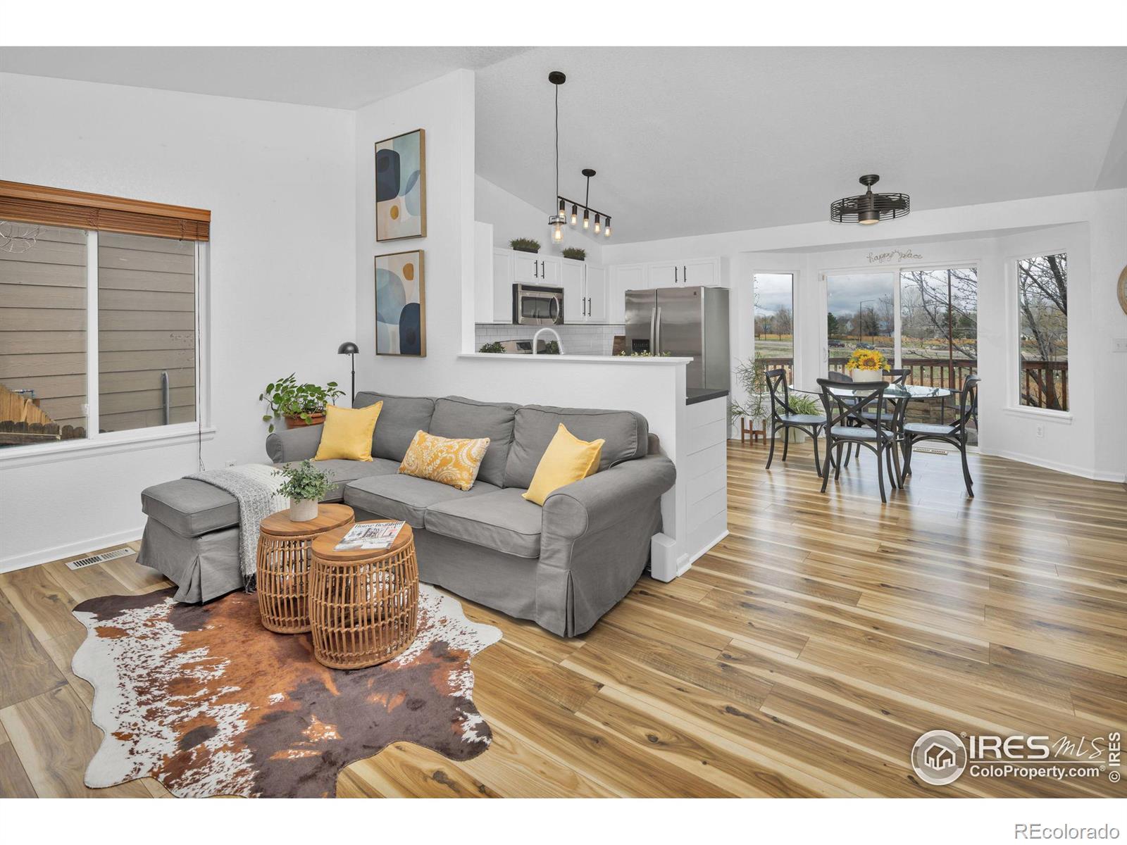Why buy new when this one is offering $25,000 toward closing costs and has it all - NEW ROOF 9/3/2025, plus landscaping, fencing, deck, window coverings, fireplace, refrigerator, and the washer/dryer already included? Skip the delays, extra costs, and bare yards. This move-in ready gem offers incredible value and a lifestyle you'll love from day one. Wake up to stunning mountain views and enjoy sunsets from your freshly stained back deck-true Colorado living. Inside, you'll find a smart layout with wide-plank hickory engineered wood floors, wood trim, tons of natural light, and space to relax, work, and entertain. The main level includes two bedrooms and two living areas-one tucked behind a barn door, perfect for a playroom or home office. The kitchen is absolutely adorable with stainless steel appliances and an eat-in nook with big sky views and fresh mountain air. Downstairs, the walk-out basement (with a shady sitting area under the deck) offers flexibility: a finished rec room, bedroom, and full bath make it ideal for guests, multigenerational living, or a future apartment. Customize it as a gym, studio, or theater-the options are endless. The yard is the perfect size-low maintenance but spacious enough to enjoy. With no homes directly behind, you'll appreciate open views, flowers, and butterflies. A private gate connects to trails leading to Thomas Reservoir-perfect for walking, biking, or fishing. A two-car garage, covered front porch, leaf guard gutters, and other low-maintenance features make daily life easy, and shopping, dining, and top-rated schools are all nearby. Plus, the HOA fees are minimal and the property isnt in a metro district, meaning lower taxes. Back on the market with lifted concrete steps and walkway, a newly stained deck, and fresh interior touch-up paint where needed to keep things looking sharp. Priced to sell-schedule your showing today and make it yours before someone else does.