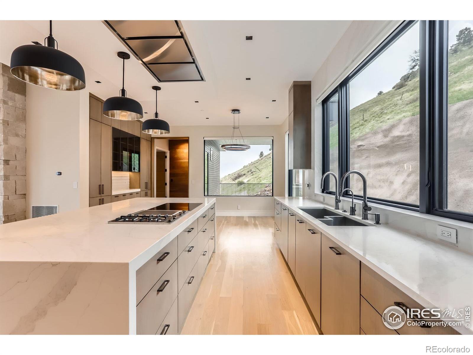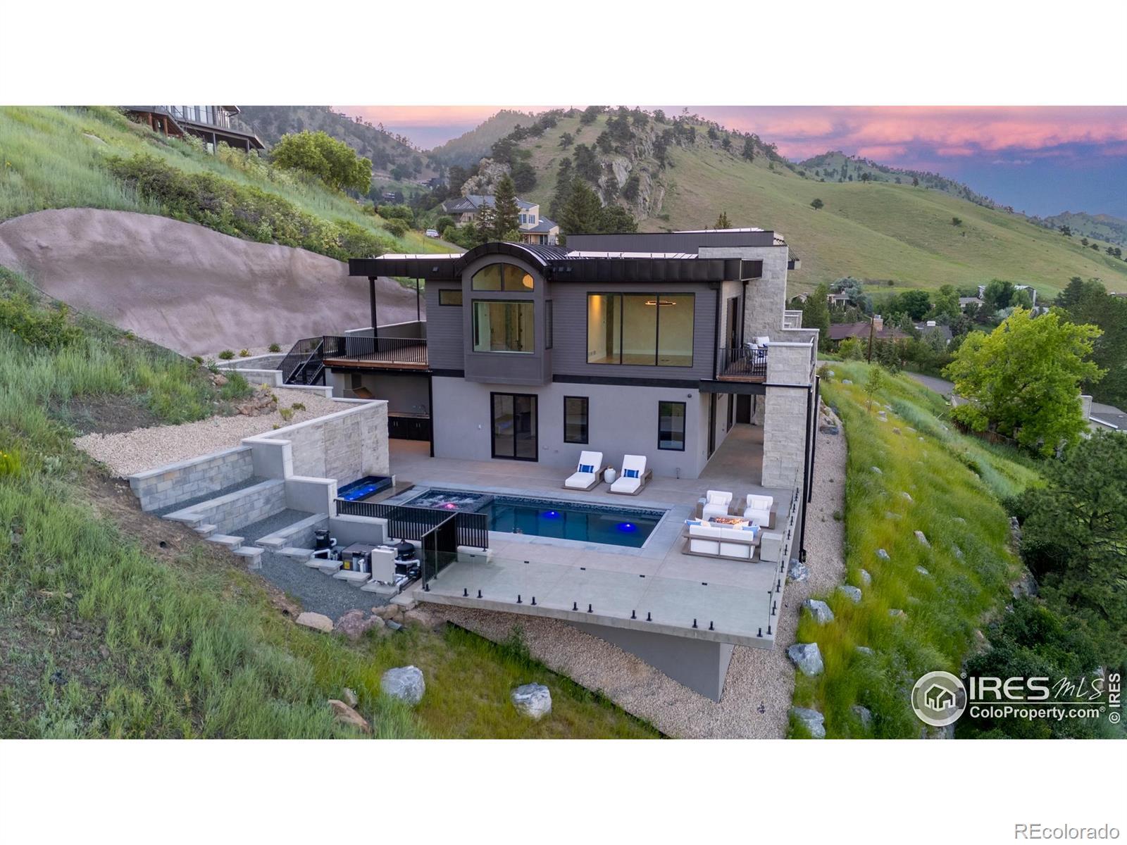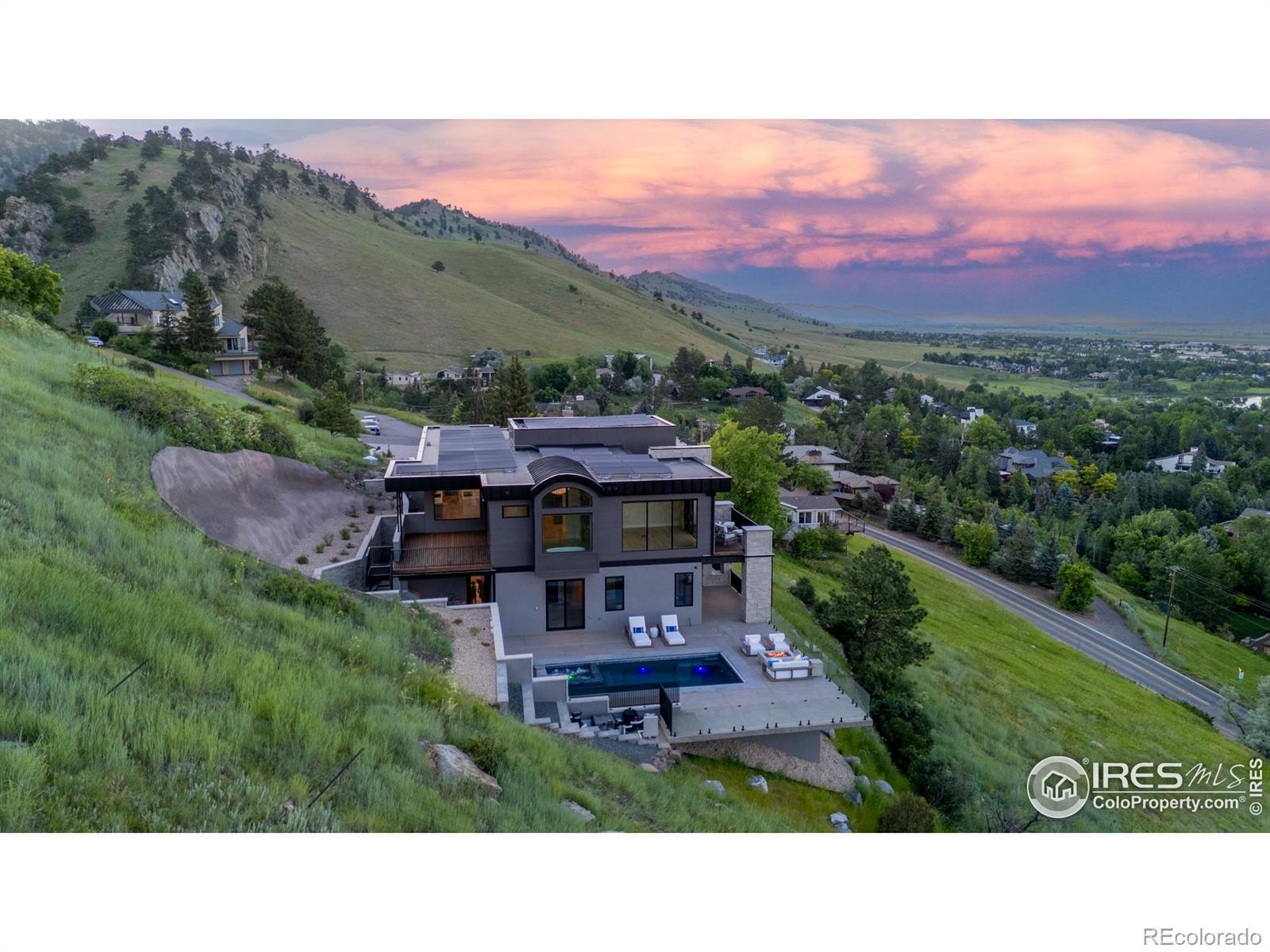 This luxurious new construction home is located just 5 min from downtown Boulder and only 1min from Broadway, offering the perfect blend of convenience and tranquility. With 5,504 sq. ft. of interior living space and an additional 3,650 sq. ft. of decks and patios, the home is designed for both comfort and seamless indoor-outdoor living. Nestled on 1.6 acres, the expansive lot offers plenty of space - large enough for a soccer field or other outdoor amenities tailored to your lifestyle. From the moment you arrive, you'll be captivated by the panoramic views of the city, surrounding mountains, and the stunning Boulder-protected open space that adjoins the property. Designed to maximize these spectacular vistas, the home features large windows throughout, allowing natural light to flood the interiors and create a bright, airy ambiance-all while maintaining a true sense of seclusion and privacy.Inside, highlights include an elevator, top-of-the-line finishes and appliances, and a thoughtfully crafted open-concept main floor, seamlessly connecting the kitchen, dining area, living space, & expansive outdoor decks-perfect for both relaxing and entertaining.The luxurious primary suite offers a private retreat with a spa-like en-suite bathroom and a private deck ideal for morning coffee and soaking in exquisite sunrises.The lower level adds even more to this exceptional home, featuring a spacious family room, a workout room, a private study, and a luxurious spa. Three additional bedrooms provide ample space for guests or family.Additional amenities include an underground 1,200 sq. ft. 6-car garage-a dream for any car enthusiast-and a custom wine cellar.The outdoor living spaces are equally impressive, with a fully equipped outdoor kitchen, pool with hot tub and waterfall feature, and multiple terraces, patios, and porches offering uninterrupted views across Boulder Valley.Don't miss your chance to own this one-of-a-kind property and experience Boulder living at its finest!