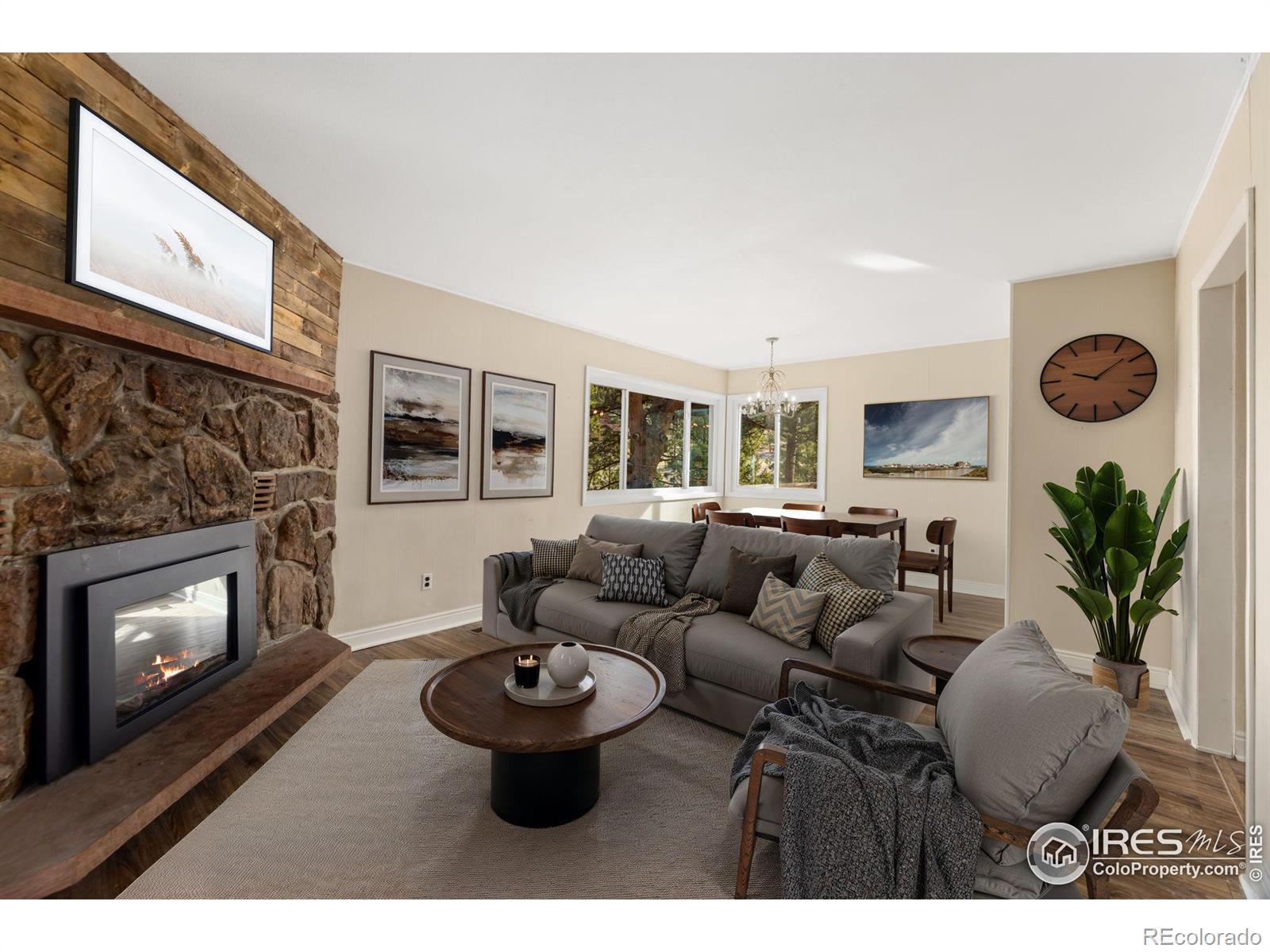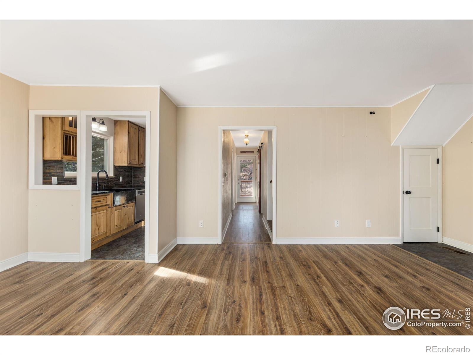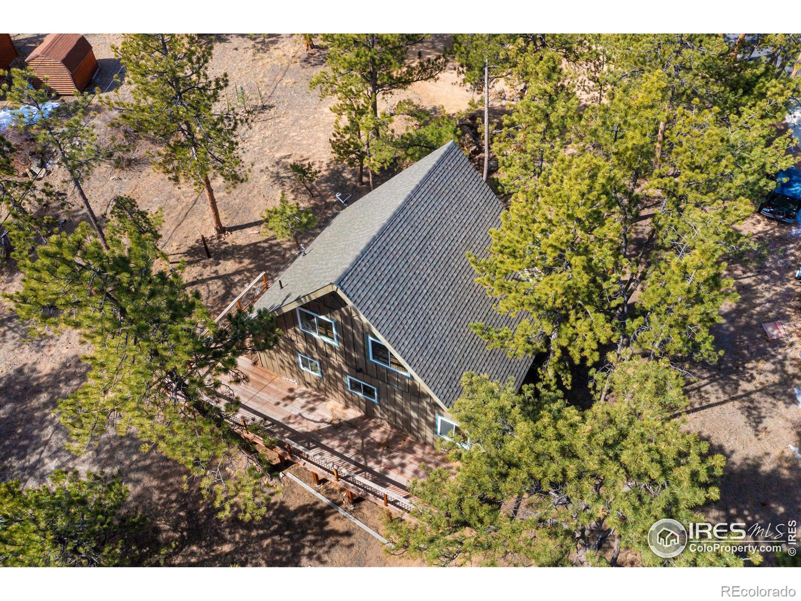 Discover this inviting 3-bedroom, 1.5-bathroom mountain cabin located on a peaceful cul-de-sac in Carriage Hills. Perfect as a full-time residence or mountain getaway, this home sits on a .4-acre wooded lot and offers the tranquil sound of Fish Creek from the spacious back deck. Inside, enjoy comfortable living space, updated in 2022, featuring an electric fireplace, updated flooring, and a warm blend of rustic charm and modern design. The light-filled living area creates a relaxing ambiance, ideal for quiet evenings. The well-appointed kitchen features custom cabinetry, black soapstone countertops, and stainless steel appliances, with direct access to an adjacent laundry area. Upstairs, two additional bedrooms offer flexible space for guests, an office, or creative studio use. Outdoor lovers will appreciate the home's proximity to trails leading to Lake Estes and its short drive to Rocky Mountain National Park. Enjoy easy access to shopping, dining, and year-round recreational opportunities. Additional features include plenty of off-street parking, a spacious deck, and a wooded setting that provides a sense of privacy and natural beauty. Don't miss the opportunity to make this charming Estes Park cabin your next home.