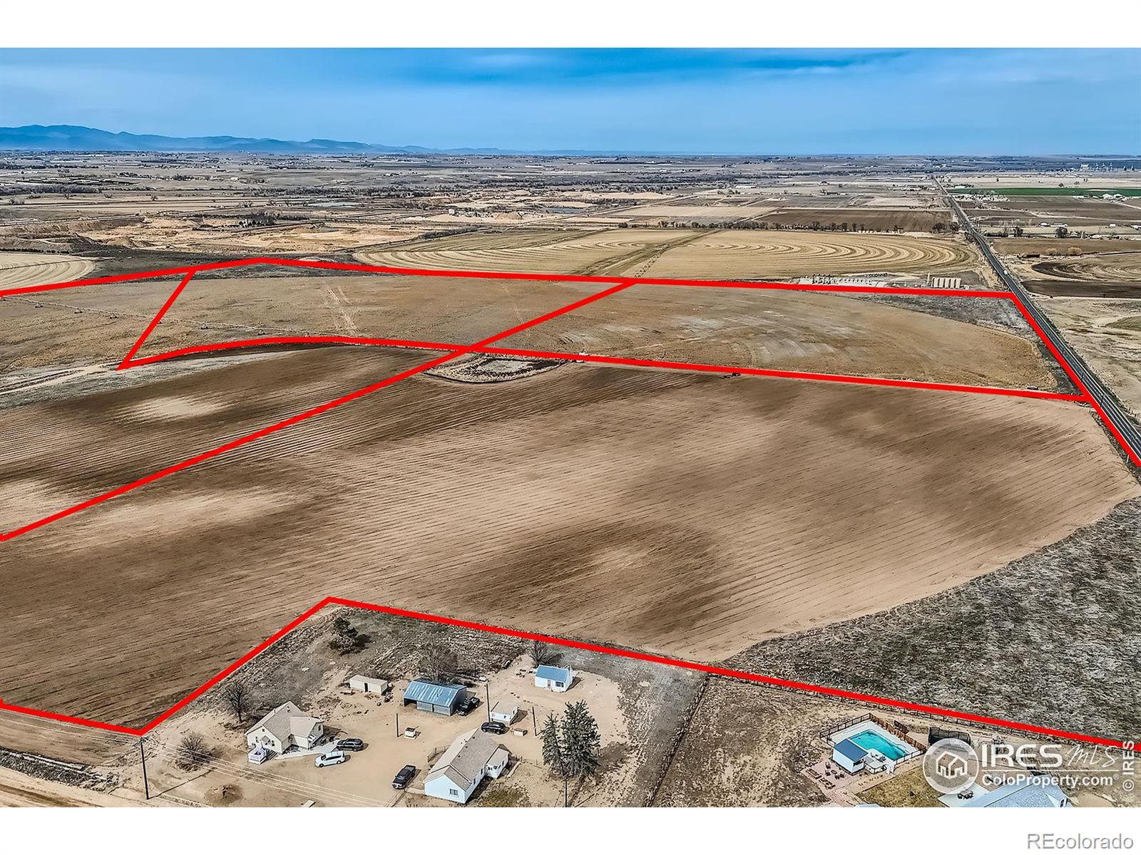 35+ acres with incredible, unobstructed views of the Rocky Mountains, located 5 miles east of I-25 (Mead) and 2 miles south of Hwy 66. There are four - 35+ acre lots currently available. Weld County Agriculture Zoning regs allow for a variety of uses including custom homes, barndominiums, modulars, livestock, etc. As of 06/2025, an additional dwelling unit (ADU) is allowed on each lot, so it could be a great set-up for a multi-generational property. No mineral or irrigation water rights included. Actively farmed so please DO NOT drive on the property. Buyer is responsible for procuring a water Tap from Central Weld County Water District. Pivot sprinkler is excluded. Please call with questions.