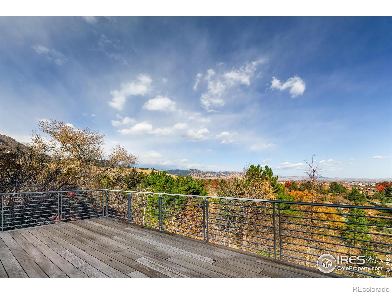 Come relax and soak in the views in this newly furnished South Boulder modern beauty on .38 acre. MAIN LEVEL owner's wing with 2 bedrooms and 2 bathrooms. 3 more bedrooms (or 2 plus office with interior and exterior access) on the lower level / 4.5 bathrooms / 4196sf / .38 acres for adding an ADU or pool / 2018 full remodel and addition by ACI. Experience 360-degree panoramic views of Boulder's majestic landscape from this stunning contemporary residence, meticulously designed by M. Gerwing Architects and re-constructed in 2018. An enviable address, 2235 Vassar Dr in Boulder, Colorado offers an unparalleled living experience. *ARCHITECTURAL EXCELLENCE* The home's sleek design seamlessly integrates indoor and outdoor spaces, featuring an expansive 18' x 9' NanaWall that invites natural light and fresh air, opening to a spacious deck perfect for entertaining. The chef-caliber kitchen boasts custom Afromosia cabinetry, Hemlock wood ceilings and exquisite rainforest marble countertops, creating a harmonious blend of form and function. *LUXURIOUS AMENITIES* // Rooftop Retreat: Enjoy evenings on the rooftop deck enveloped in stunning views of the surrounding mountains and cozy year round enjoyment courtesy of the gas fire pit and built-in seating. // Spa-Inspired Bathrooms: Each bathroom is equipped with tiled, radiant floor heating providing comfort and luxury. // Entertainment Ready: A theater room, prepped for smart home integration, awaits your cinematic experiences. // Advanced Home Systems: Outfitted with Lutron Palladiom lighting, a Savant system and a whole-house music system, this home ensures modern convenience at your fingertips. This residence is a testament to modern design and luxury, offering a unique opportunity to own a piece of Boulder's finest real estate. Mere steps to untouched nature & some of Boulder's finest trails, yet close to restaurants, shopping & transportation with an easy commute to Denver, DIA & the slopes. Extensive features list in docs.