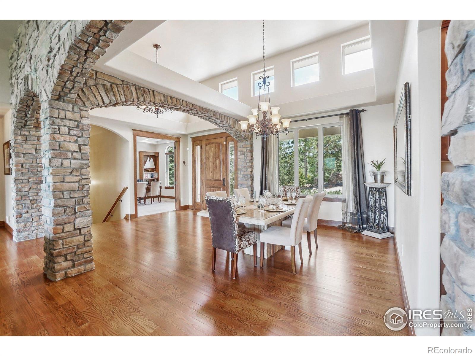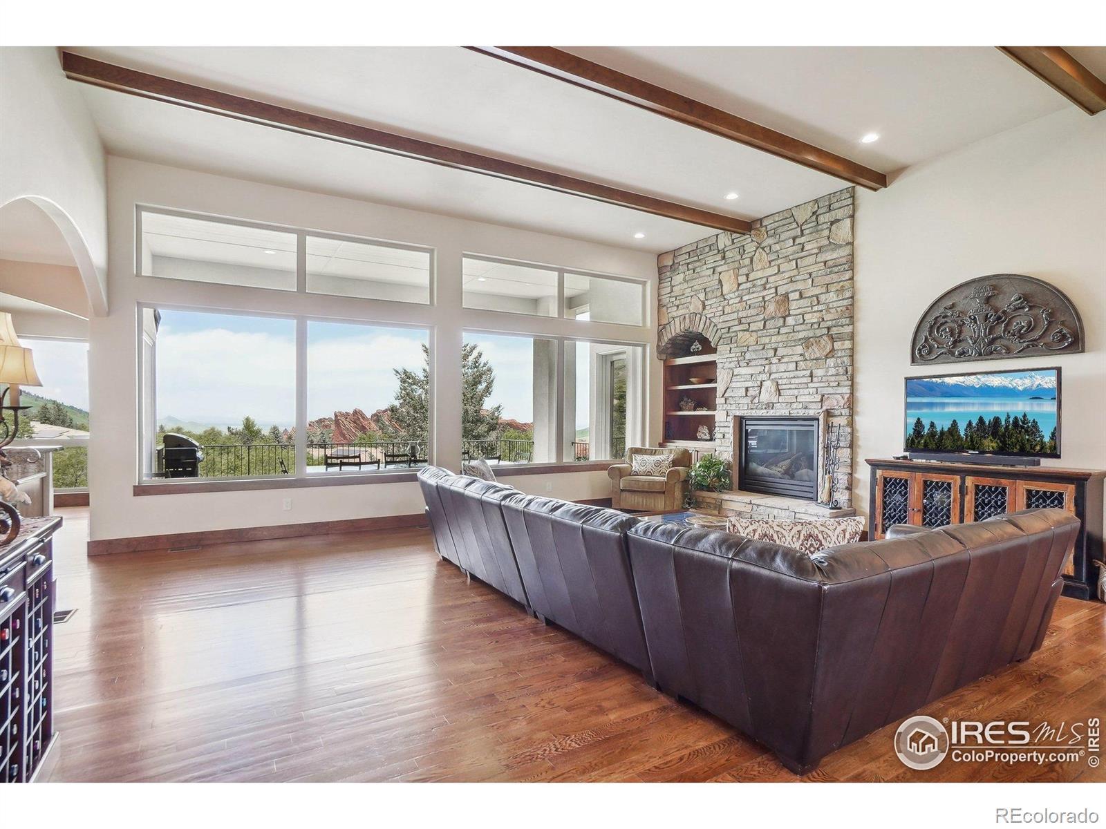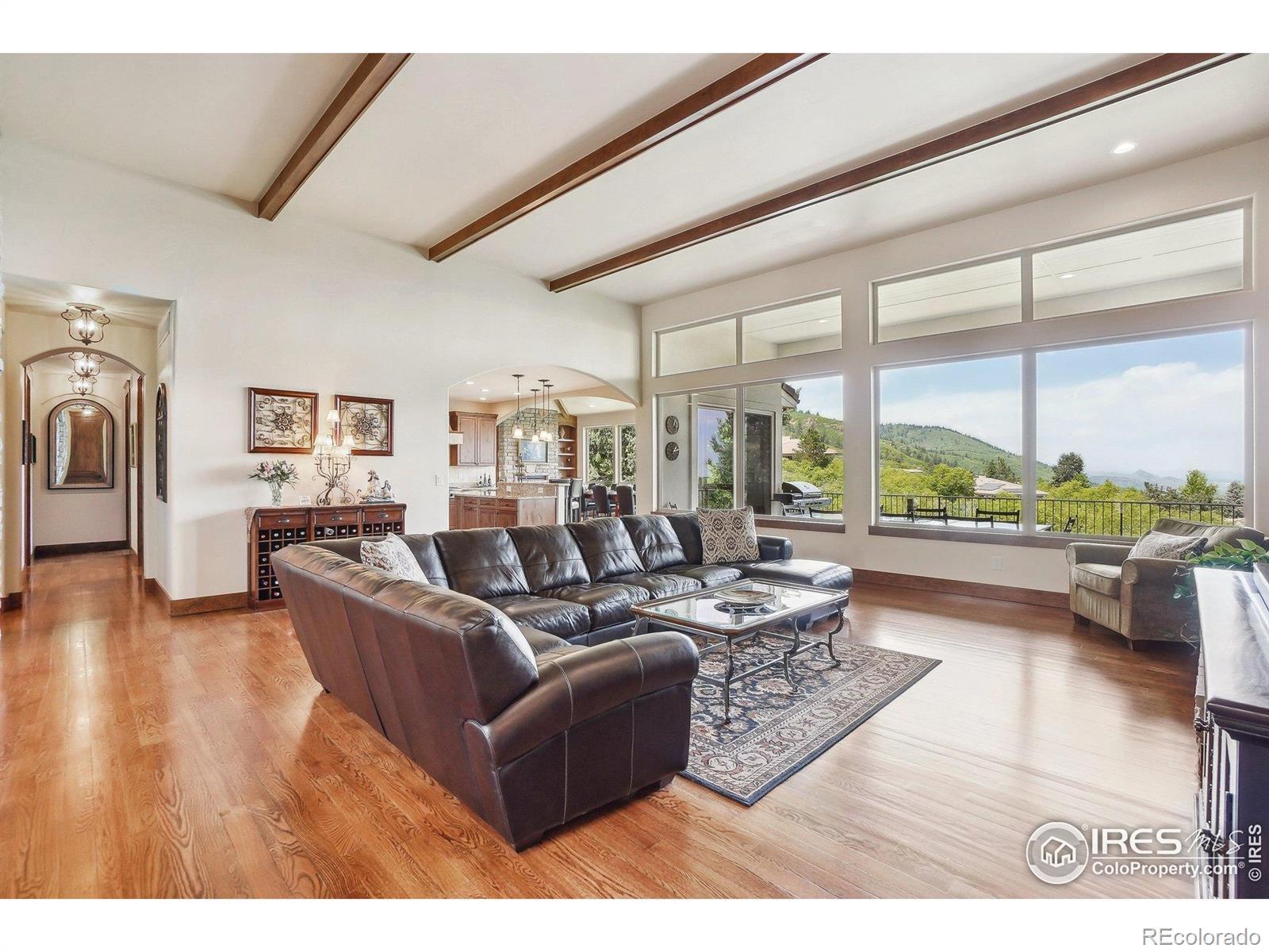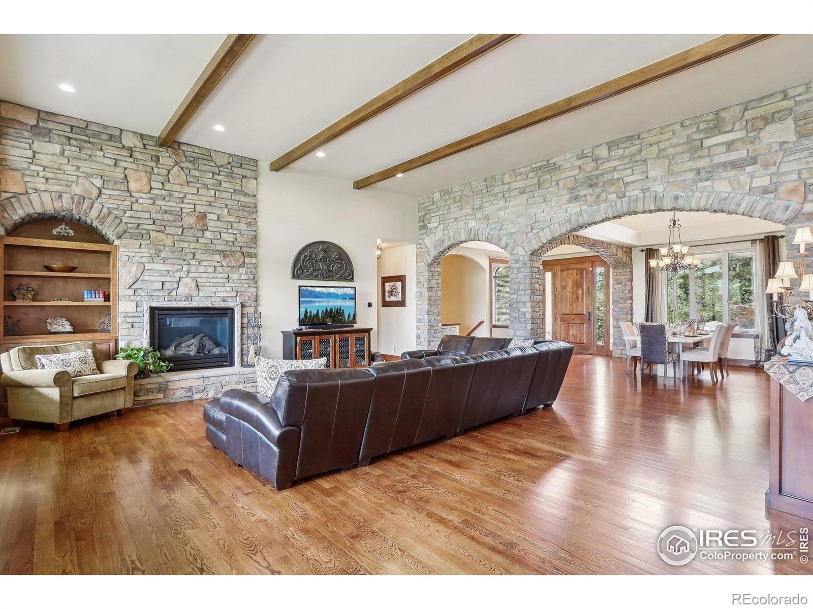 Enter this exquisite home & take in panoramic views of red rocks, city lights, foothills through a wall of windows that set the tone. Inspired by Tuscan architecture & designed for refined living, this custom residence in tranquil Stonehenge at Roxborough Park blends craftsmanship, comfort & natural beauty. Original owners used superior finishes throughout: Knotty alder cabinetry, slab granite, hand trowel walls, as well as, recent thoughtful updates, maintaining the home's "better than new" feel. Offering 5,300 finished sqft, it includes 4 beds, 6 baths, 800 sqft of mechanical/storage space plus an oversized 4-car garage. Sunlit foyer opens through stone archways to a vaulted Great Room with floor-to-ceiling stone fireplace, formal Dining Room, Serving Pantry & wet bar. Office includes built-in bookcases & a trio of windows for an ideal workspace. A chef's dream, the gourmet kitchen features a large island, granite counters, SS appliances, alder cabinetry & a walk-in pantry with desk. The Hearth Room has a cozy fireplace, tall windows & access to an expansive covered deck for dining & relaxation. Luxurious Primary Suite provides majestic red rock views, sitting area, fireplace, spa-like 5-piece bath & generous walk-in closet. A second en suite guest room & well-equipped Laundry Room complete the main level. Walk-out lower level expands the living space with a spacious Family & Game Room wrapped in stone arches, beamed 9-ft ceilings, Wet Bar/Kitchenette, 1,500-bottle Wine Cellar & intimate Tasting Grotto. Glass doors open to a private, covered patio blending indoor/outdoor living. 2 large en suite bedrooms with large windows, sitting areas & walk-in closets complete the lower level. Recent upgrades include new HVAC system, 2 hot water heaters, enhanced lighting, & monitored wireless security system. Located in a gated golf course community with miles of trails & access to Roxborough State Park, this one-of-a-kind home offers the ultimate in casually elegant living.