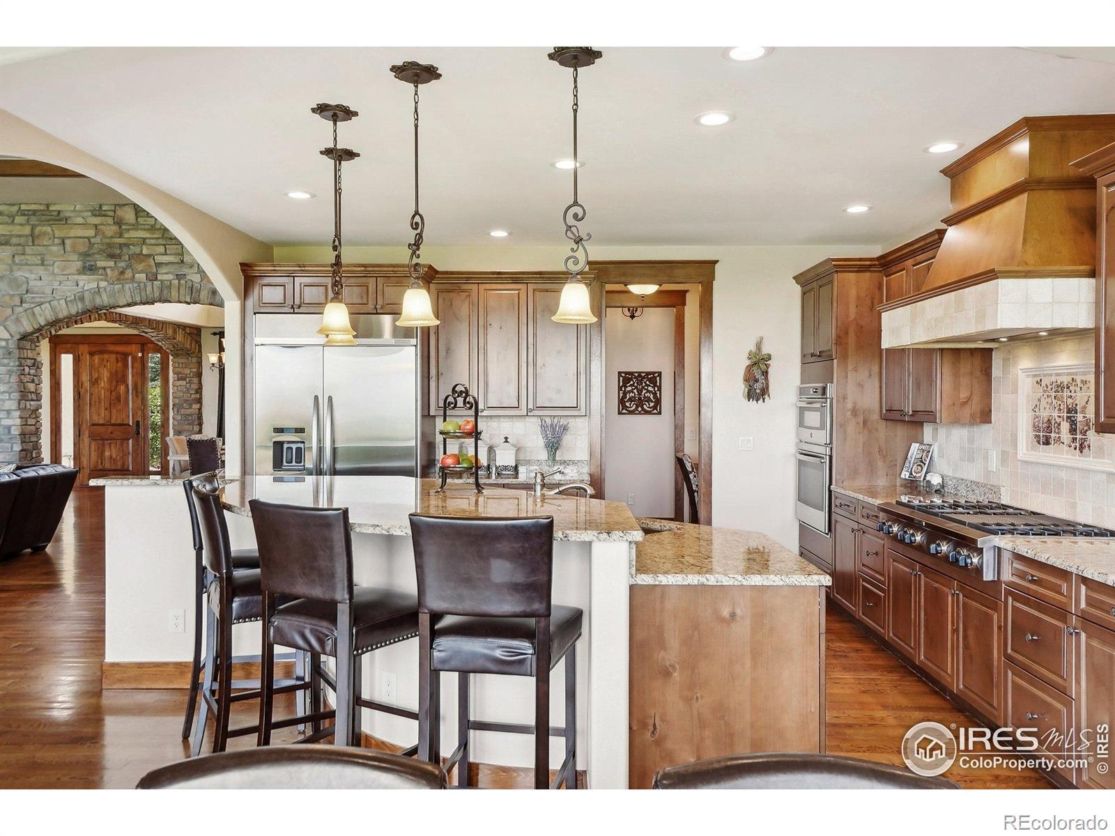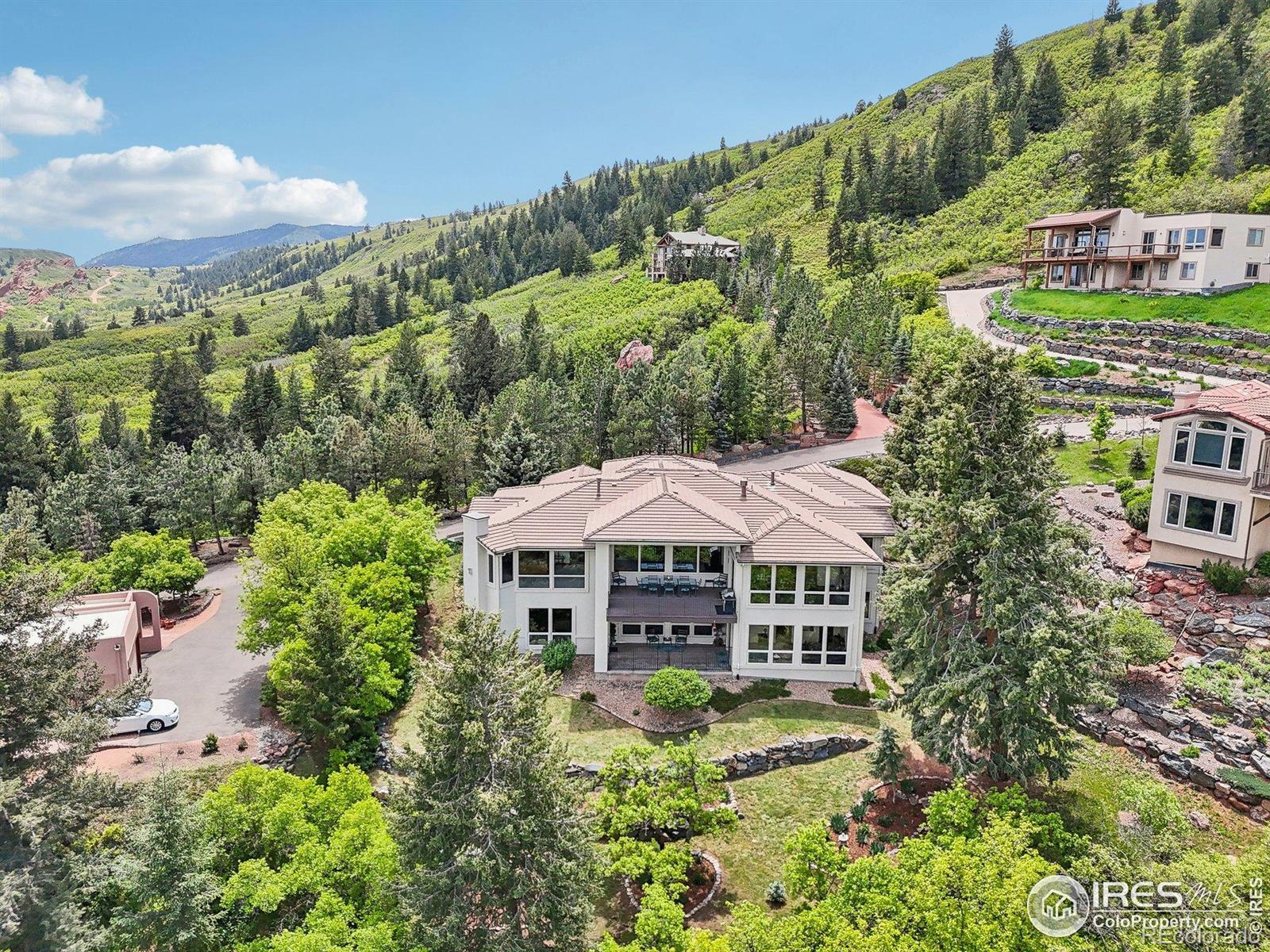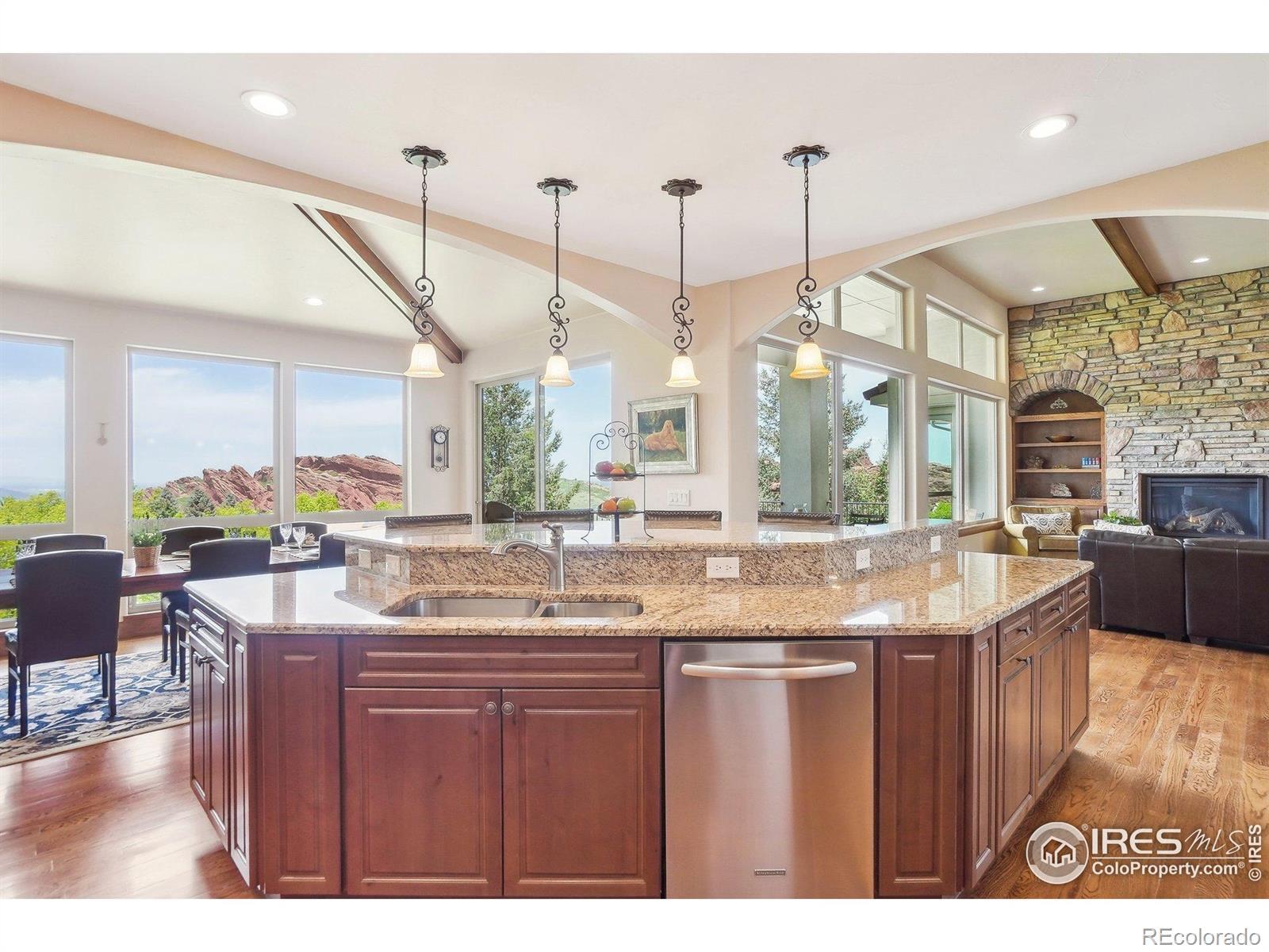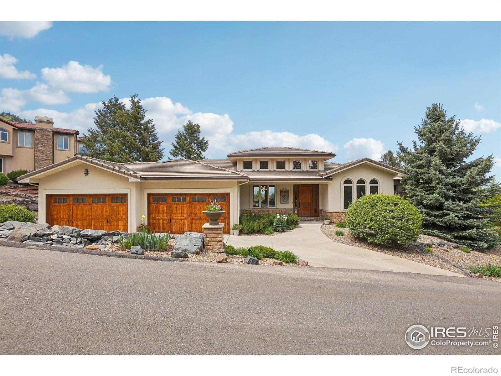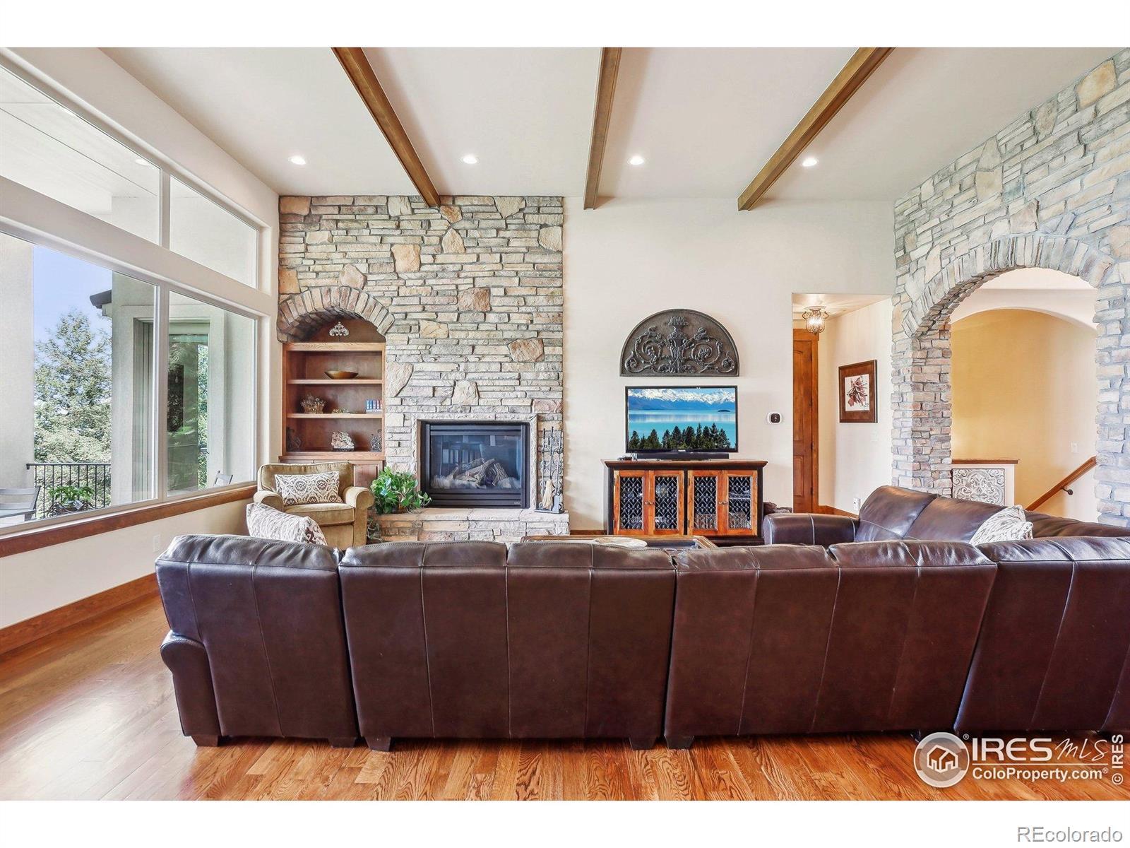 Enter this exquisite home & take in panoramic views of red rocks, city lights, foothills through a wall of windows that set the tone. Inspired by Tuscan architecture & designed for refined living, this custom residence in tranquil Stonehenge at Roxborough Park blends craftsmanship, comfort & natural beauty. Original owners used superior finishes throughout: Knotty alder cabinetry, slab granite, hand trowel walls, as well as, recent thoughtful updates, maintaining the home's "better than new" feel. Offering 5,300 finished sqft, it includes 4 beds, 6 baths, 800 sqft of mechanical/storage space plus an oversized 4-car garage. Sunlit foyer opens through stone archways to a vaulted Great Room with floor-to-ceiling stone fireplace, formal Dining Room, Serving Pantry & wet bar. Office includes built-in bookcases & a trio of windows for an ideal workspace. A chef's dream, the gourmet kitchen features a large island, granite counters, SS appliances, alder cabinetry & a walk-in pantry with desk. The Hearth Room has a cozy fireplace, tall windows & access to an expansive covered deck for dining & relaxation. Luxurious Primary Suite provides majestic red rock views, sitting area, fireplace, spa-like 5-piece bath & generous walk-in closet. A second en suite guest room & well-equipped Laundry Room complete the main level. Walk-out lower level expands the living space with a spacious Family & Game Room wrapped in stone arches, beamed 9-ft ceilings, Wet Bar/Kitchenette, 1,500-bottle Wine Cellar & intimate Tasting Grotto. Glass doors open to a private, covered patio blending indoor/outdoor living. 2 large en suite bedrooms with large windows, sitting areas & walk-in closets complete the lower level. Recent upgrades include new HVAC system, 2 hot water heaters, enhanced lighting, & monitored wireless security system. Located in a gated golf course community with miles of trails & access to Roxborough State Park, this one-of-a-kind home offers the ultimate in casually elegant living.