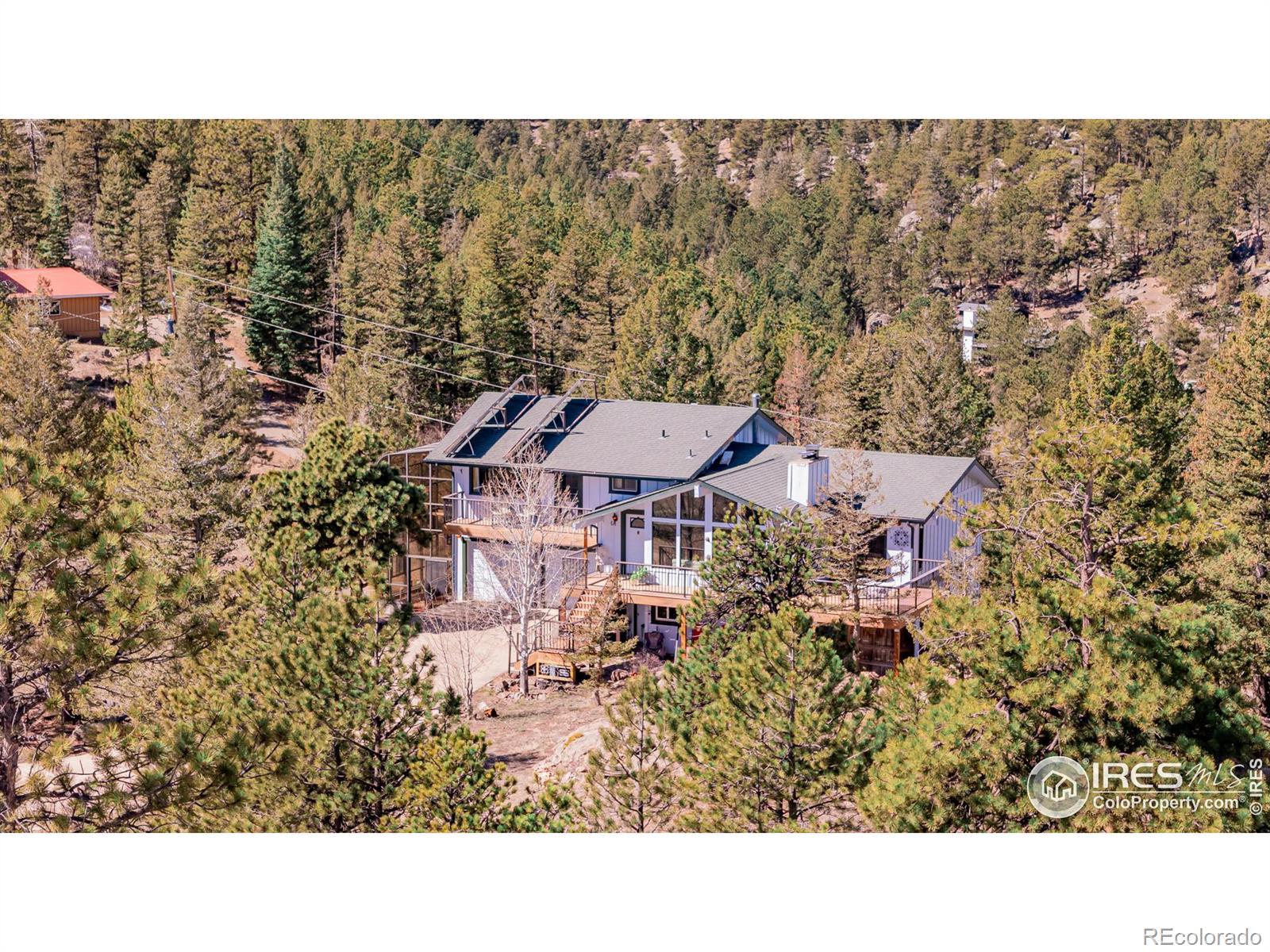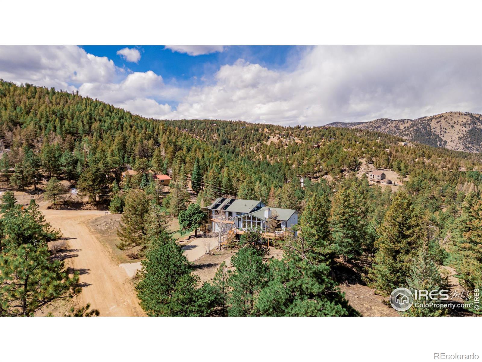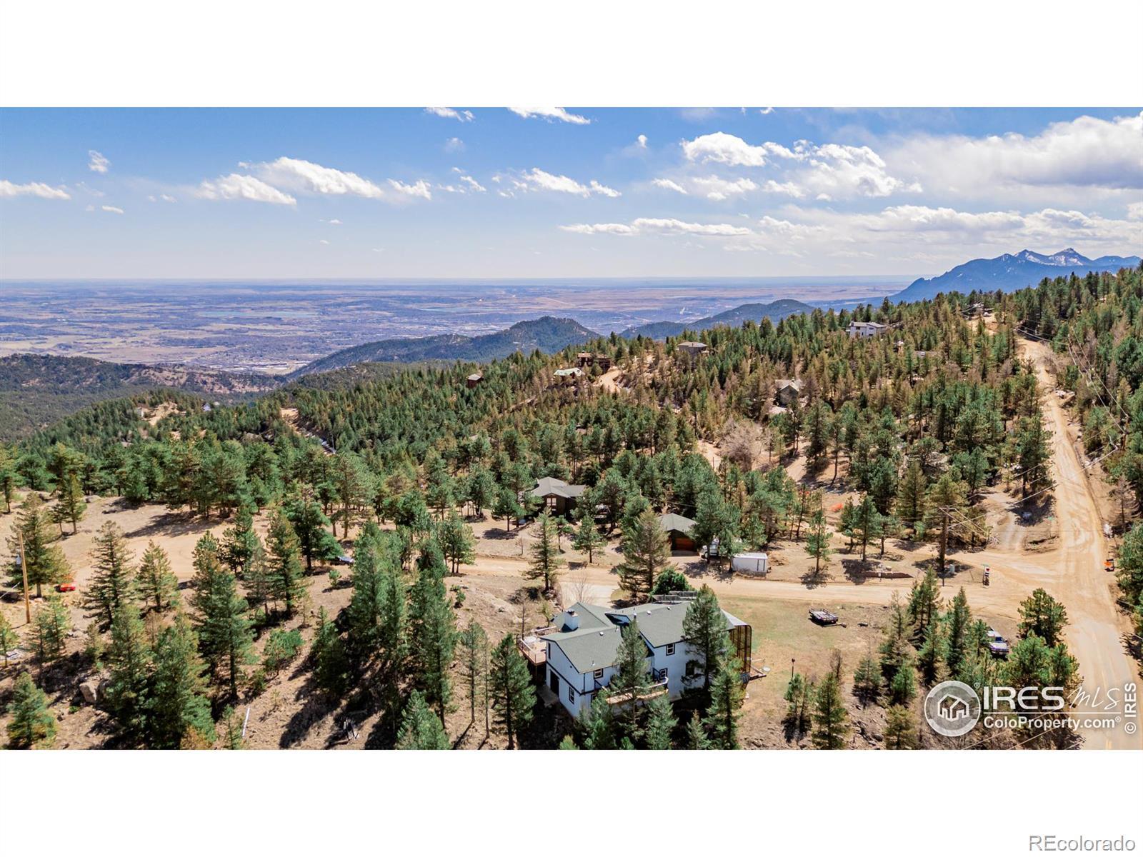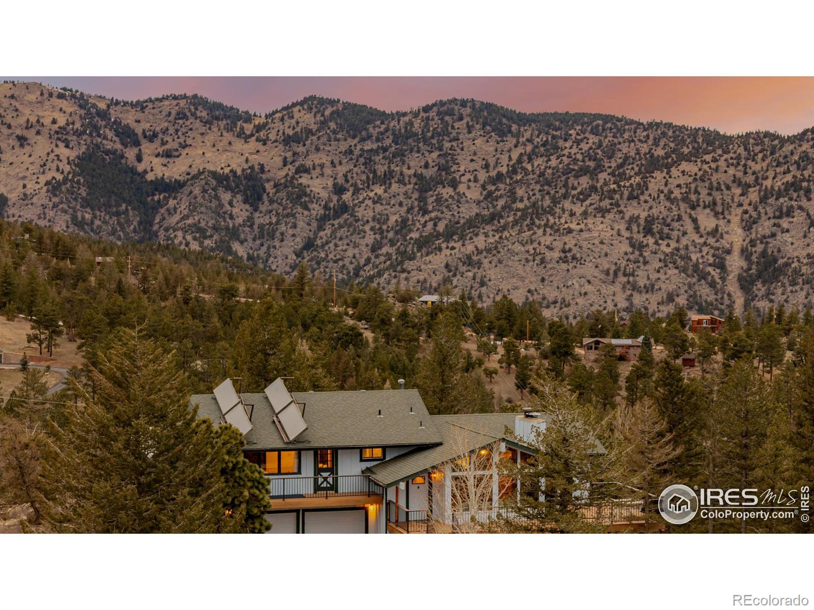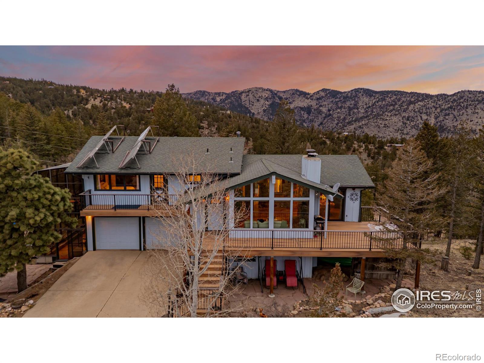 What a RARE find! Situated on a corner gently sloping 1.47-acre lot of a cul-de-sac, this beautiful property offers unparalleled privacy, tranquility, and panoramic views of the Foothills & the sparkling lights of Boulder Valley. Offering 4 bedrooms, 3 bathrooms, and an oversized 2-car garage w/extended driveway. The interior beautifully embraces a rustic contemporary style, blending natural materials like wood and stone with modern design elements to create a warm & inviting atmosphere! Enhanced by abundant natural light, vaulted ceilings, exposed beams, a designer palette, and wood-look flooring w/plush carpet in all the right places. Discover the separate dining room and the welcoming living room with a fireplace! The kitchen boasts solid-surface counters, a subway tile backsplash, ample wood cabinetry, and a peninsula w/breakfast bar. You'll LOVE the main bedroom with a full bathroom! It also includes access to the attached solarium/greenhouse, where you can watch the snow fall in warmth and comfort. But that's not all-the large walk-out basement will impress! It features an inviting family room, an additional fireplace, a bathroom, 4th bedroom, and sliding doors that merge the inside/outside activities. Imagine sipping your favorite beverage while enjoying the breathtaking mountain vistas right from your multiple decks! This residence is surrounded by towering pine trees and scenic rock outcroppings, creating a tranquil retreat to unwind, watch wildlife, and soak in the beauty of nature. Located on a county-maintained and plowed road, this home offers year-round accessibility. PLUS! Just minutes from downtown Boulder's shops, restaurants, hiking trails, and top-rated schools, this home blends serene mountain living with easy city access. Don't miss this opportunity to own a piece of Boulder's coveted mountain community!