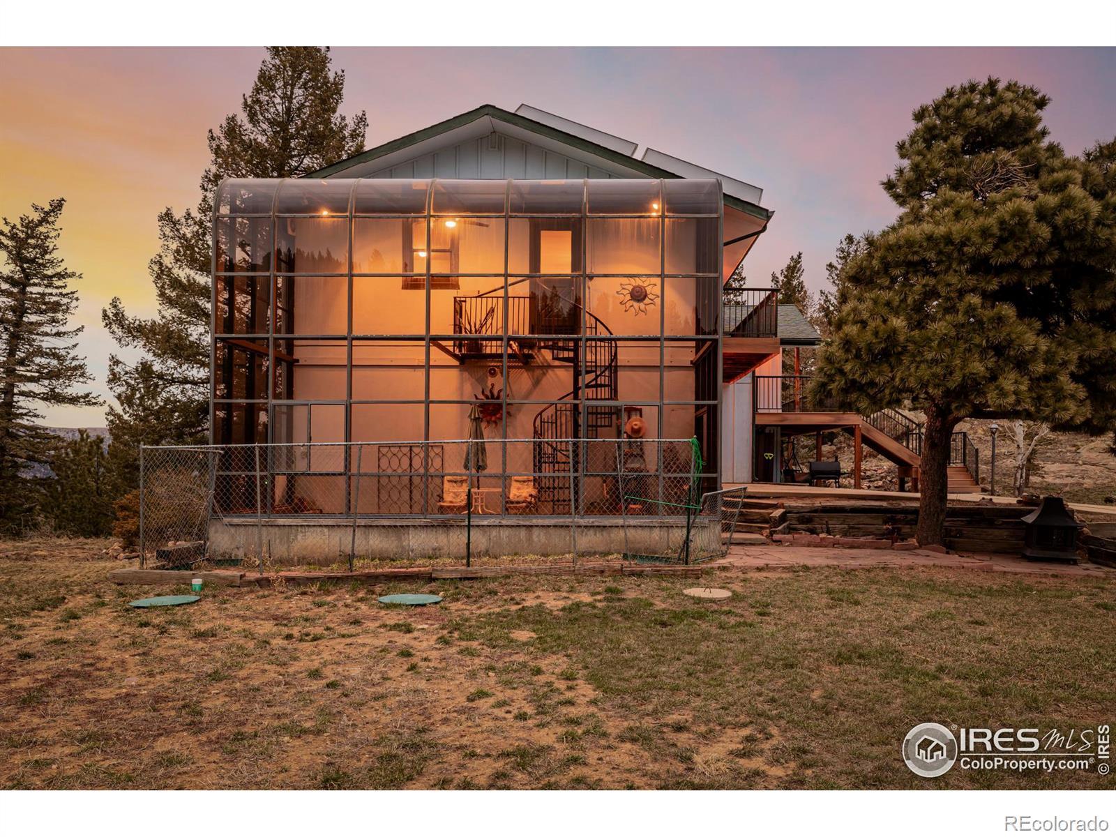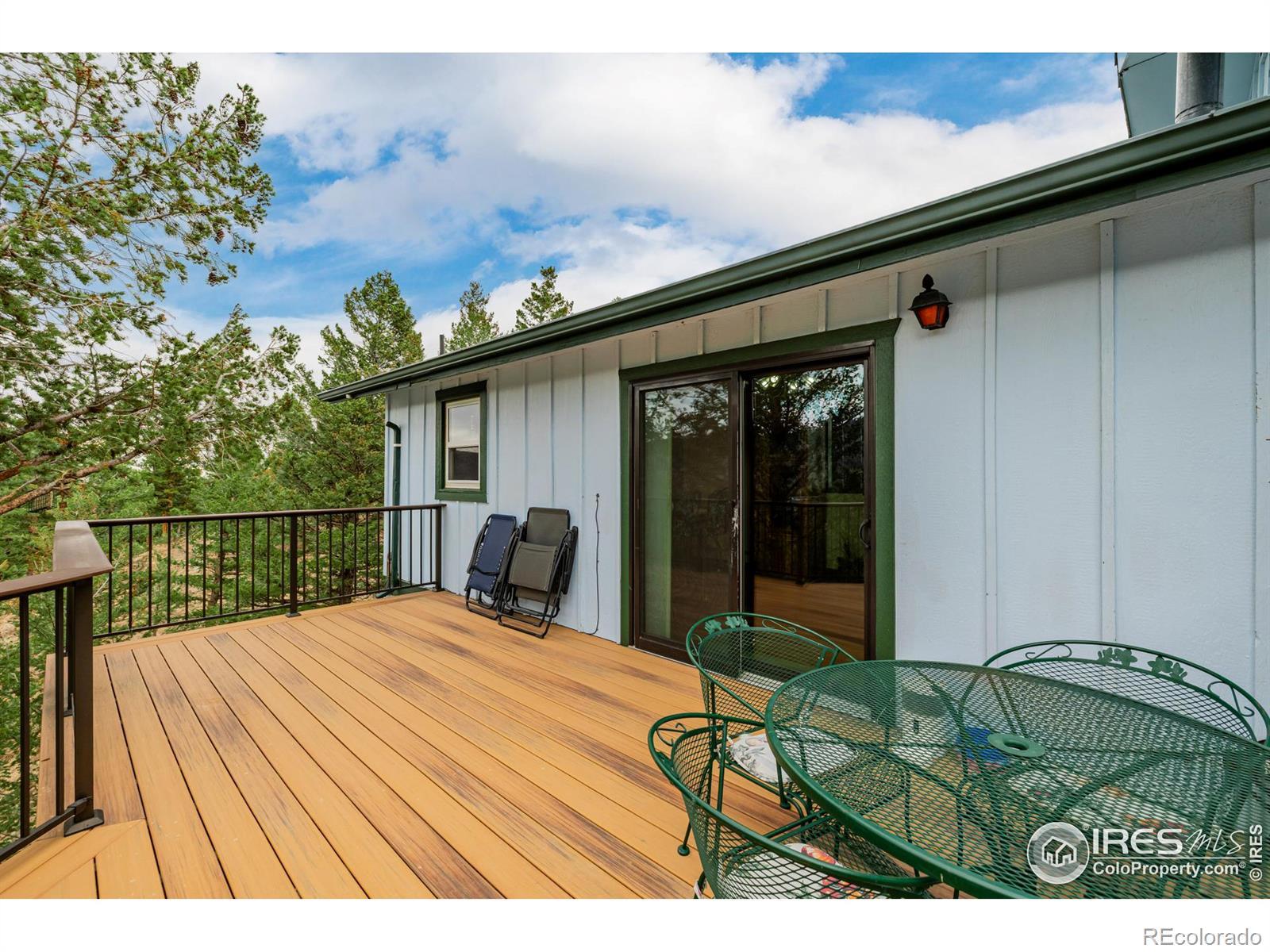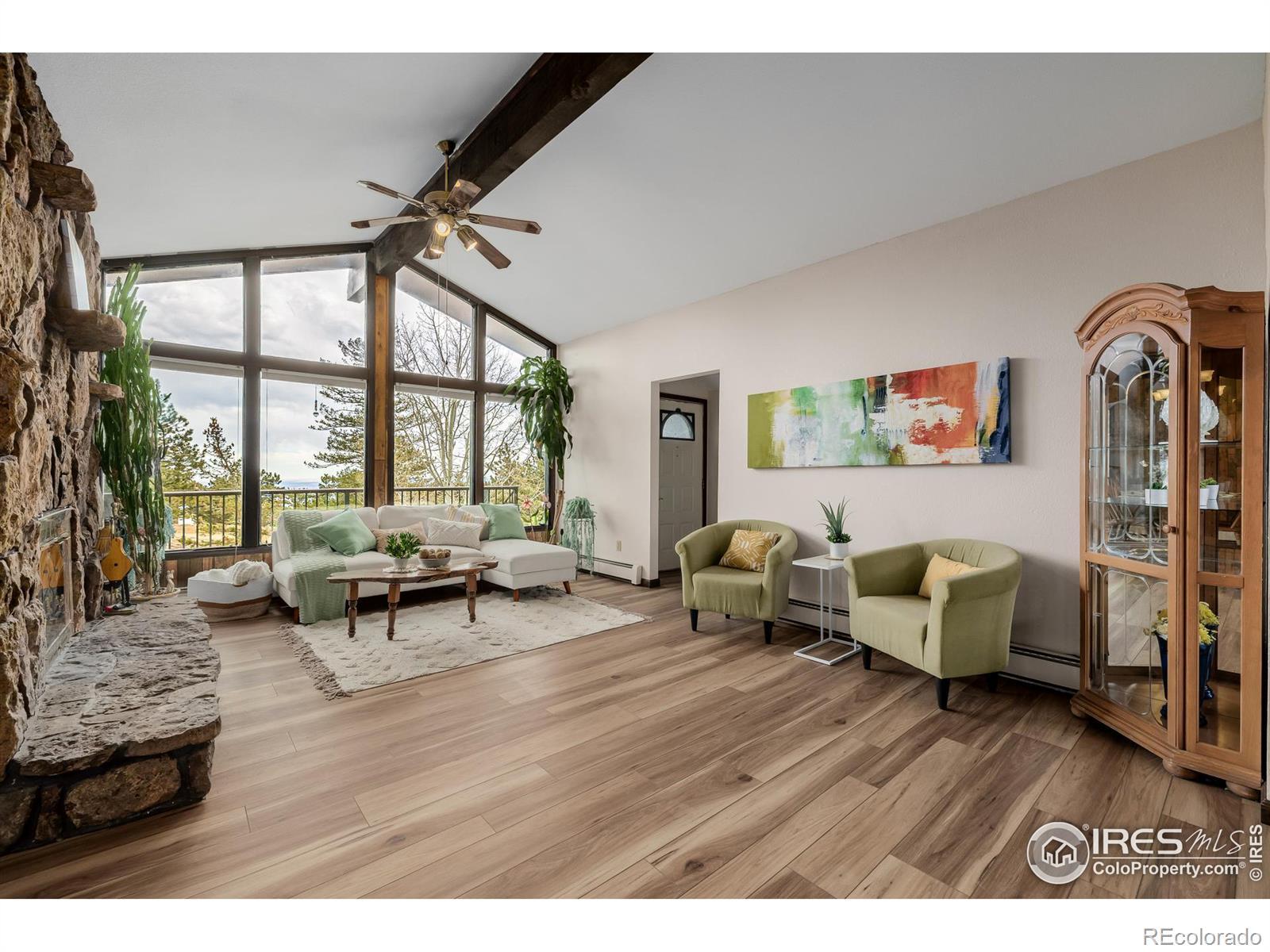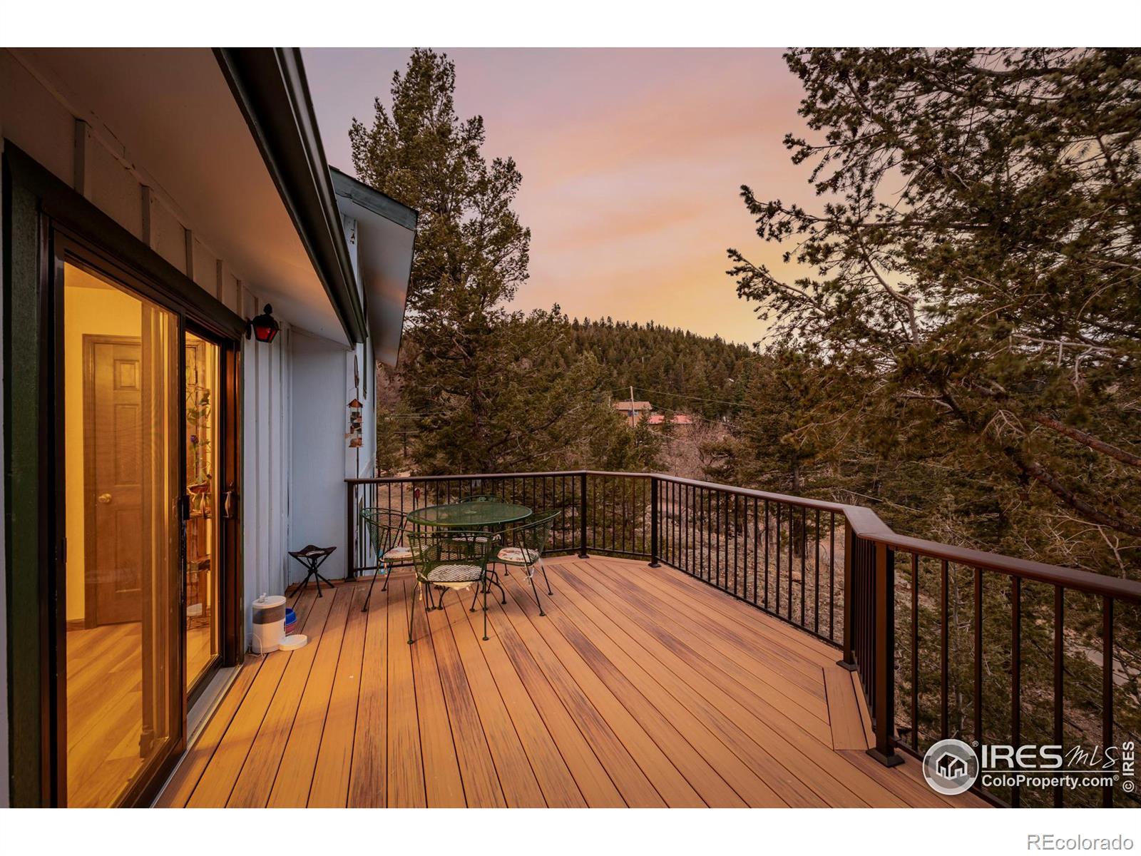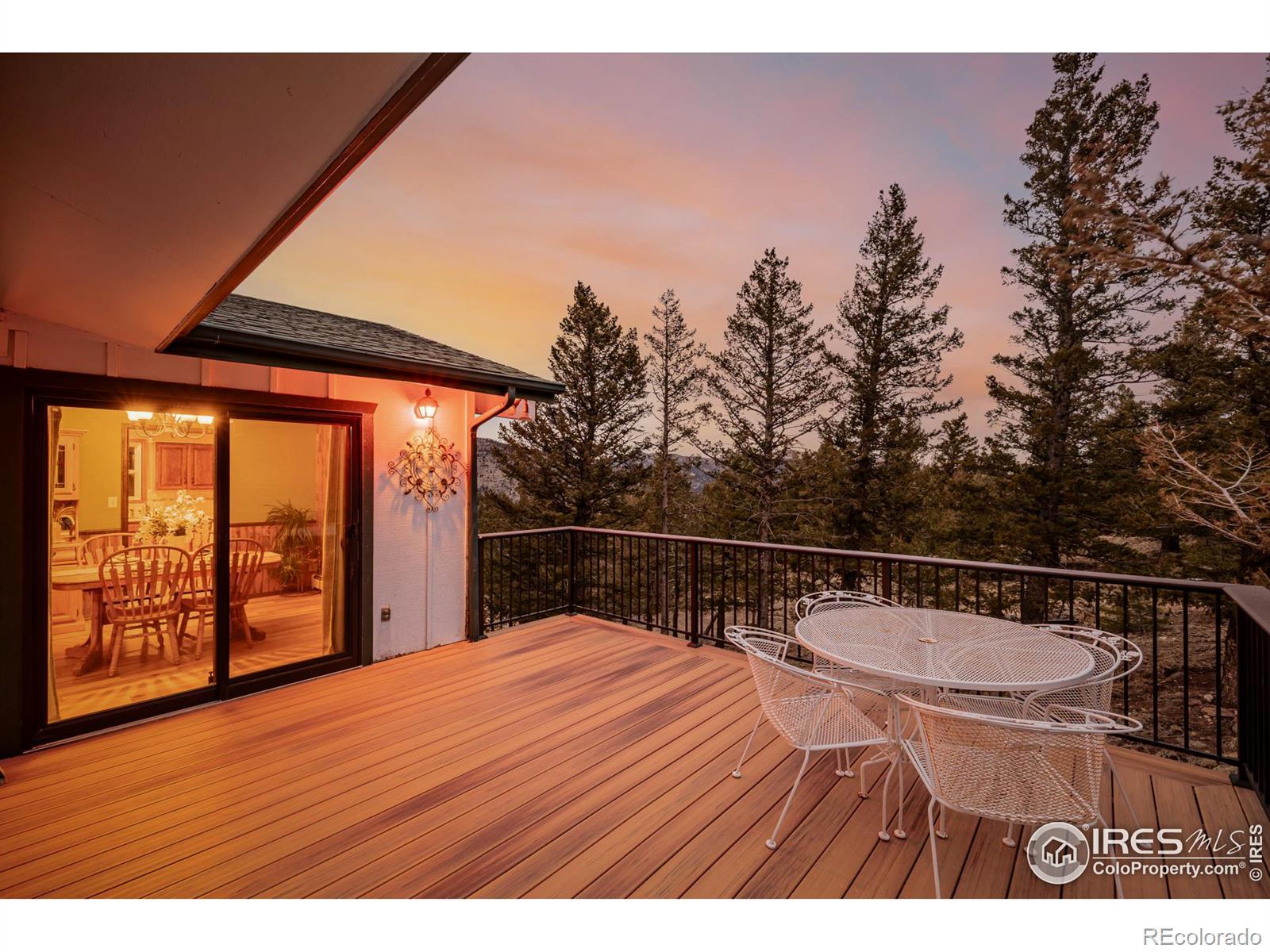 What a RARE find! Situated on a corner gently sloping 1.47-acre lot of a cul-de-sac, this beautiful property offers unparalleled privacy, tranquility, and panoramic views of the Foothills & the sparkling lights of Boulder Valley. Offering 4 bedrooms, 3 bathrooms, and an oversized 2-car garage w/extended driveway. The interior beautifully embraces a rustic contemporary style, blending natural materials like wood and stone with modern design elements to create a warm & inviting atmosphere! Enhanced by abundant natural light, vaulted ceilings, exposed beams, a designer palette, and wood-look flooring w/plush carpet in all the right places. Discover the separate dining room and the welcoming living room with a fireplace! The kitchen boasts solid-surface counters, a subway tile backsplash, ample wood cabinetry, and a peninsula w/breakfast bar. You'll LOVE the main bedroom with a full bathroom! It also includes access to the attached solarium/greenhouse, where you can watch the snow fall in warmth and comfort. But that's not all-the large walk-out basement will impress! It features an inviting family room, an additional fireplace, a bathroom, 4th bedroom, and sliding doors that merge the inside/outside activities. Imagine sipping your favorite beverage while enjoying the breathtaking mountain vistas right from your multiple decks! This residence is surrounded by towering pine trees and scenic rock outcroppings, creating a tranquil retreat to unwind, watch wildlife, and soak in the beauty of nature. Located on a county-maintained and plowed road, this home offers year-round accessibility. PLUS! Just minutes from downtown Boulder's shops, restaurants, hiking trails, and top-rated schools, this home blends serene mountain living with easy city access. Don't miss this opportunity to own a piece of Boulder's coveted mountain community!