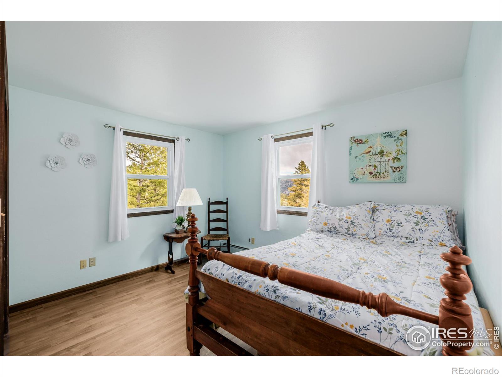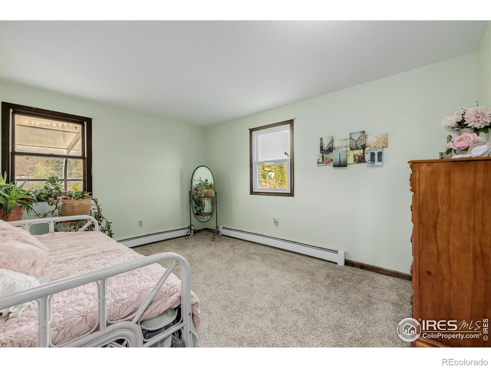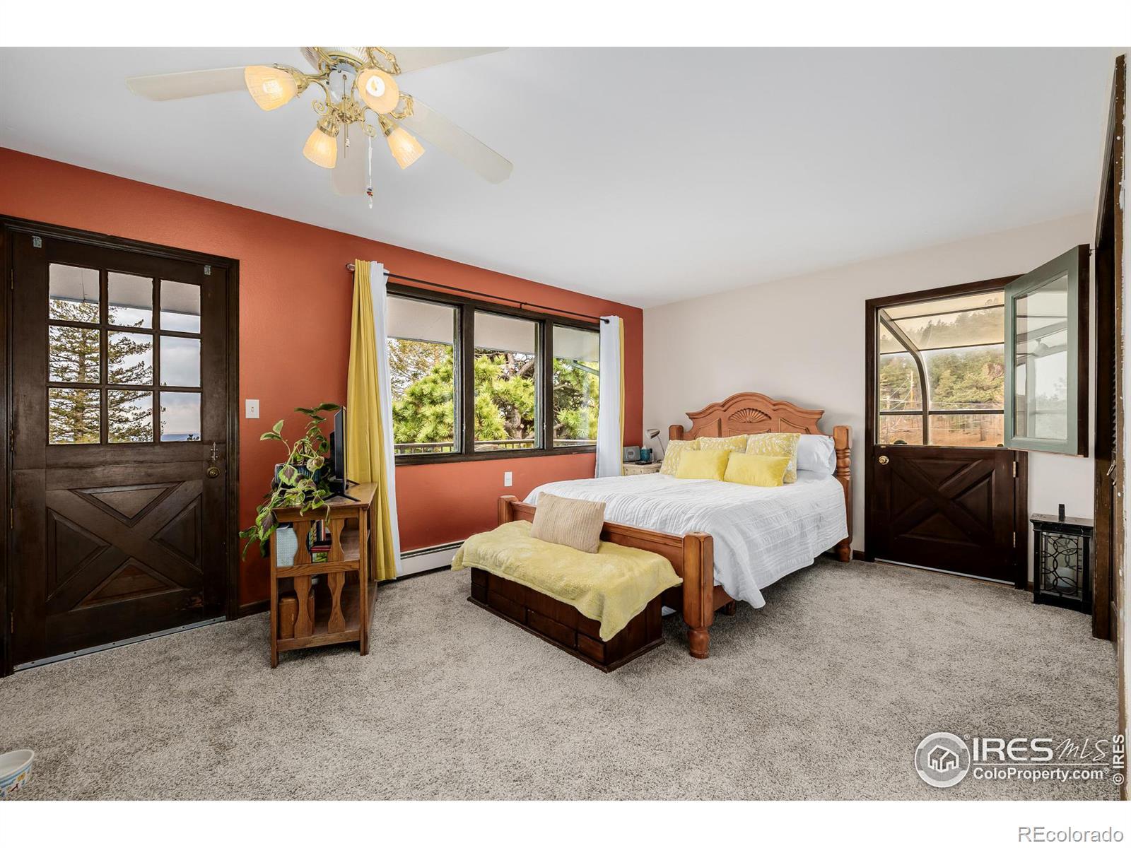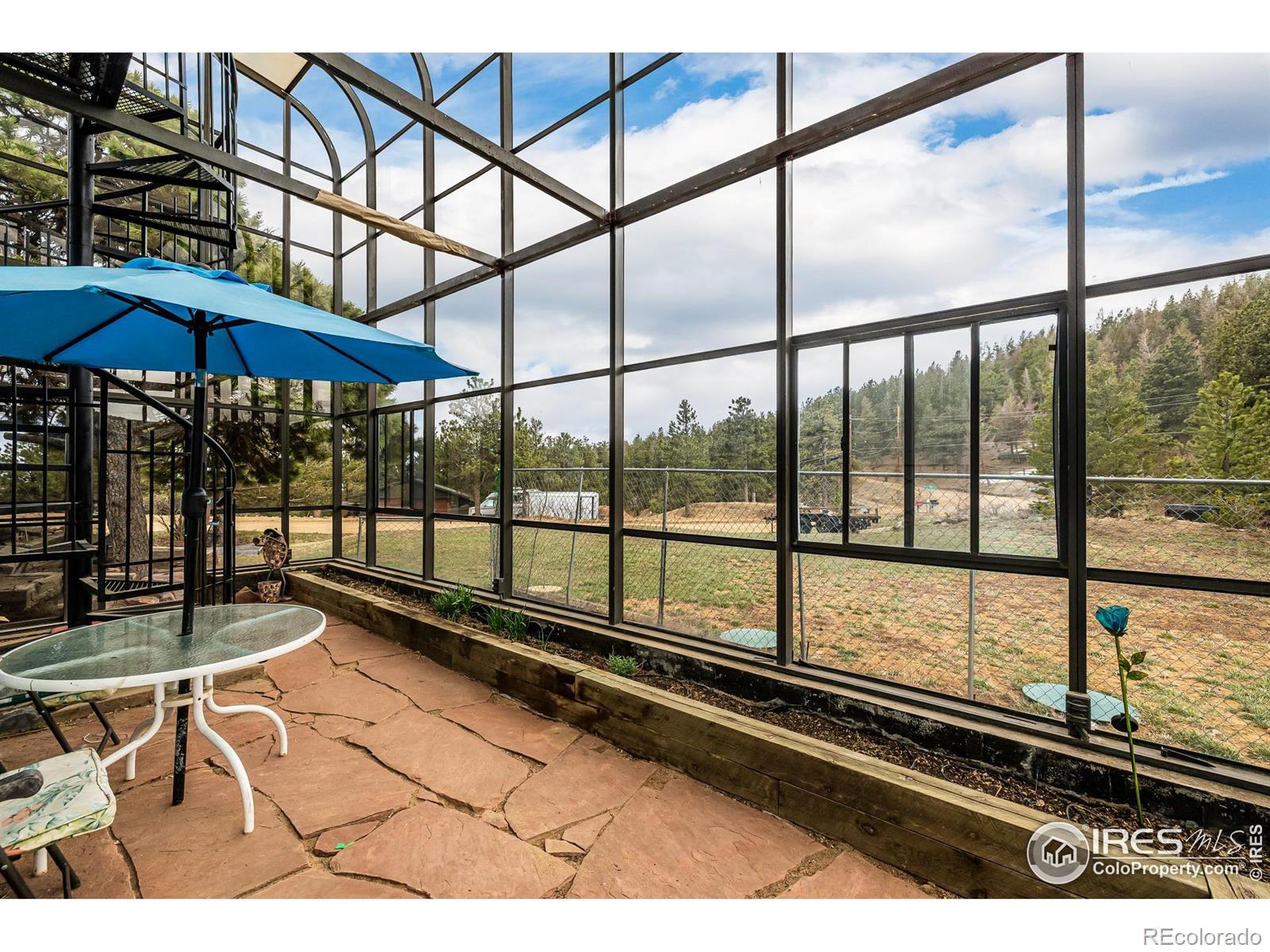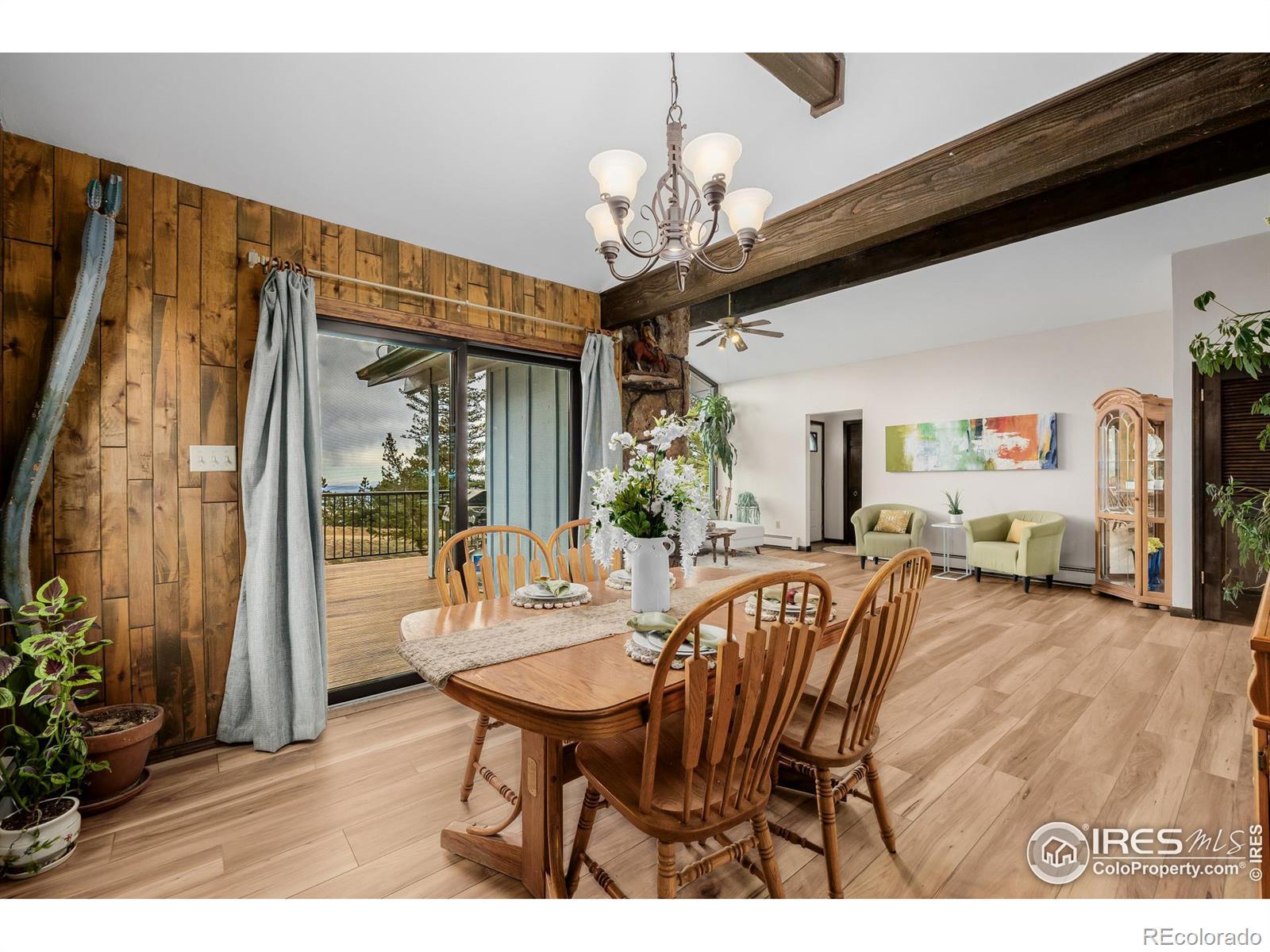 What a RARE find! Situated on a corner gently sloping 1.47-acre lot of a cul-de-sac, this beautiful property offers unparalleled privacy, tranquility, and panoramic views of the Foothills & the sparkling lights of Boulder Valley. Offering 4 bedrooms, 3 bathrooms, and an oversized 2-car garage w/extended driveway. The interior beautifully embraces a rustic contemporary style, blending natural materials like wood and stone with modern design elements to create a warm & inviting atmosphere! Enhanced by abundant natural light, vaulted ceilings, exposed beams, a designer palette, and wood-look flooring w/plush carpet in all the right places. Discover the separate dining room and the welcoming living room with a fireplace! The kitchen boasts solid-surface counters, a subway tile backsplash, ample wood cabinetry, and a peninsula w/breakfast bar. You'll LOVE the main bedroom with a full bathroom! It also includes access to the attached solarium/greenhouse, where you can watch the snow fall in warmth and comfort. But that's not all-the large walk-out basement will impress! It features an inviting family room, an additional fireplace, a bathroom, 4th bedroom, and sliding doors that merge the inside/outside activities. Imagine sipping your favorite beverage while enjoying the breathtaking mountain vistas right from your multiple decks! This residence is surrounded by towering pine trees and scenic rock outcroppings, creating a tranquil retreat to unwind, watch wildlife, and soak in the beauty of nature. Located on a county-maintained and plowed road, this home offers year-round accessibility. PLUS! Just minutes from downtown Boulder's shops, restaurants, hiking trails, and top-rated schools, this home blends serene mountain living with easy city access. Don't miss this opportunity to own a piece of Boulder's coveted mountain community!