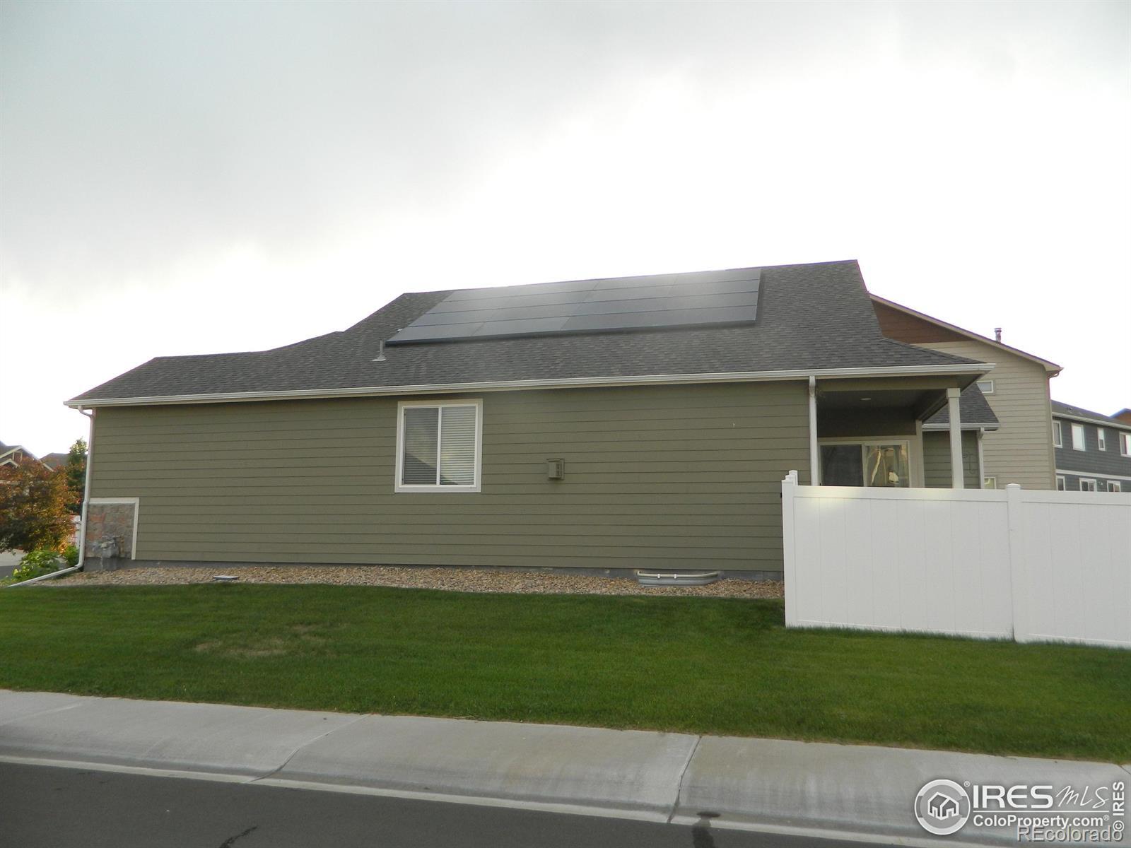 Competitive pricing and great value for this ranch style home with near zero energy costs. Featuring a 6.4kW solar PV system, paired with high efficiency appliances, and lawn water included in the Association dues. Open layout living area, high ceilings, large windows, gas fireplace, 3 beds, 2 baths, 2 car garage, great back yard with expansive covered rear patio. All appliances included. Excellent schools, walking paths to Windsor Lake, conveniently located near downtown Windsor and Severance.