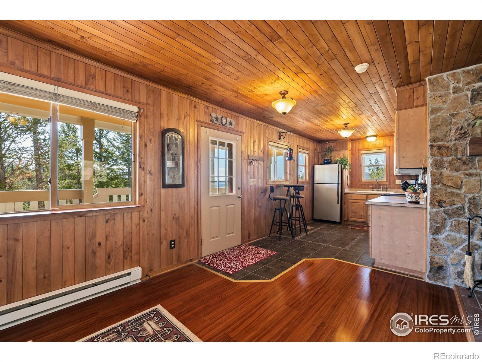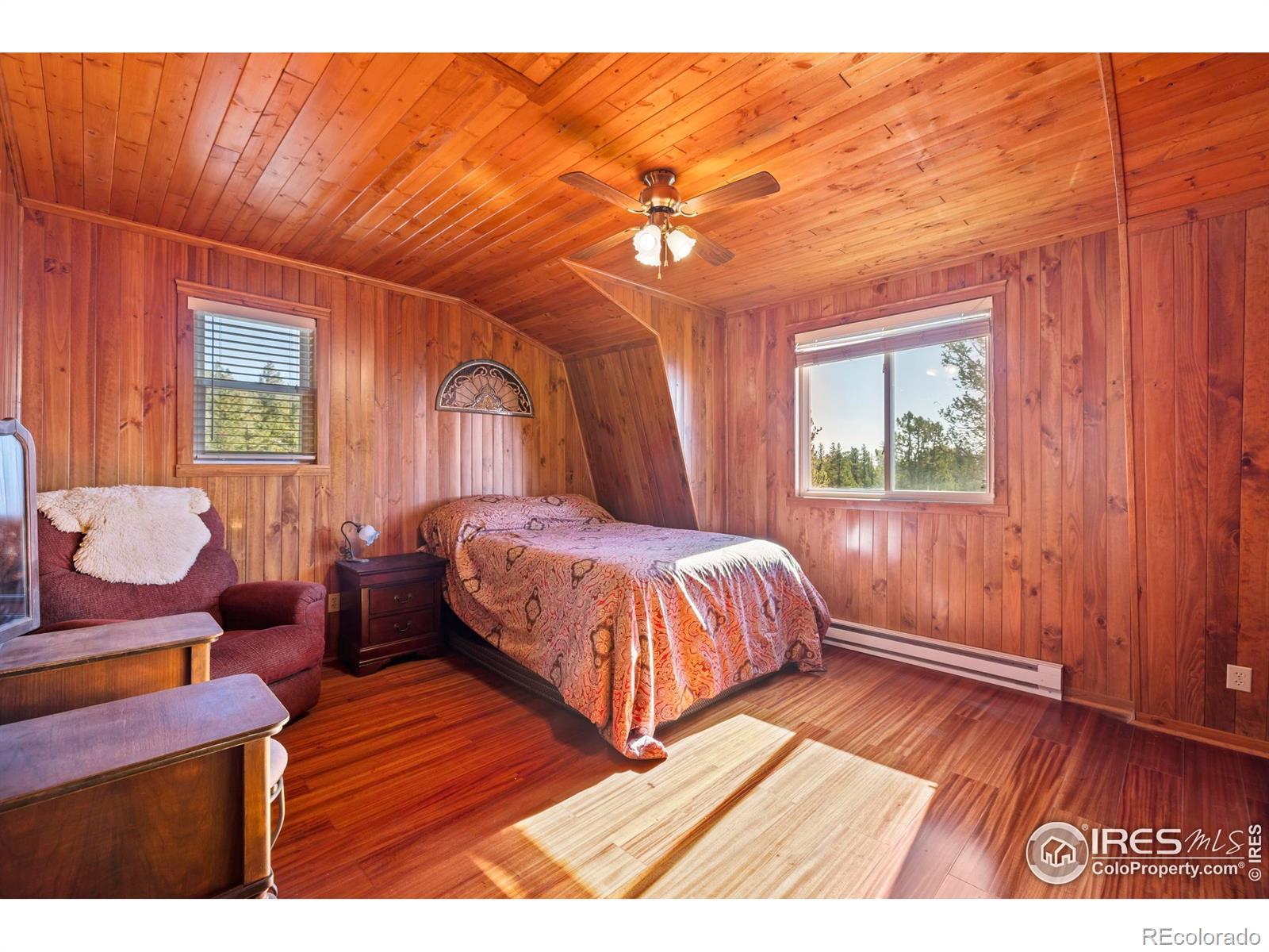 Perched at approximately 9,000 feet among the picturesque peaks of Crystal Lakes (Filing 6, Lot 133), this lovingly maintained and currently occupied year-round, 2-bed, 1-bath cabin envelops you with rustic warmth and authentic Colorado charm. The expansive covered deck delivers breathtaking views of the majestic Mummy Range-perfect for sipping morning coffee, sunset cocktails, or stargazing beneath clear mountain skies. Inside, the home exudes a warm, cabin charm-carefully maintained and designed for cozy nights by the fire or relaxing after exploring the numerous groomed hiking trails nearby. Wildlife enthusiasts will delight in the abundant visitors, from hummingbirds flitting about the deck to moose peacefully grazing nearby. A spacious garage provides ample room for storage, ATVs, or a dedicated workshop space. With baseboard heating, a 1,100-gallon cistern, and a 1,000-gallon septic vault, this home ensures comfort and convenience for every season. Enjoy all that Crystal Lakes has to offer including pristine fishing waters, multiple areas for kayaking or paddle boarding adventures, community events and so much more! Your high-altitude retreat awaits-come experience Colorado mountain living at its best!