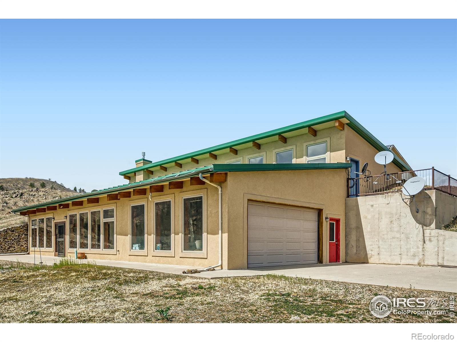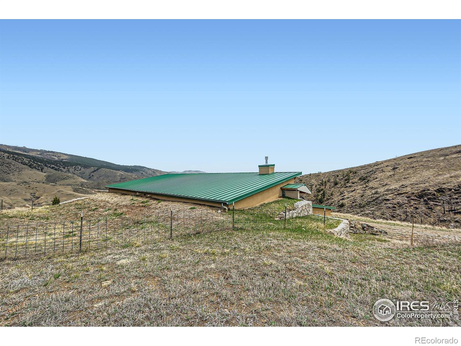 Is driving on the crowded roads and city streets an aggravation? Has urban noise, HOA rules and expense become unacceptable? Perhaps it's time to investigate the advantages of living in a more tranquil setting in home on 35 acres in the peaceful Buckhorn Canyon with scenic views of the mountains and prairie, starlit evening skies, with wildlife and hummingbirds for neighbors. Yet, still with easy access to the necessities in Loveland and Fort Collins. APPOINTMENT REQUIRED! This custom built home is completely off-grid; energy supplied by both active and passive solar systems. NO energy bills! With its earth sheltered design and south facing solarium wall it maintains comfortable living year round. The open floor plan features a large living room and terrific oversized kitchen. Added conveniences include a large pantry and laundry room off the kitchen. An attached two car garage and 500 sq ft workshop. Plus a detached 1000 sq ft building which houses the solar equipment and provides two additional parking spaces. Currently a two bedroom layout but the septic system is approvable for 3. There are several options for reconfiguring to 3 bedrooms. A unique opportunity.