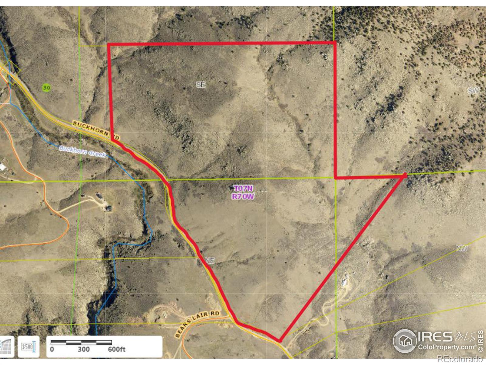 Discover 119 acres of unspoiled beauty offering stunning views, varied terrain, and year-round access from a paved, county-maintained road. Once-in-a-generation opportunity for acreage on coveted Buckhorn Road! Whether you're seeking a private retreat, recreational haven, or future homesite, this rare offering presents endless possibilities just 25 minutes from both Loveland and Fort Collins. Acreage is in GMU 19 where you can hike, camp, or hunt on your own land, and where a natural year-round spring draws abundant wildlife (elk, deer, bear, turkeys, etc.) Property is three contiguous parcels sold all as one. With a completed soils report for two potential building sites and easy access to the Poudre and Rist Canyons, this property blends convenience with true mountain seclusion. Located in a highly desirable area, this expansive acreage offers peace, privacy, and proximity to essential amenities. A truly exceptional chance to own one of the last large parcels off Buckhorn Road. If you are looking for construction options, consider the all-in-one closing from construction to final financing from Fairway Mortgage. Call me if you need help with the lending. Showings by appointment only - please do not access the property without a licensed agent.
