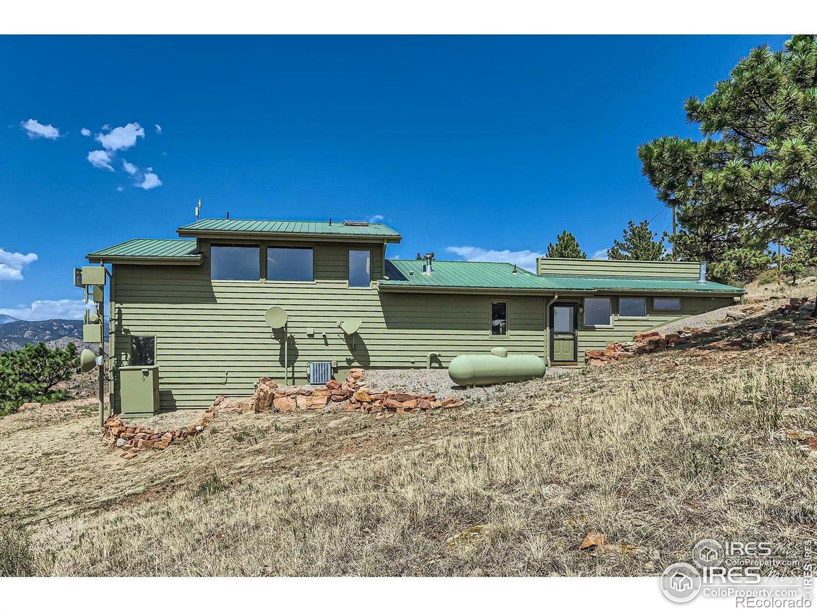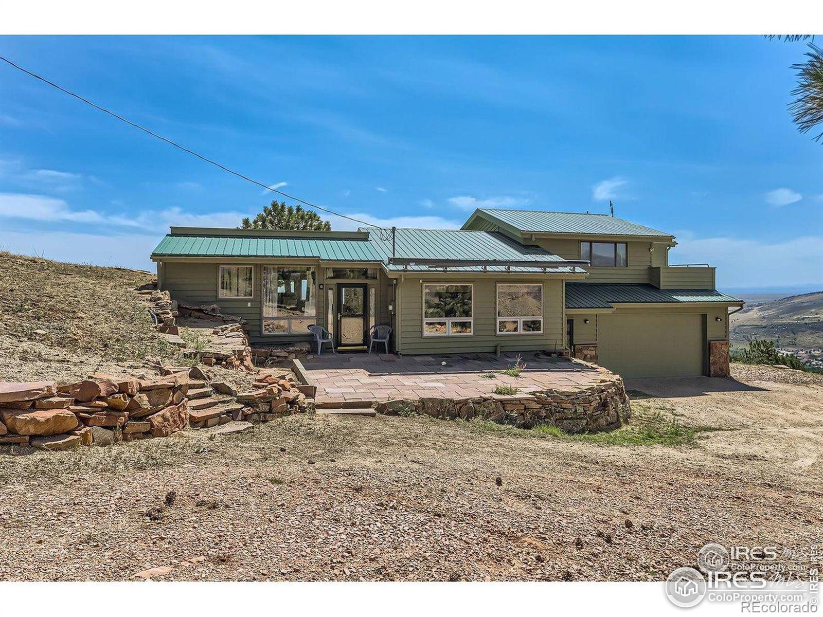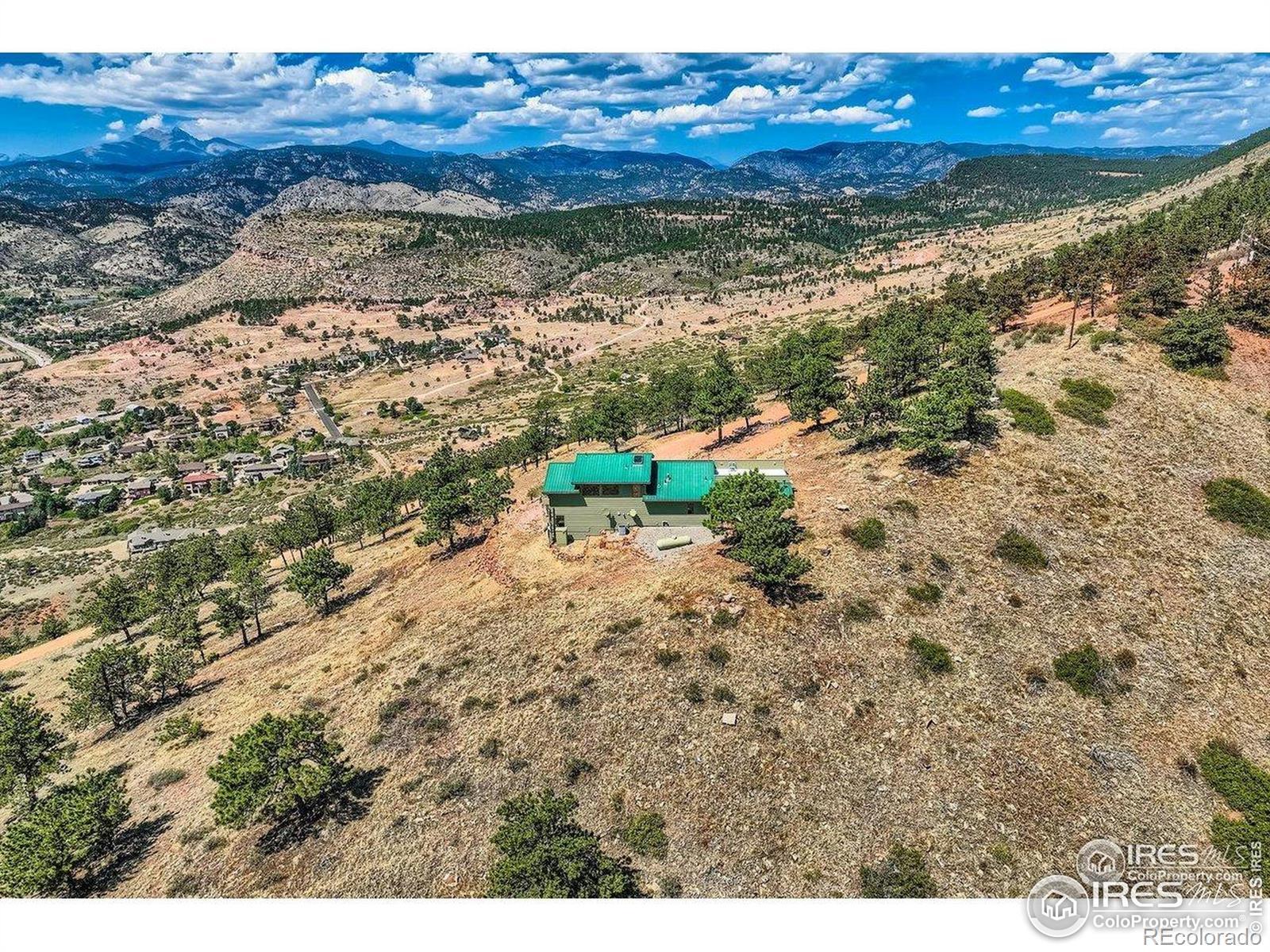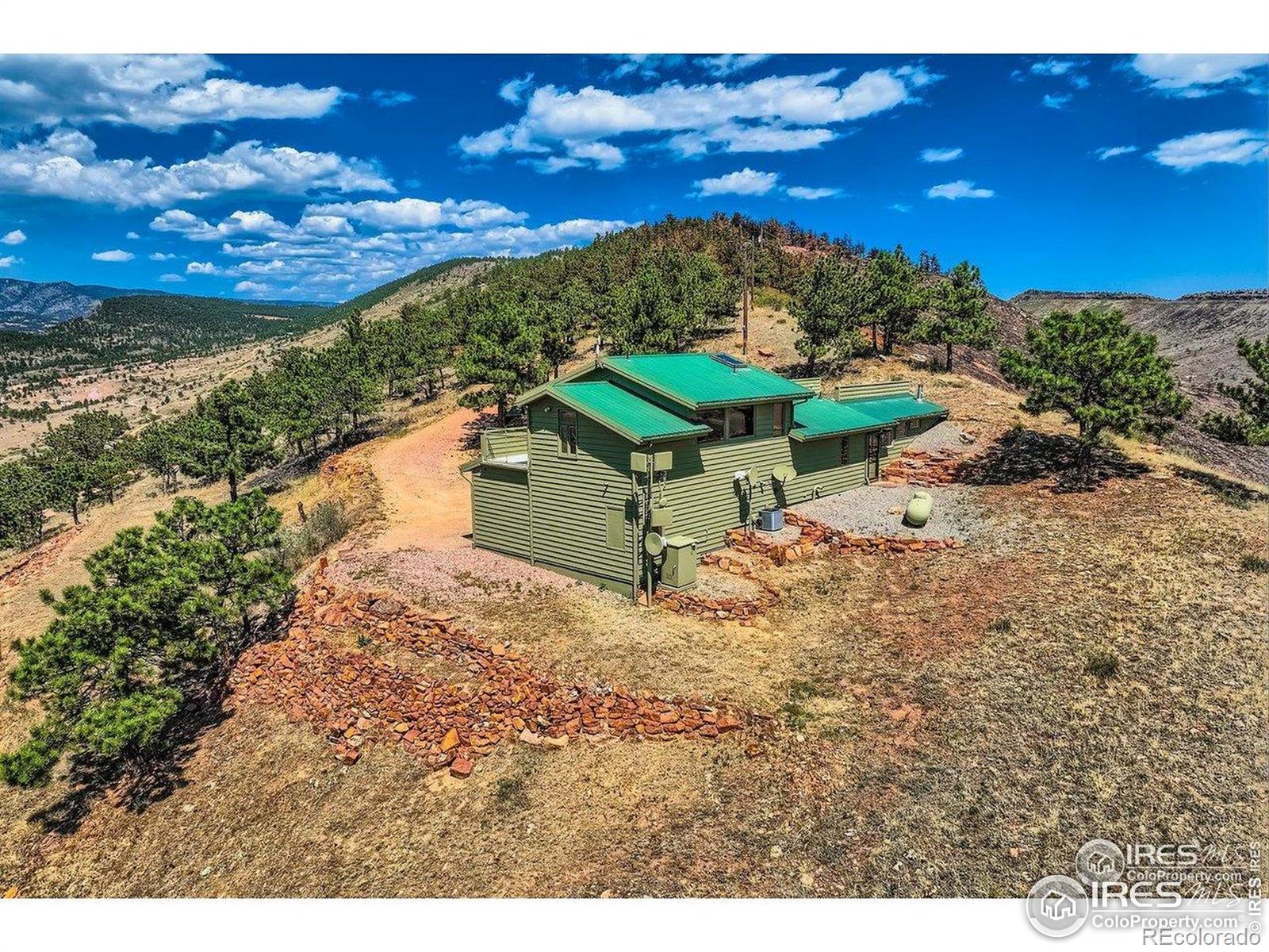 Unparalleled views and quiet privacy! This custom built home has stunning views from Loveland/Berthoud sweeping south across the plains, overlooking Lyons and all communities from Denver to Boulder, and then encompassing the foothills and the entire back range. The private road, stone pillar gate, and long driveway guarantee privacy on the +38.6 acre parcel. This well maintained property has been freshly painted inside & out. Great room concept, vaulted ceilings, and large windows. 2nd bedroom doubles as an alternative use room with gas fireplace, Retractable awning over front patio. Large finished garage with nice crawl space for additional storage. 5000 gallon water cistern for fire fighting. Class A fire rated coatings on both decks. Broadband tower array on property provides residual income