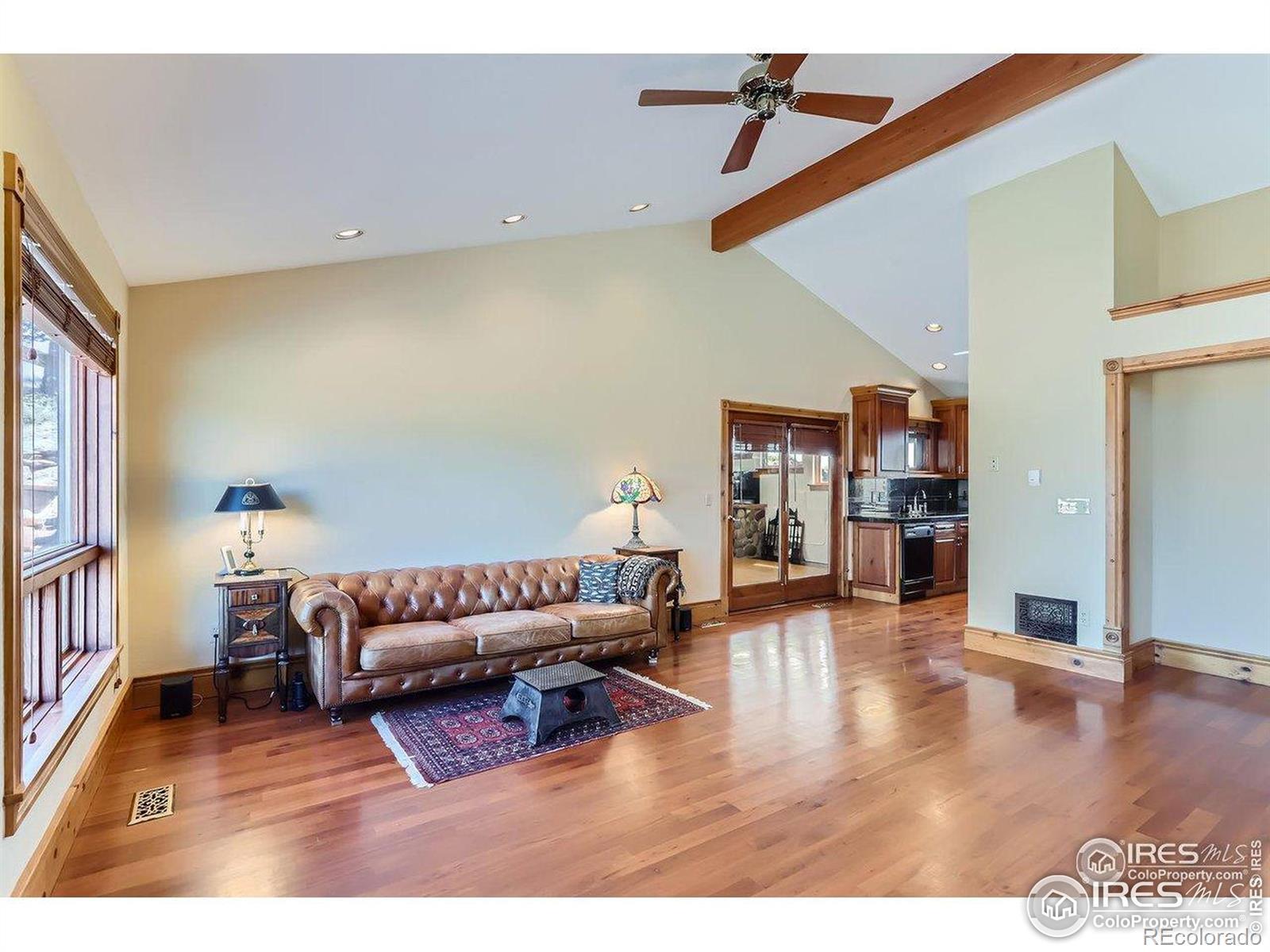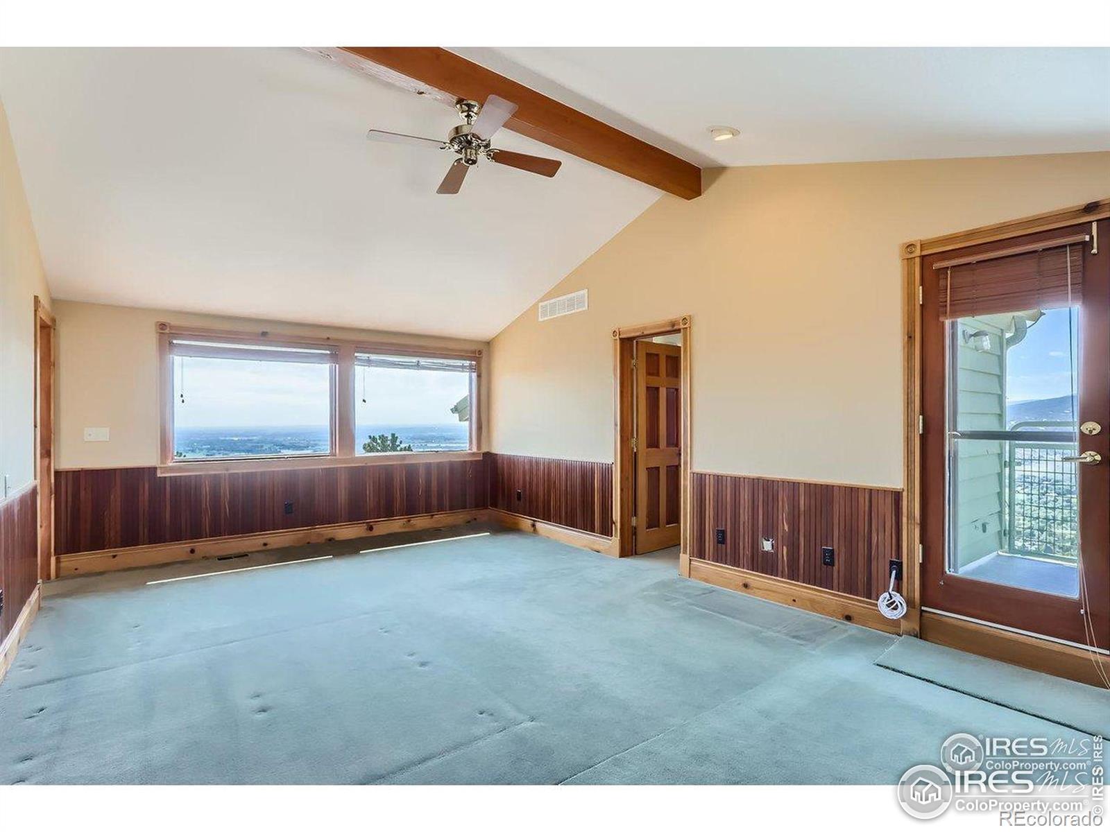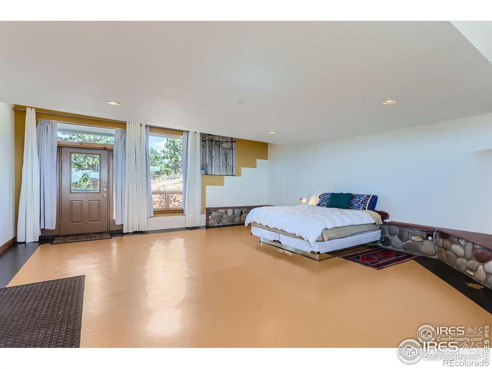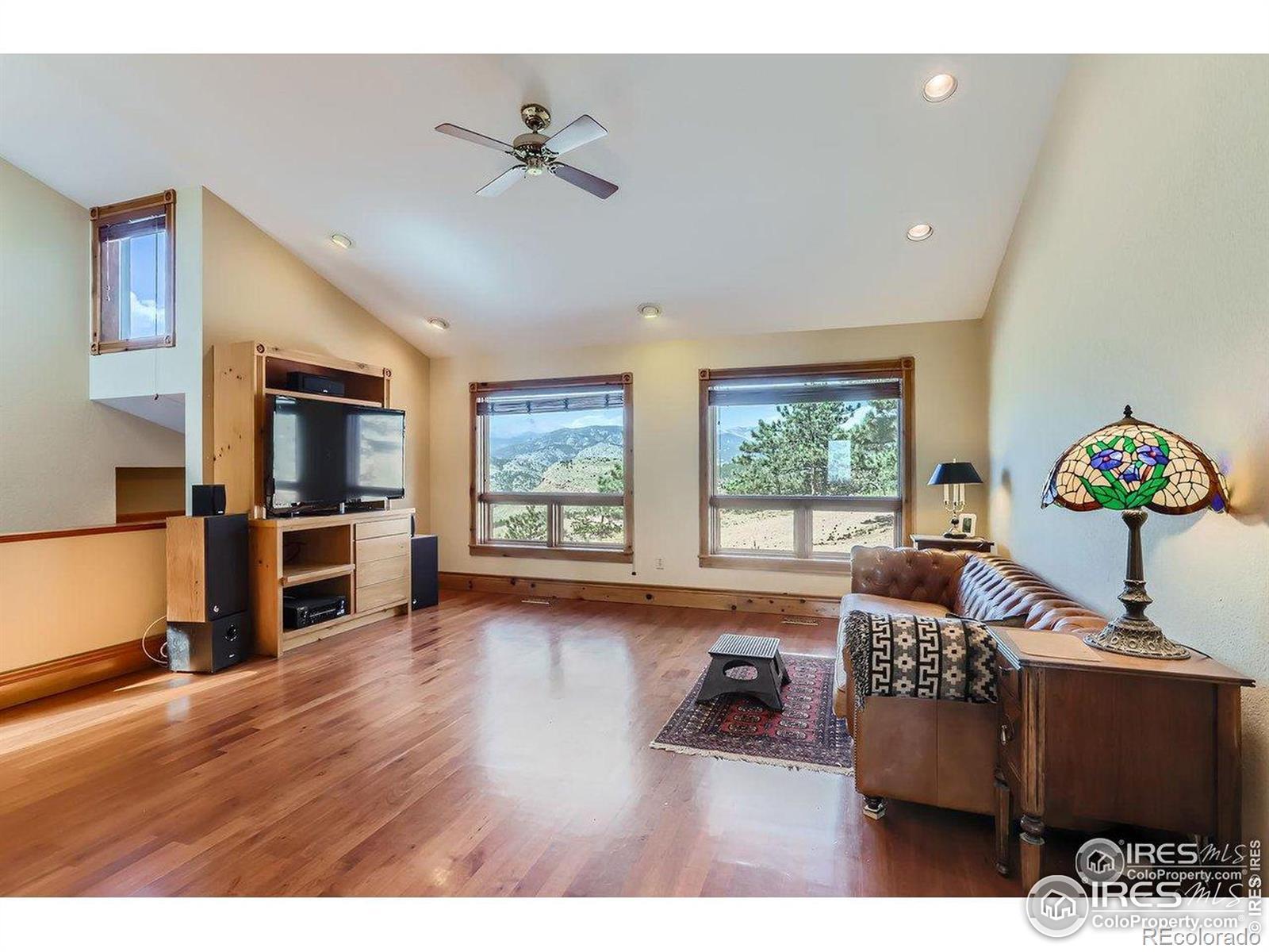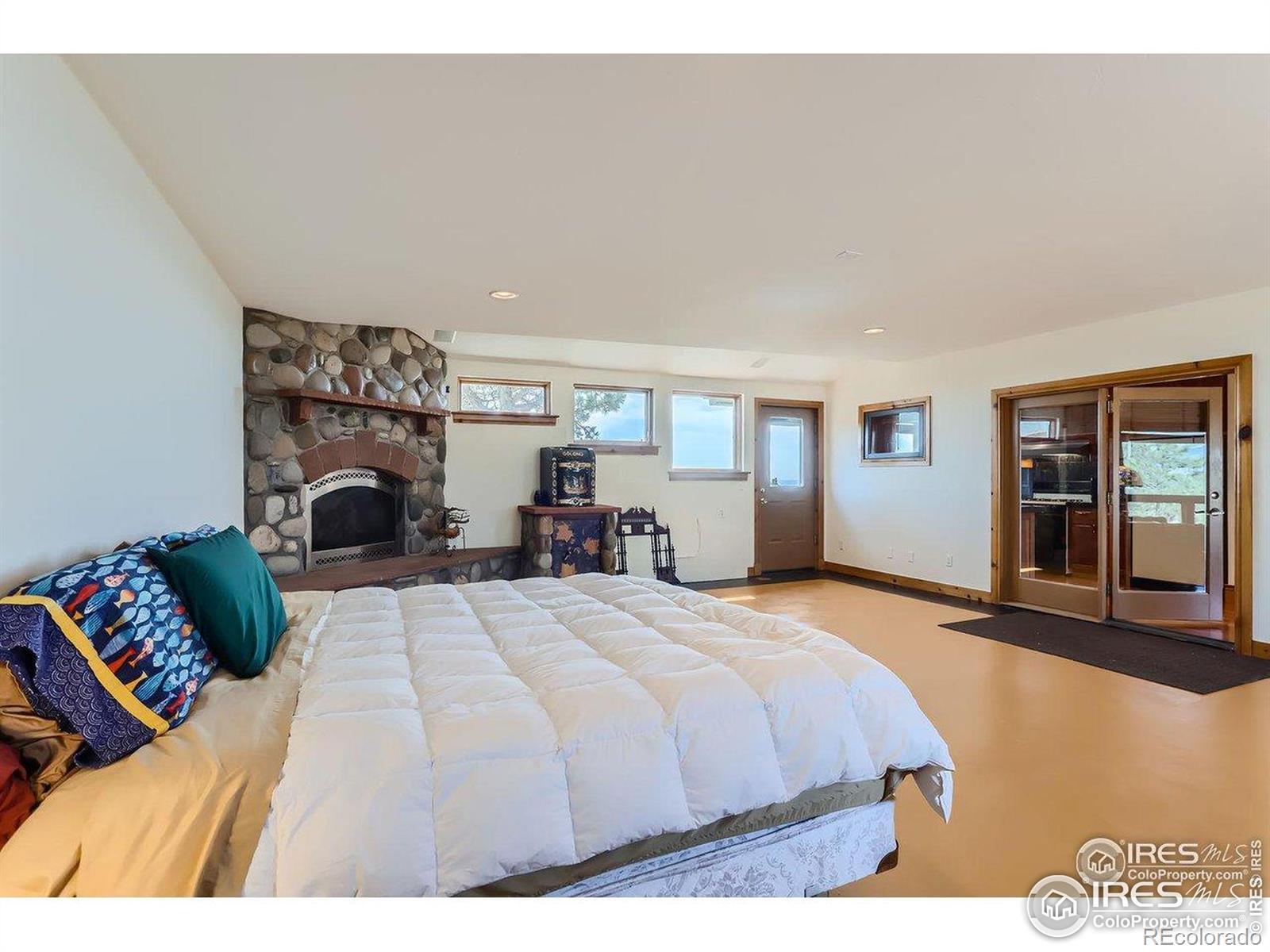 Unparalleled views and quiet privacy! This custom built home has stunning views from Loveland/Berthoud sweeping south across the plains, overlooking Lyons and all communities from Denver to Boulder, and then encompassing the foothills and the entire back range. The private road, stone pillar gate, and long driveway guarantee privacy on the +38.6 acre parcel. This well maintained property has been freshly painted inside & out. Great room concept, vaulted ceilings, and large windows. 2nd bedroom doubles as an alternative use room with gas fireplace, Retractable awning over front patio. Large finished garage with nice crawl space for additional storage. 5000 gallon water cistern for fire fighting. Class A fire rated coatings on both decks. Broadband tower array on property provides residual income
