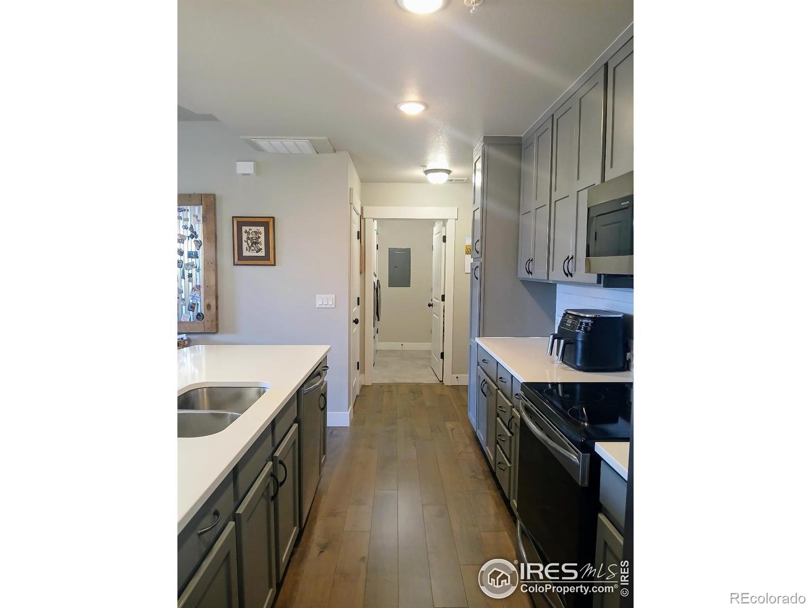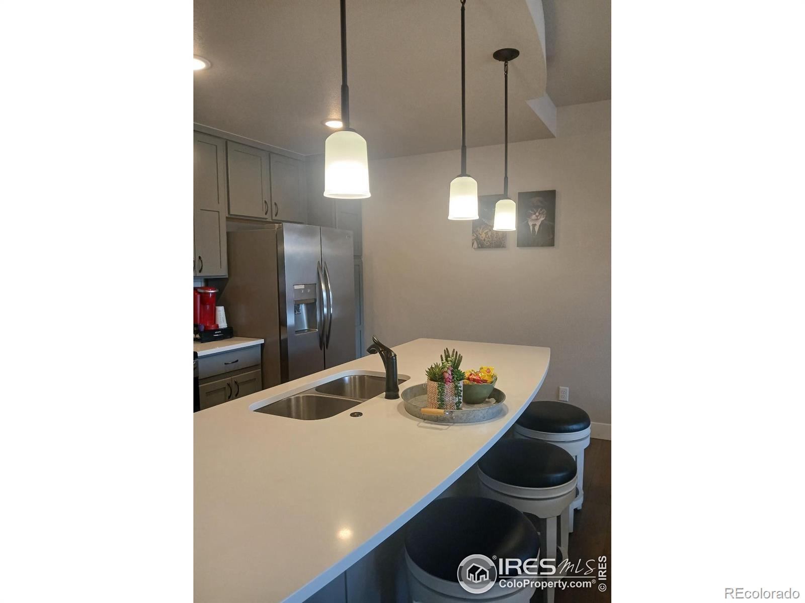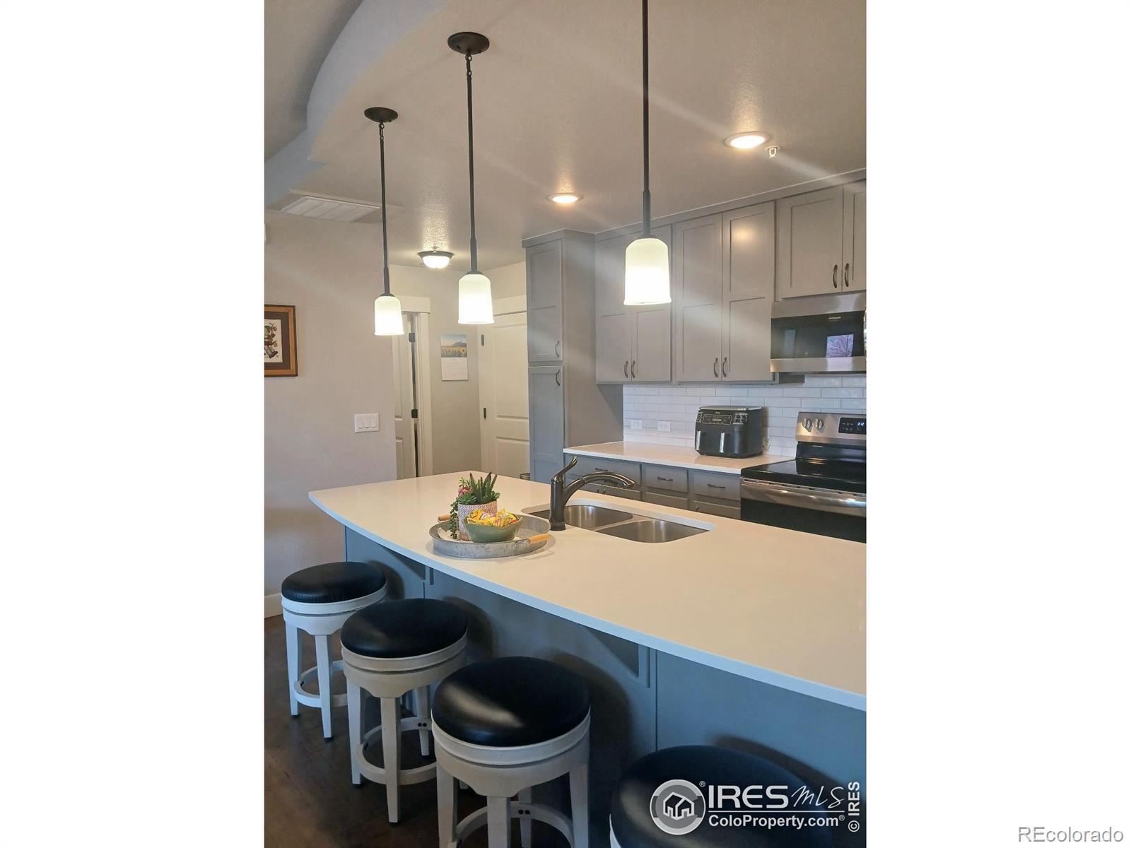 WOW! A fantastic opportunity! Seller's is giving $7,000.00 towards a 2-1 Interest Rate Buy Down with an acceptable offer. Stack the savings by using Eric Ruiz with Guild Mortgage and take advantage of his buyer incentives too! Buyer's jump on this opportunity! We've had a total price adjustment of $25,000. This is a BEAUTIFUL UNIT! Better than NEW! Fabulous upgrades! RARE Find 1 BEDROOM GROUND LEVEL CONDO at The Flats at Centerra. Priced to Sell! Here's your opportunity to own this charming and roomy condo. This unit faces a nice open area with beautiful blossoming trees, bushes and perennials. You can enjoy the nice evenings on your enclosed patio area while you sip on your favorite beverage. Lots of natural light with the south facing windows. Huge kitchen island with seating for 5-6 people. Inviting floor plan gives you lots of room for entertaining. A cozy Fireplace will take the chill out while you make a delicious meal in the inviting kitchen. The 3/4 primary bathroom has a large shower and 2 sinks. The primary bedroom faces south so lots of sunshine in the morning and throughout the day. This building offers a security feature: a hallway off each unit. main level hallway leads into the secured mail room for your delivered packages. There is an elevator to access the 2nd and 3rd floors. The detached garage is # 11 and directly across from the exit hallway door. Close to shopping, local hospitals, medical clinics and close to I-25 to head North to FC or South to Denver. A very convenient location. Come take a peek. You won't be disappointed! Fast and easy close available. Please make sure to lock both front door(handle only) and hallway door. Please leave a card. We look forward to your offer.