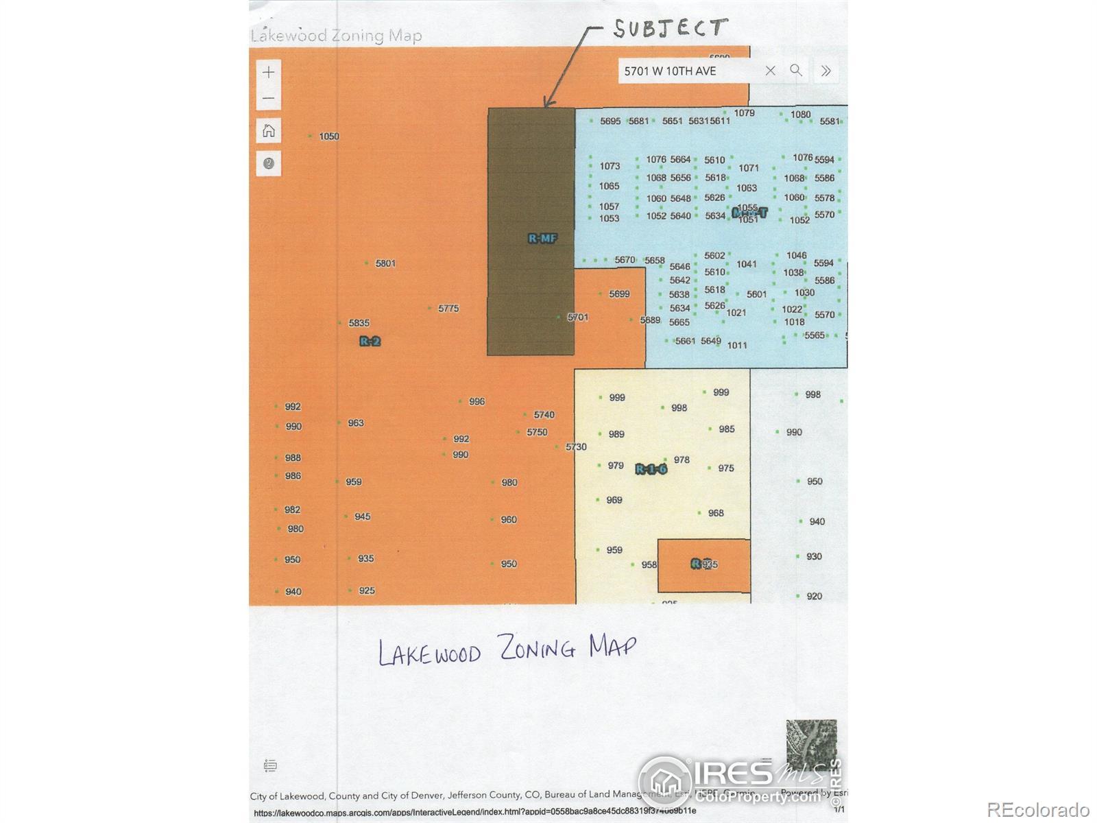 1.78-acre level parcel zoned R-MF offers prime multi-family development potential. Approx. 30,550 sq ft buildable on the east side, plus 9,400 sq ft on the west. Central utility easement ROW usable for some use of streets/parking. Adjacent to Lakewood open space, Gulch Trail with access to Denver trails, bus routes, and Sheridan & Lamar light rail. Affordable housing projects are exempt from Parkland Ordinance. Showings by appointment only. Co-listed with