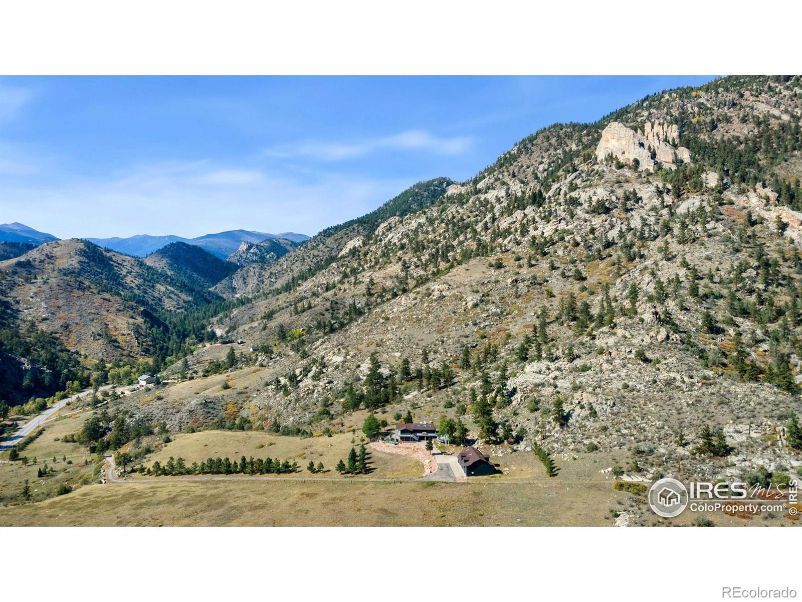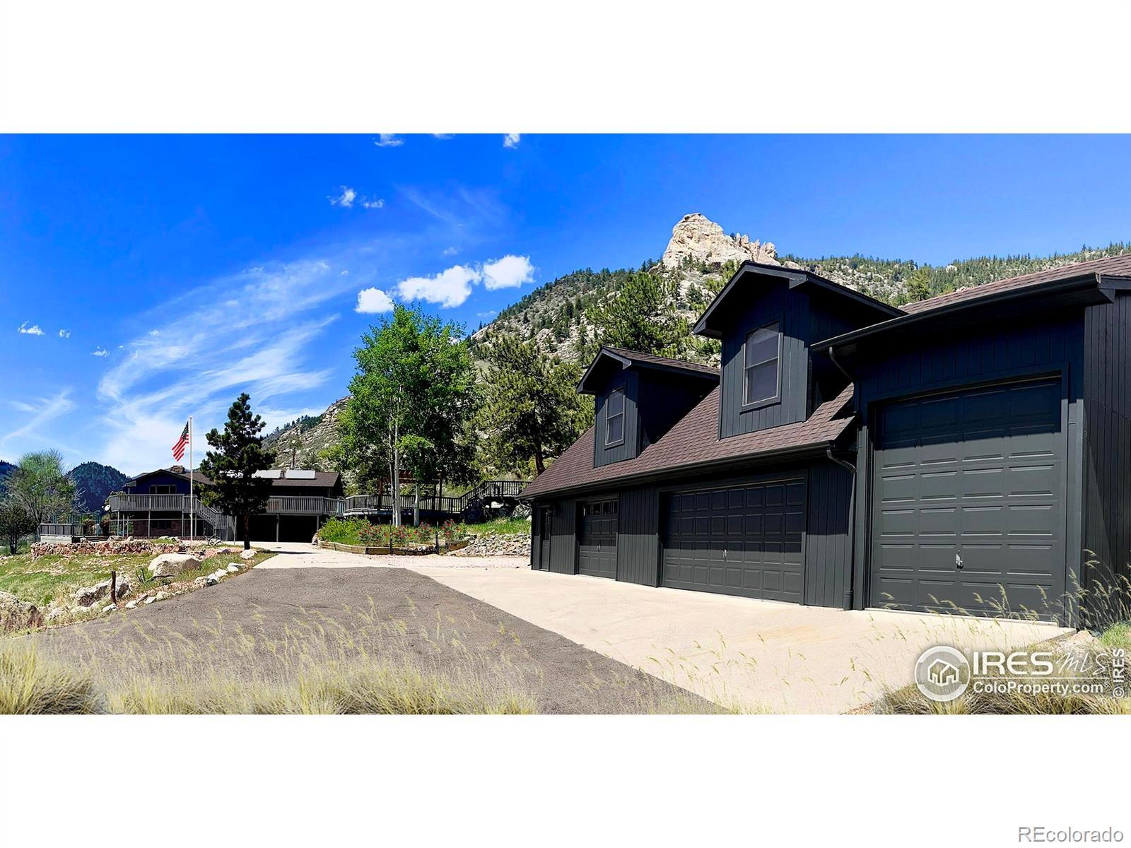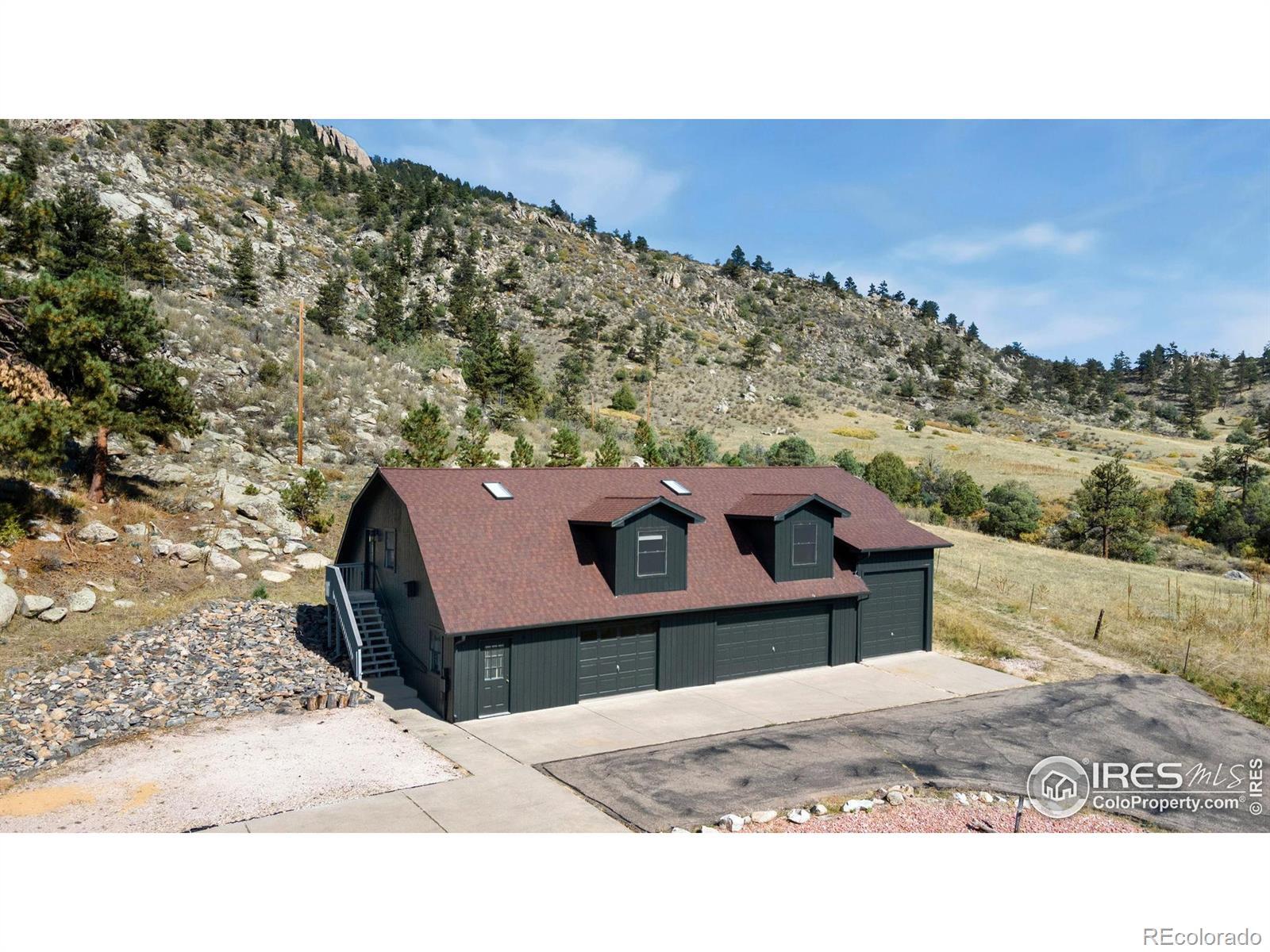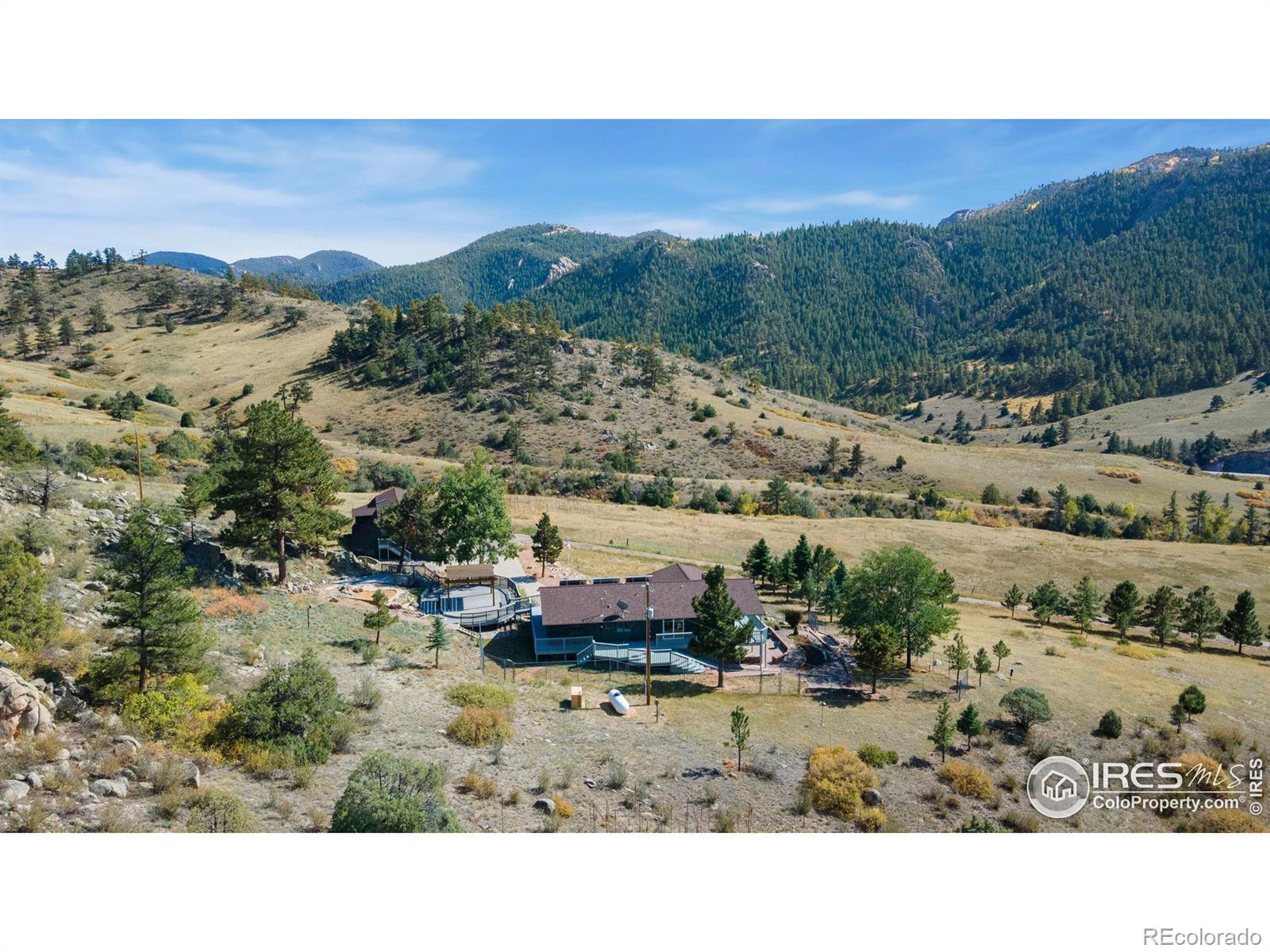 PRICE REDUCED! This breathtaking property is conveniently located near Estes Park and Loveland while truly being in a world of its own. Perched atop 35 acres bordering National Forest, wildlife replaces the sight of houses and city life. Experience sunrises and sunsets with unobstructed 360-degree mountain views. This 4 bedroom, 3 bath turn-key home is newly renovated and re-imagined inside and out. The main level has designer touches and striking finishes throughout with hardwood floors, new lighting, and fresh trim and paint. The open kitchen is perfect for entertaining, featuring quartz countertops, new stainless appliances, and abundant storage. The dining and living rooms are spacious and bright, complementing the picturesque views. Both upper bathrooms are fully remodeled with new vanities, quartzite countertops, updated showers, and stylish hardware. Three large bedrooms, including the master en-suite, round out the main level. Enjoy the warmth of the moss rock fireplaces in the upper or lower living rooms. A bedroom and bathroom on the lower level provide additional room for guests or flex space. Relax on the large wraparound deck or enjoy the paver patio below with a fully fenced-in yard. An additional upper deck with a pergola and firepit provides the perfect setting to enjoy a star-filled sky! The large, heated outbuilding presents huge added potential. The lower level contains a shop, office, garage spaces and 37' deep RV storage! The finished upper loft provides 1341sf of bonus space for hobbies or it could be renovated into a 2nd living area for investment opportunities. The property is extremely versatile and perfect for a year-round retreat, vacation getaway, live-work or much more! The gated entry and private paved drive provide convenience right off CR 43. Ample hiking, fishing, 4-wheeling and climbing opportunities are at your doorstep.