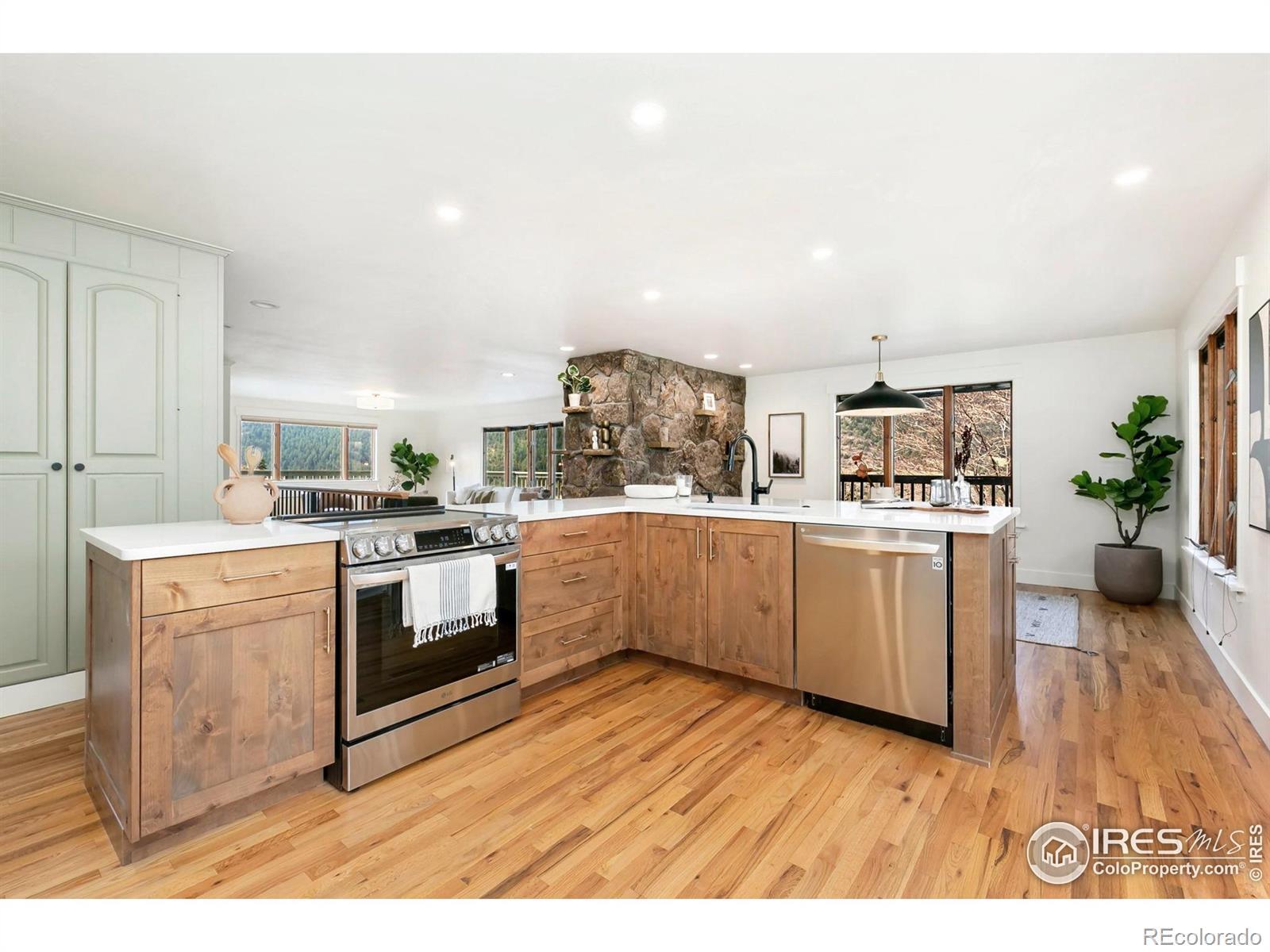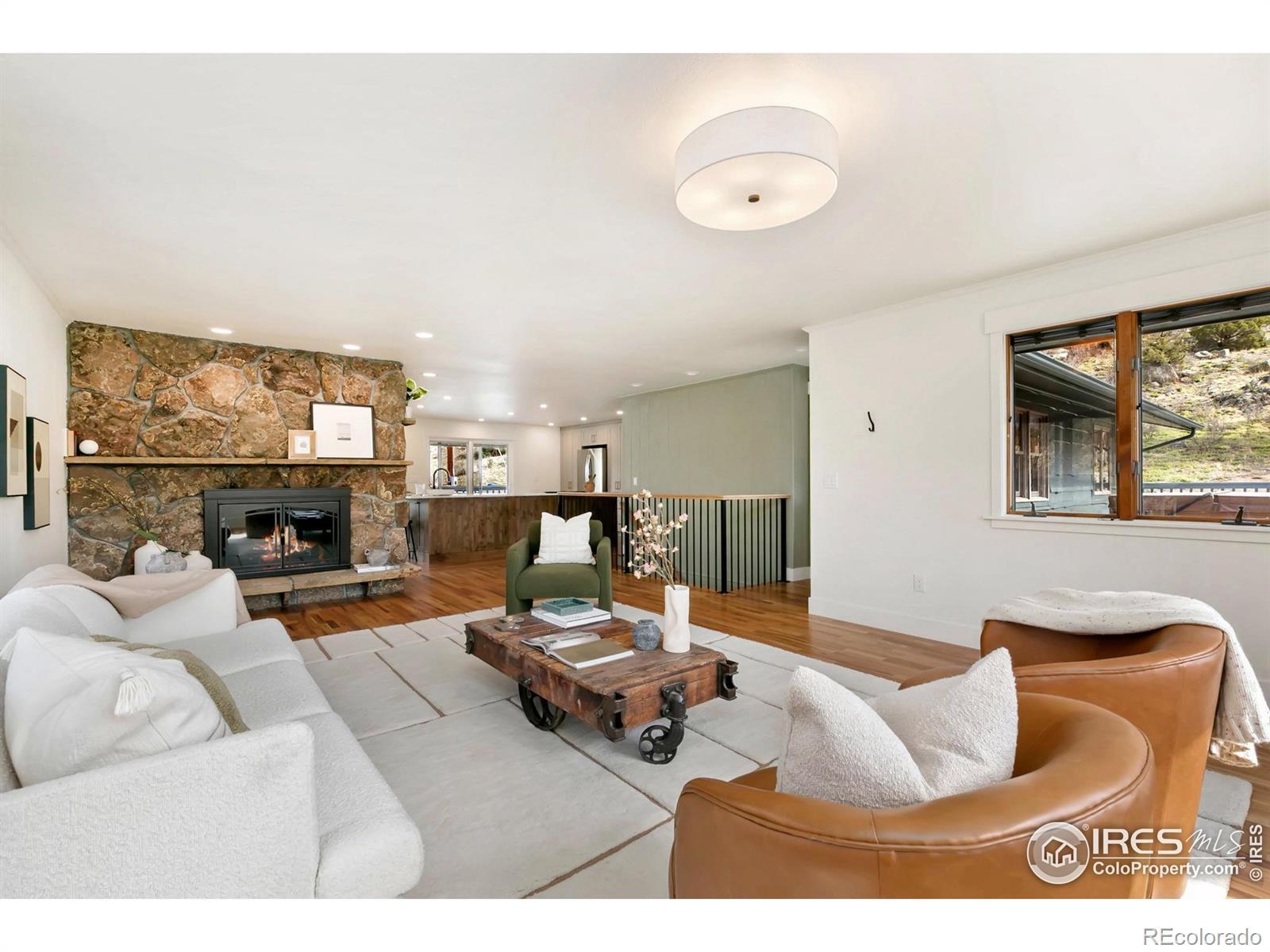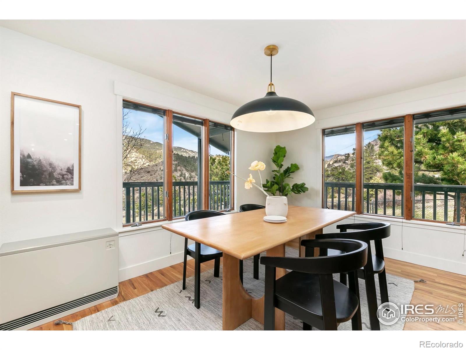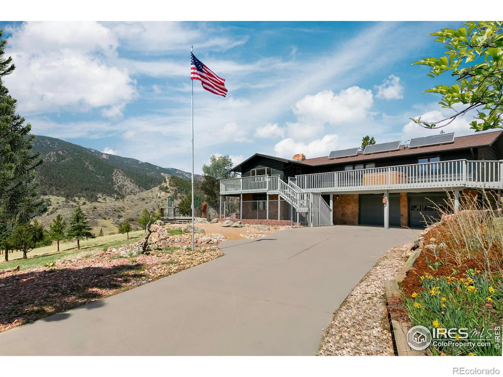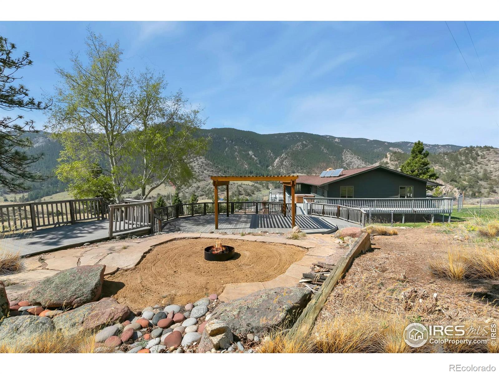 PRICE REDUCED! This breathtaking property is conveniently located near Estes Park and Loveland while truly being in a world of its own. Perched atop 35 acres bordering National Forest, wildlife replaces the sight of houses and city life. Experience sunrises and sunsets with unobstructed 360-degree mountain views. This 4 bedroom, 3 bath turn-key home is newly renovated and re-imagined inside and out. The main level has designer touches and striking finishes throughout with hardwood floors, new lighting, and fresh trim and paint. The open kitchen is perfect for entertaining, featuring quartz countertops, new stainless appliances, and abundant storage. The dining and living rooms are spacious and bright, complementing the picturesque views. Both upper bathrooms are fully remodeled with new vanities, quartzite countertops, updated showers, and stylish hardware. Three large bedrooms, including the master en-suite, round out the main level. Enjoy the warmth of the moss rock fireplaces in the upper or lower living rooms. A bedroom and bathroom on the lower level provide additional room for guests or flex space. Relax on the large wraparound deck or enjoy the paver patio below with a fully fenced-in yard. An additional upper deck with a pergola and firepit provides the perfect setting to enjoy a star-filled sky! The large, heated outbuilding presents huge added potential. The lower level contains a shop, office, garage spaces and 37' deep RV storage! The finished upper loft provides 1341sf of bonus space for hobbies or it could be renovated into a 2nd living area for investment opportunities. The property is extremely versatile and perfect for a year-round retreat, vacation getaway, live-work or much more! The gated entry and private paved drive provide convenience right off CR 43. Ample hiking, fishing, 4-wheeling and climbing opportunities are at your doorstep.