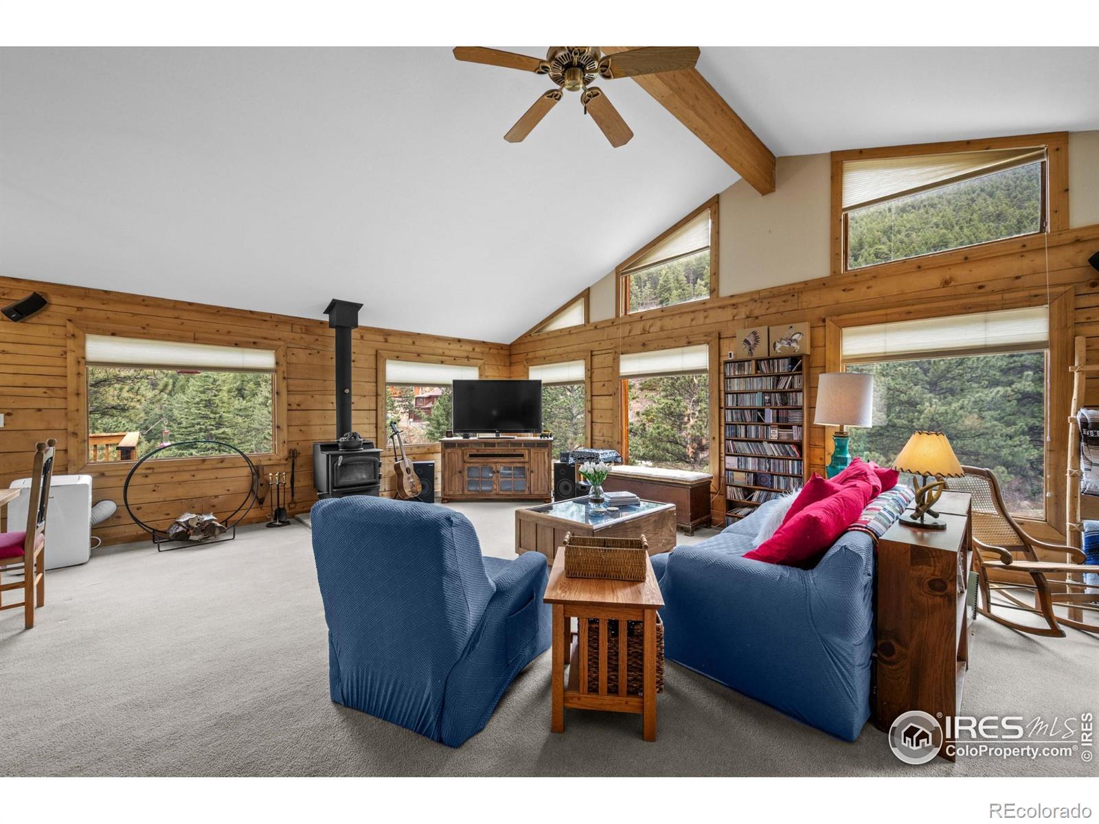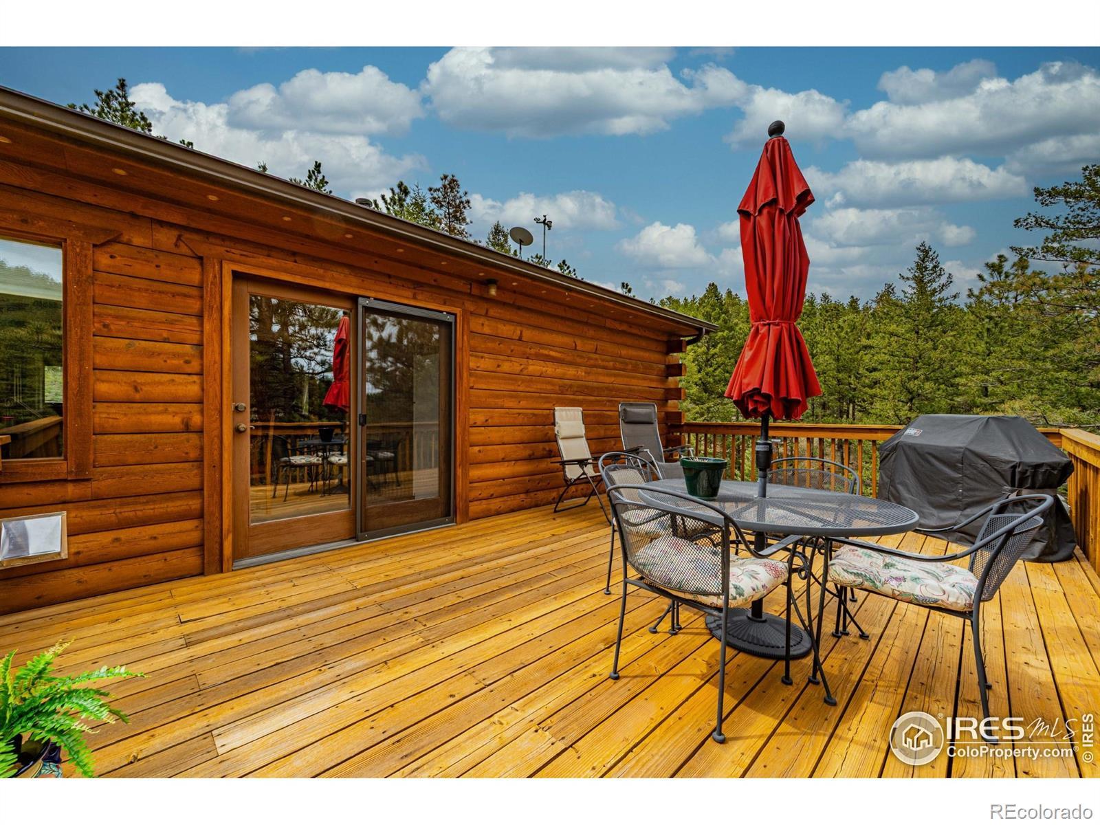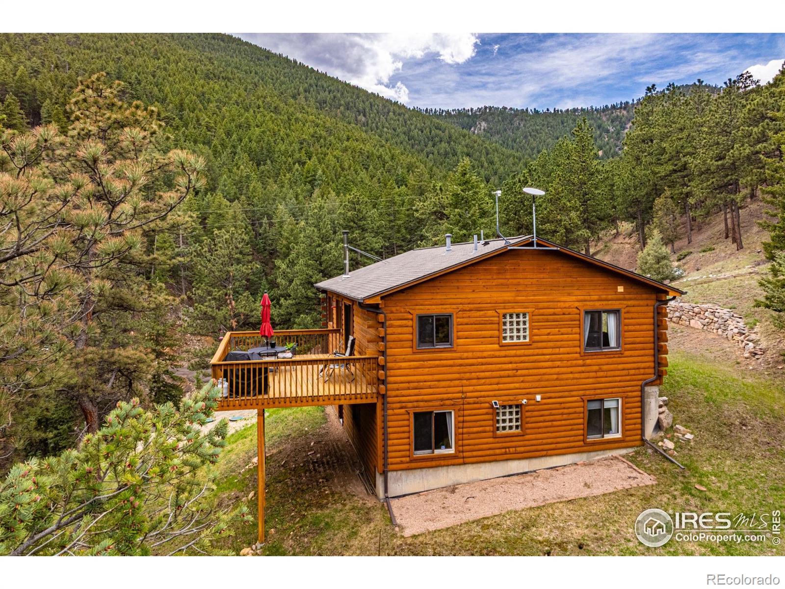 Escape to this peaceful sunny mountain retreat, just minutes from Downtown Boulder and easily accessible by mostly paved roads. Enjoy stunning views through large windows and the warmth of a wood-burning stove. The spacious deck expands the living area, providing a great spot to relax and enjoy the sounds of nature, including hummingbirds, on 1.63 acres of serene land.The home features vaulted ceilings, and great room. The primary bedroom has its own full bath, and two additional bedrooms on the lower level share a convenient Jack-and-Jill bath. A half bath is located off the great room for added convenience. Kitchen includes a newer gas stove/oven and dishwasher, perfect for everyday cooking or hosting guests.With a certified septic system, easy-access driveway, and Starlink internet/ CenturyLink for modern connectivity, this home blends mountain living with convenience. Oversized garage