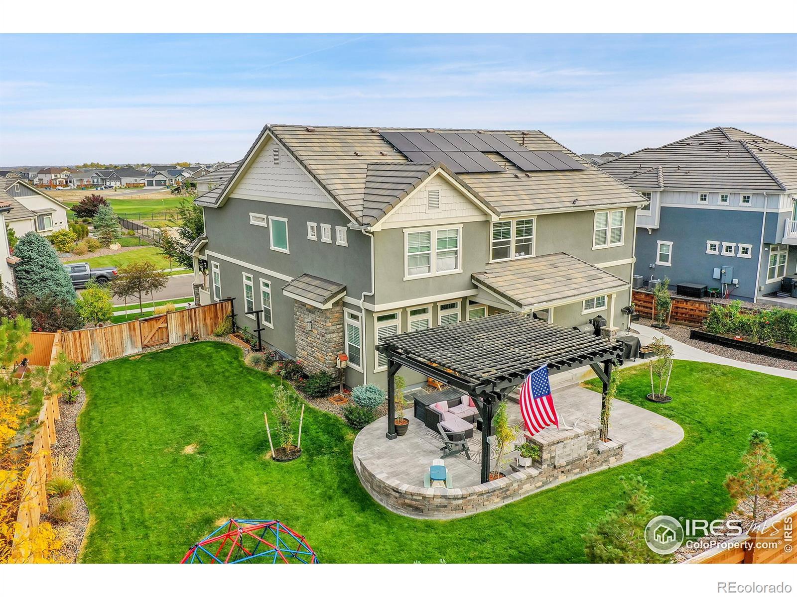 The Gallery is a gated community of Reunion, steps way to Buffalo Run Golf Course, and a short drive to Denver International Airport. The home seats on a quarter of an acre and in great school districts. A solar system will be delivered to the next lucky owner free and clear at closing so you can enjoy low-cost electrical bills in the winter as well as in the summertime for years to come. Within The Gallery community you will find a plethora of amenities such as, Clubhouse, Coffee Shop, Fitness Center, Playground, Pool, Tennis Courts, and Trails. When you enter the house, you will be amazed by all the great design features it has to offers like, wood flooring through the mail floor, high ceilings, large chef's kitchen, pantry, high-end appliances such as a gas stove top, beverage cooler and double ovens. The leaving room features a gas fireplace, build-ins and surround sound system. On the 2nd floor, there are 3 bedrooms plus the master suite. All bedrooms have large closets, two of the bedrooms offer its own balconies. The master bedroom retreat comes with a luxurious 5pc master bathroom and a very large walk-in closet. The laundry room, a full bathroom and kids play area are also on the 2nd floor. The basement is finished, and you will find a large rec/family room, a full bathroom and an additional bedroom. Step out onto the backyard and you will be delated with its well-designed space. There you will find a gas fireplace, covered gazebo with concrete flooring ready for all of your entertainment's needs while still offers plenty of space for gardening, and a play area. Quality finishes, well design spaces inside and out, quality schools, proximity to all imaginable amenities makes this home, one of a kind. Call for an appointment, and experience what words can not express. You won't want to leave this house. Come see this great property today!