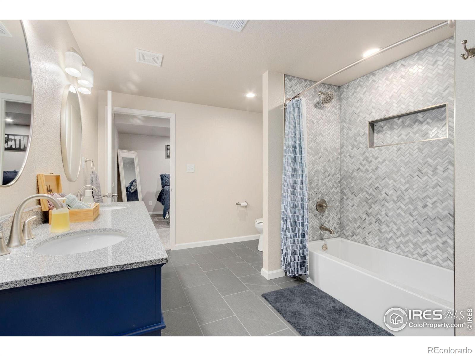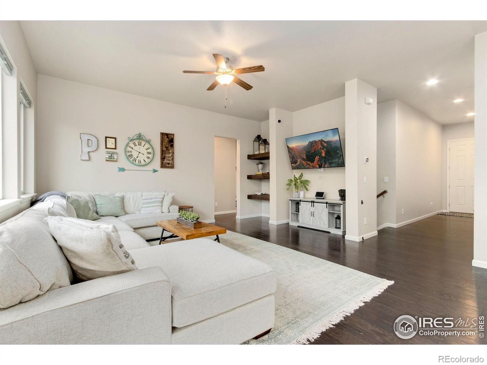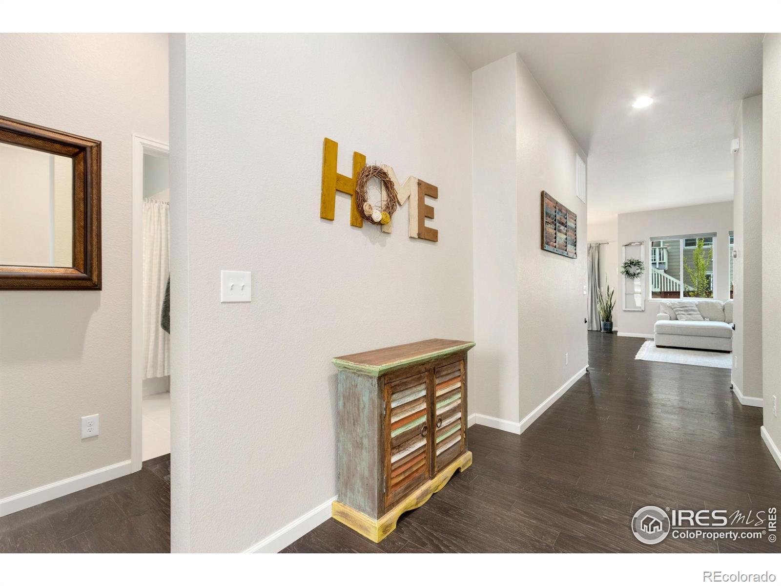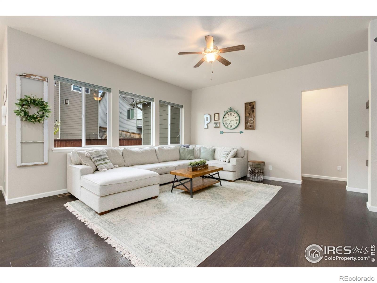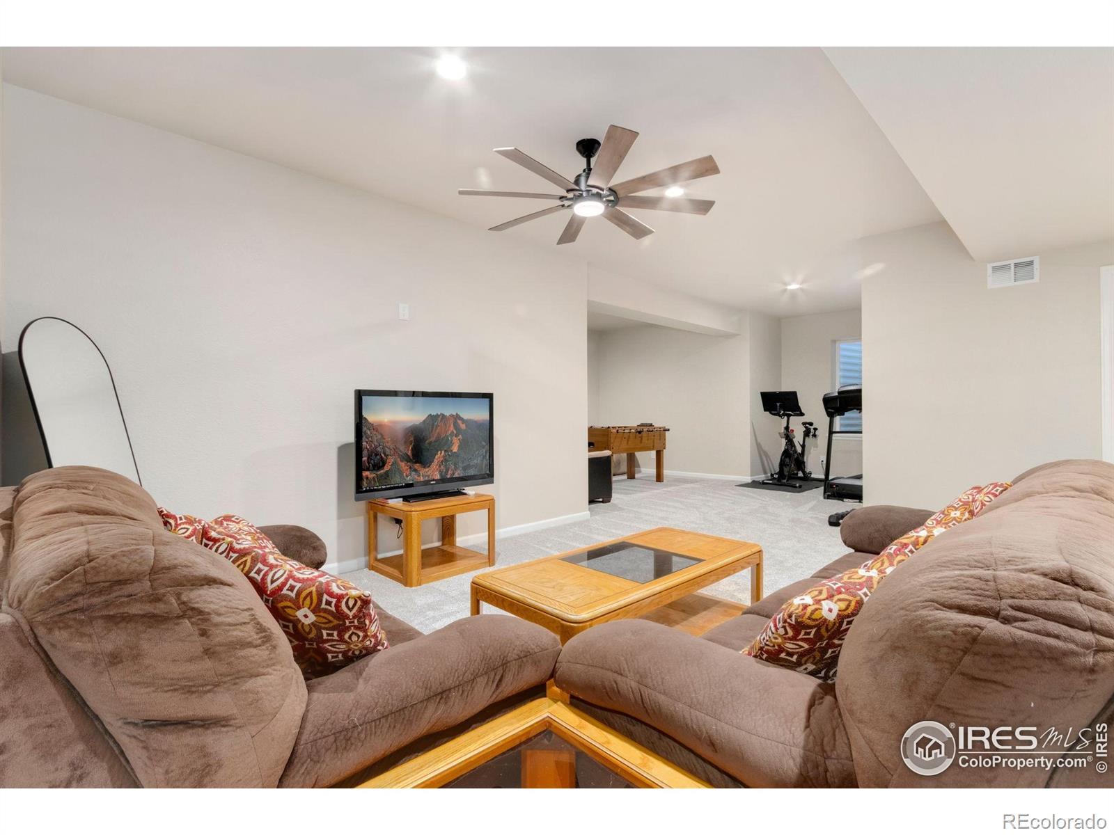 This stunning 5-bedroom, 5-bathroom home in Berthoud's desirable PrairieStar community offers over 3,800 finished square feet of thoughtfully designed living space. This well kept move-in-ready property combines open-concept living, modern finishes, and functional upgrades throughout. The main floor features a spacious kitchen with granite countertops, stainless steel appliances including a gas range, a large island with bar seating, and dedicated pantry. The dining and living areas are filled with natural light from a wall of windows and offer a seamless flow-perfect for entertaining or relaxing. The primary suite is also on the main level and includes a luxurious bathroom with dual sinks, shower, and a generous walk-in closet. Two additional bedrooms, full bathrooms, and laundry complete the main level. The newly finished basement provides excellent flexibility with a large rec room, two dedicated storage rooms, and a second primary suite featuring its own full bathroom and walk-in closet-ideal for guests or multi-generational living. Enjoy outdoor living in the fully fenced, fully sprinklered, and professionally landscaped backyard, complimented by the back patio with mechanical awning for shade. The oversized 3-car garage includes tall ceilings for extra storage. PrairieStar offers an array of amenities including walking trails, pickleball and tennis courts, playgrounds, and an optional pool membership. Just minutes from TPC Colorado, downtown Berthoud, and with easy access to Longmont, Loveland, and I-25, this home blends comfort, convenience, and community.