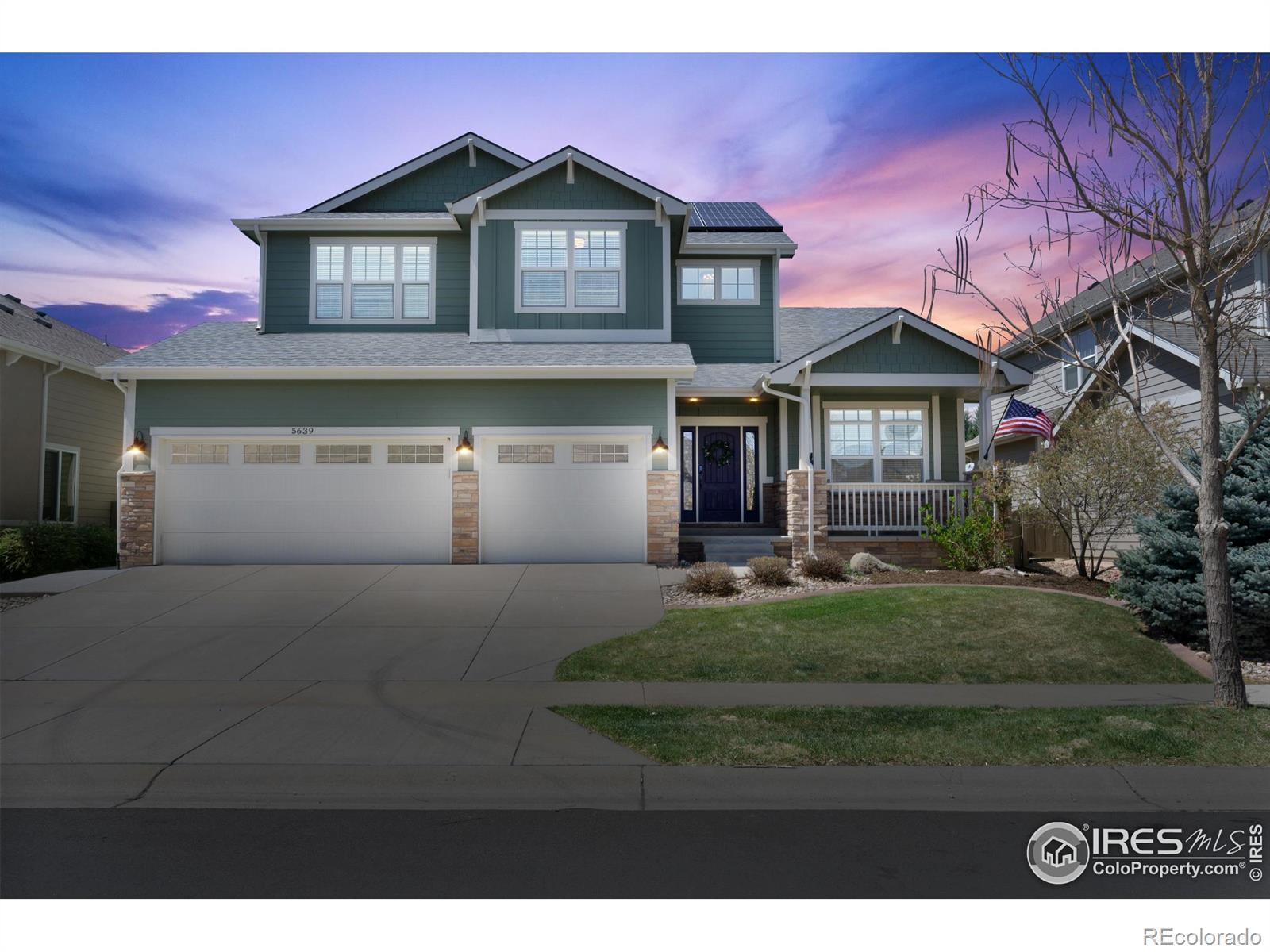 A 2.75% assumable Loan is available on this home, call for details! Tucked within the picturesque community of Fossil Lake Ranch, this meticulously designed 2010 semi-custom home embodies a perfect blend of modern sophistication and timeless charm. Just two miles from I-25-this home offers unparalleled convenience to a wide range of amenities and attractions. Step inside to experience a thoughtfully curated sanctuary, enhanced by fresh interior paint, a stylish new kitchen backsplash, and upgraded lighting throughout-every detail designed to elevate everyday living. The spa-inspired primary bathroom serves as a true retreat, featuring a luxurious volcanic limestone tub that invites you to unwind and recharge. Beyond the home's refined interiors, residents will appreciate its close proximity to Twin Silo and Radiant Parks, offering abundant opportunities for outdoor recreation and relaxation. Contemporary luxury shines throughout, with sleek matte black plumbing and lighting fixtures adding modern elegance to every room. The Fossil Lake Ranch homeowners' association enhances the community experience with amenities such as a refreshing pool, playground, and welcoming clubhouse, fostering a strong sense of connection among neighbors. Sustainability and innovation are front and center, with smart features including an Ecobee thermostat, dual EV chargers, and a fully owned solar system-allowing the home to produce more energy than it consumed in 2023. EV chargers can be programmed to charge exclusively with solar power or during off-peak hours for maximum efficiency. Offering inviting living spaces and peaceful outdoor retreats, this residence is more than just a home-it's a place where lasting memories are made. Welcome to Fossil Lake Ranch, where luxury, convenience, and natural beauty come together to create the lifestyle you've always envisioned.