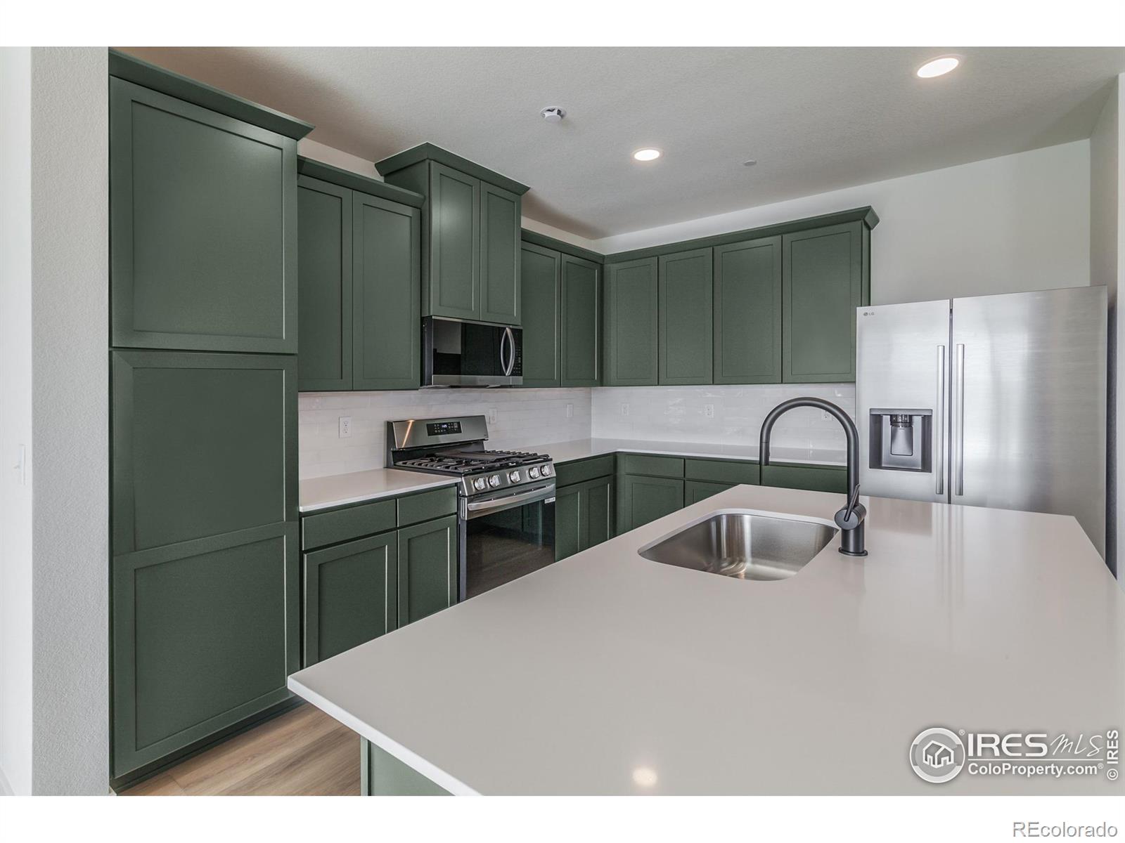 Copperhead by Hartford Homes. New construction townhome in the Wilder at Timnath Ranch community. This thoughtfully designed home offers 3 spacious bedrooms, 2 bathrooms, and a convenient powder bath on the main level. The open-concept layout seamlessly connects the living, dining, and kitchen areas. Fenced front courtyard. The kitchen is equipped with LG stainless steel appliances, including a gas range, microwave, dishwasher, and refrigerator, paired with Eucalyptus painted maple cabinetry and quartz countertops. Vinyl plank flooring runs through the entry, kitchen, dining, bathrooms, laundry, living room. All bedrooms are located on the upper level, alongside a laundry room complete with a washer and dryer. Additional features include central A/C, a garage door opener with keypad. 2in white faux wood blinds. Located across from Bethke Elementary. PHOTOS FROM ACTUAL HOME. ASK ABOUT CURRENT LENDER OR CASH BUYER INCENTIVES.