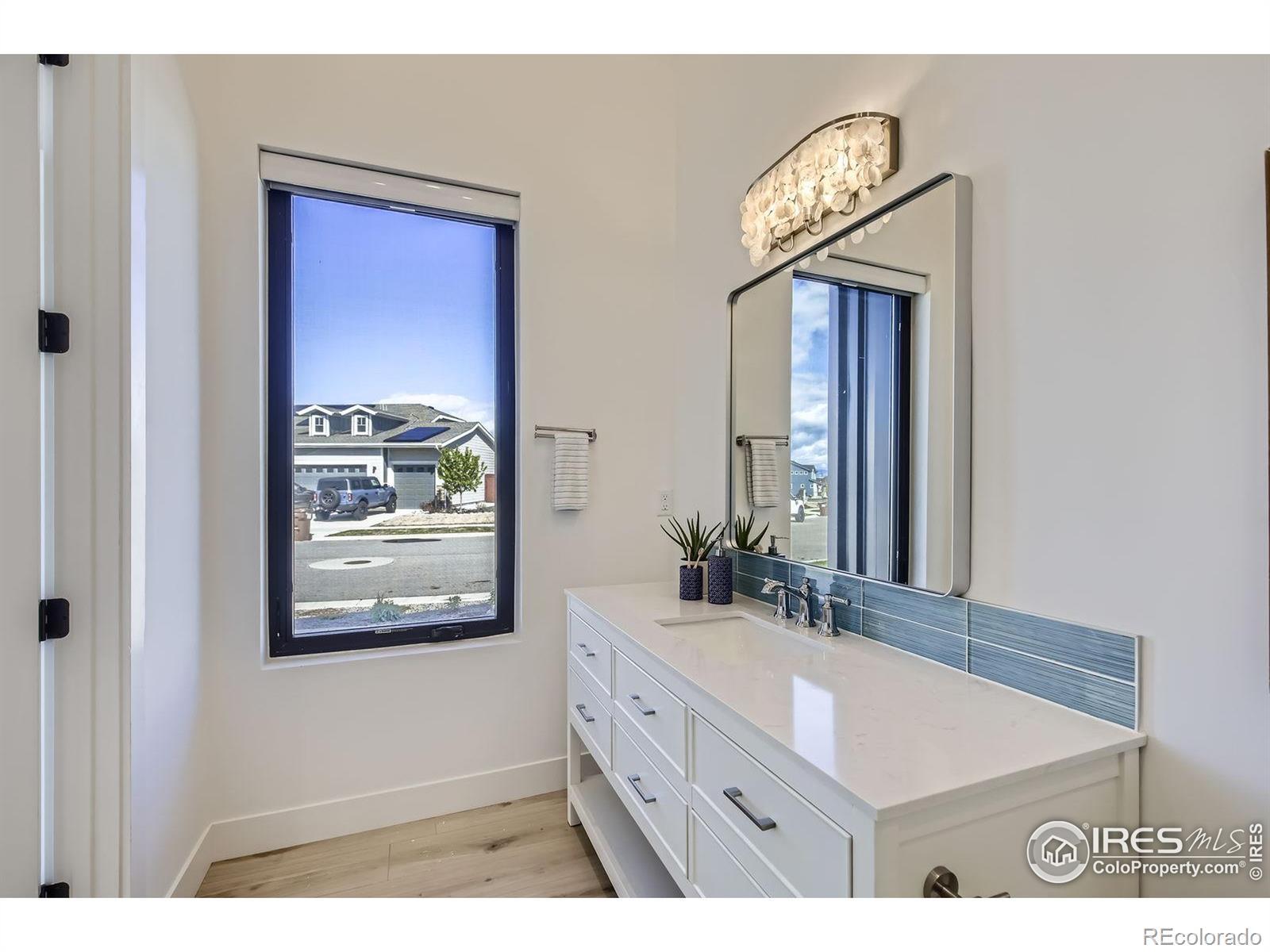 Welcome to elevated Colorado living at its finest. Perched above the #1 green & #2 tee box of the prestigious Raindance National Golf Course, this custom-built masterpiece offers an unrivaled blend of modern design, resort lifestyle, and mountain-view serenity. With over 6,377 sq ft of impeccably designed living space, this 4 bedroom, 5 bathroom estate includes a 602 sq ft private casita-complete with a flex-room, full bath, living area, and kitchenette-perfect for guests, multigenerational living, or luxury office/studio space. The heart of the home is a grand open-concept main floor featuring floor-to-ceiling windows, a fully collapsible glass wall, & seamless indoor-outdoor integration to the expansive deck with built-in hot tub & panoramic mountain views. The chef's kitchen stuns with high-end appliances, massive island, designer cabinetry, and a butler's pantry. Retreat to the main-level primary suite sanctuary with a spa-inspired bath, large shower & oversized custom walk-in closet. Downstairs, a daylight partial walkout basement features two additional en-suite bedrooms, a full bar, game area, & your own state-of-the-art golf simulator lounge. Cap it off with an 840 sq ft rooftop patio, offering unobstructed vistas of the Rocky Mountains, the course, & Windsor's spectacular sunsets.