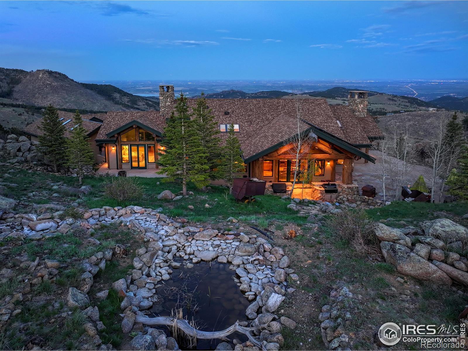 Hidden in the tranquil foothills just 15 minutes from downtown Boulder & 1 hour to the Denver airport, is an extraordinary mountain home on the market for the first time. A 17+ acre legacy estate, stunningly crafted with massive timber posts, hand-selected stone, and architectural design that embraces its wild surroundings-this is not simply a home, but an experience. From the moment you drive through the gate, the landscape welcomes you with quiet majesty. Towering pines, granite outcroppings, and expansive views of Boulder and Denver stretch across the horizon. Deer, foxes, and hummingbirds are frequent visitors-reminders that you're not just near nature, you're part of it; step out the back door to serene hiking trails. The residence itself is a masterwork of rustic elegance, and timeless craftsmanship (think Ralph Lauren/Aspen style). Inside, soaring vaulted ceilings, rich wood beams, and walls of glass invite light and mountain vistas into every room. An elevator carries you between floors, connecting the guest studio apartment to the main home. The open-concept living area centers around a dramatic stone hearth, creating a warm, inviting space for both intimate evenings and lively gatherings. An expansive deck wraps around the home, offering multiple spaces to dine, relax, or simply listen to the wind through the trees. An outdoor stone fireplace anchors the main terrace-a perfect place to gather under the stars, surrounded by the scent of pine and the sound of silence.This is more than a home. It's a once-in-a-generation offering. A place to live boldly, rest deeply, and leave a lasting legacy. Open House Saturday, Oct.11, 2-4 pm