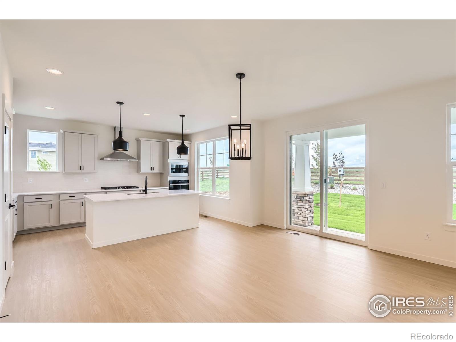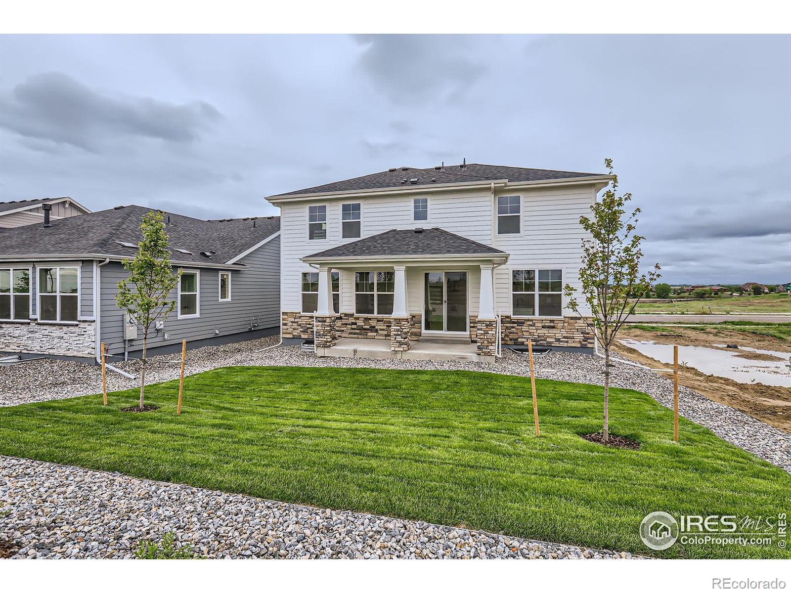 Large, two story, plan features 2,966 square feet of living space including a finished basement. Enjoy 3 roomy bedrooms on the upper level, plus a fireplace in the family room for cozy nights. Enjoy your charming front porch. The dining and kitchen area are open and bright, and the kitchen showcases a stunning center island with quartz counter tops. This home has a covered outdoor dining/entertaining space for warm summer nights. The finished basement includes a rec room, 1 full bathroom and 1 additional bedroom! Lots of upgraded modern finishes to enjoy. This South facing lot backs to open space! Enjoy the oversized 2-car garage for all of your toys. At The Lakes you can kayak, paddle board or fish. Get your steps in with miles of parks and trails winding through the neighborhoods, lakes and along the St. Vrain River. The Cove and Pool community hub offers an outdoor pool, grills, fire-pits, a pickleball court and much more! Come enjoy lake life at Barefoot Lakes! Finished Inventory Summer Special! Contact Sales Office for details
