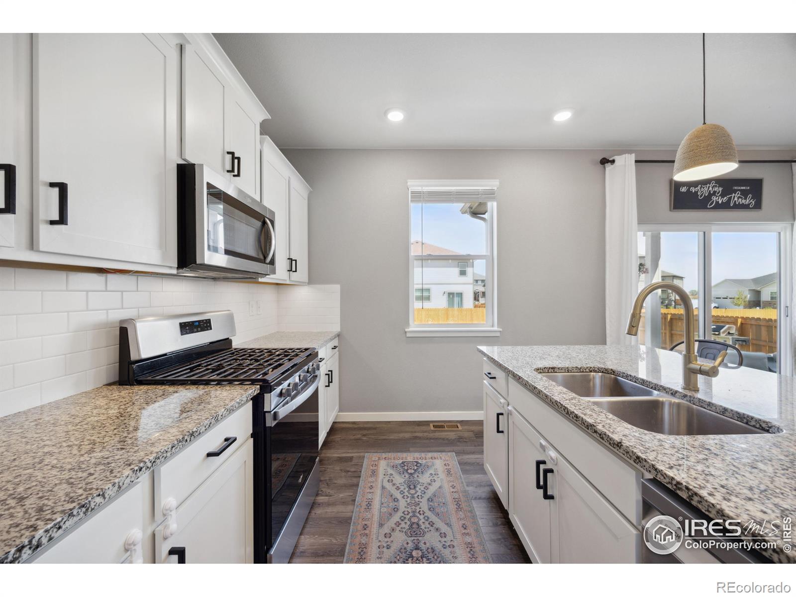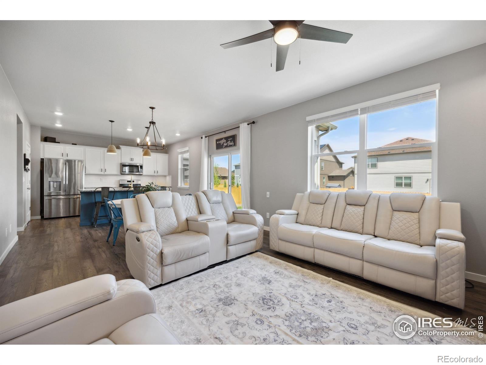 Welcome to 14640 Guernsey Dr, where comfort, style, and functionality meet in this stunning 2022-built home, thoughtfully upgraded to exceed new construction aesthetics. Whether you're a growing household or simply seeking more space, this home offers the perfect blend of modern design and room to expand. Step inside to discover a bright and open layout featuring a dedicated front office with custom built-in workstation-ideal for remote work or study. The heart of the home is the inviting living room, where a sleek electric fireplace with stacked stone surround is flanked by two built-in bookcases, creating a cozy yet refined focal point. The upgraded lighting continues into the dining area and chef's kitchen, where granite countertops, gleaming stainless steel appliances, and a whisper-quiet Bosch dishwasher make meal prep a delight. Smart home technology throughout ensures peace of mind whether you're home or away. A sliding glass door leads to the covered patio and spacious, fenced-in backyard-perfect for summer barbecues or creating your own backyard retreat. With plenty of room to garden, play, or relax, this outdoor space is ready for your personal touch. Upstairs, you'll find four generously sized bedrooms, including a luxurious primary suite with space for a sitting area and breathtaking views of the snow-capped peaks. Both the primary and shared bathrooms are finished with quartz countertops and modern fixtures. The laundry is conveniently located upstairs and includes a washer and dryer. Need more room? The full, unfinished basement with 9' ceilings offers potential for future expansion and the over-sized two car garage has plenty of room for storage or workspace. Located in the peaceful Sorrento neighborhood, this home offers mountain views and access to nearby parks, while still being just minutes from the shops, restaurants, and amenities of Longmont. Quick access to I-25 ensures easy commuting to the entire Front Range.
