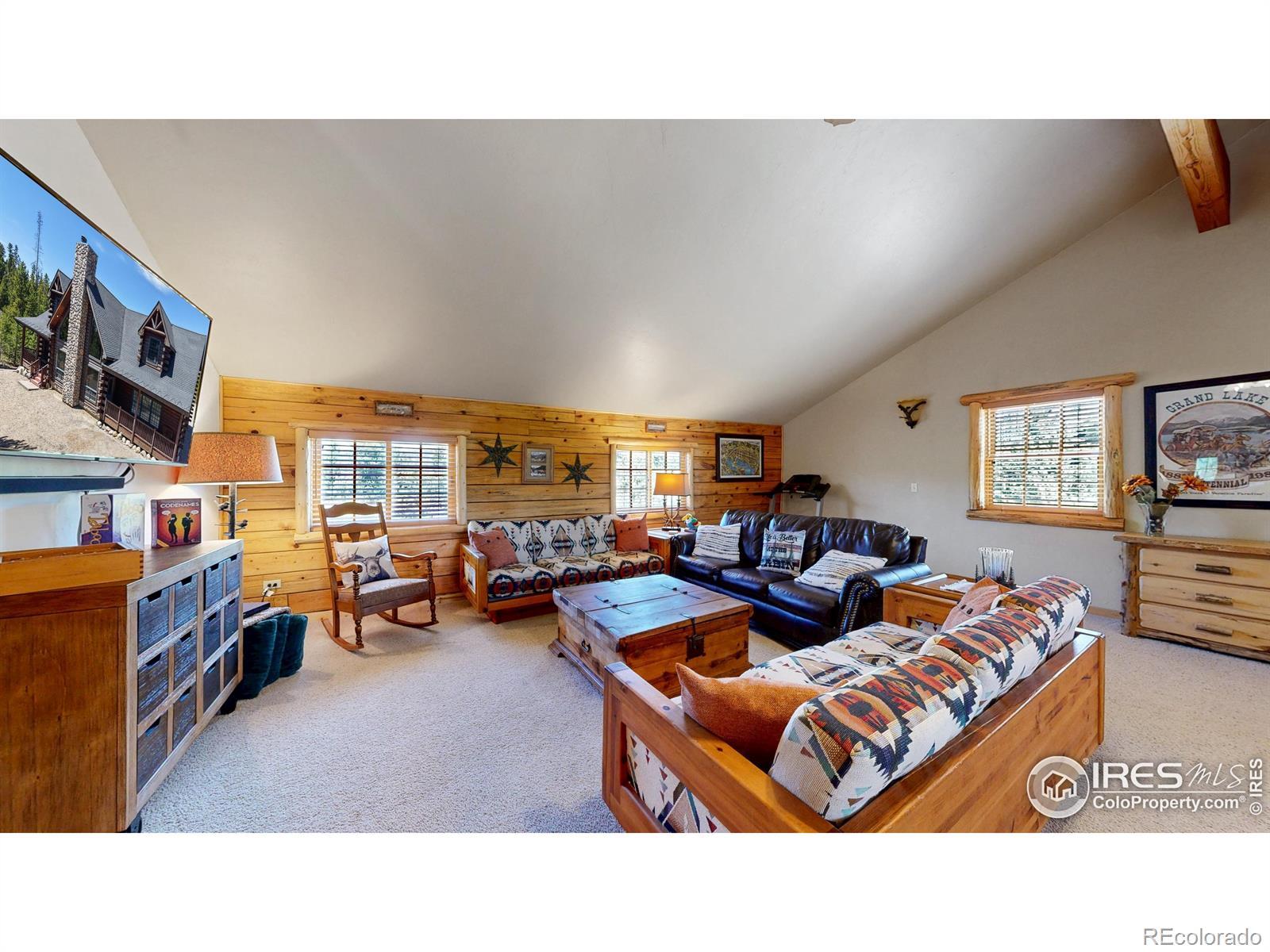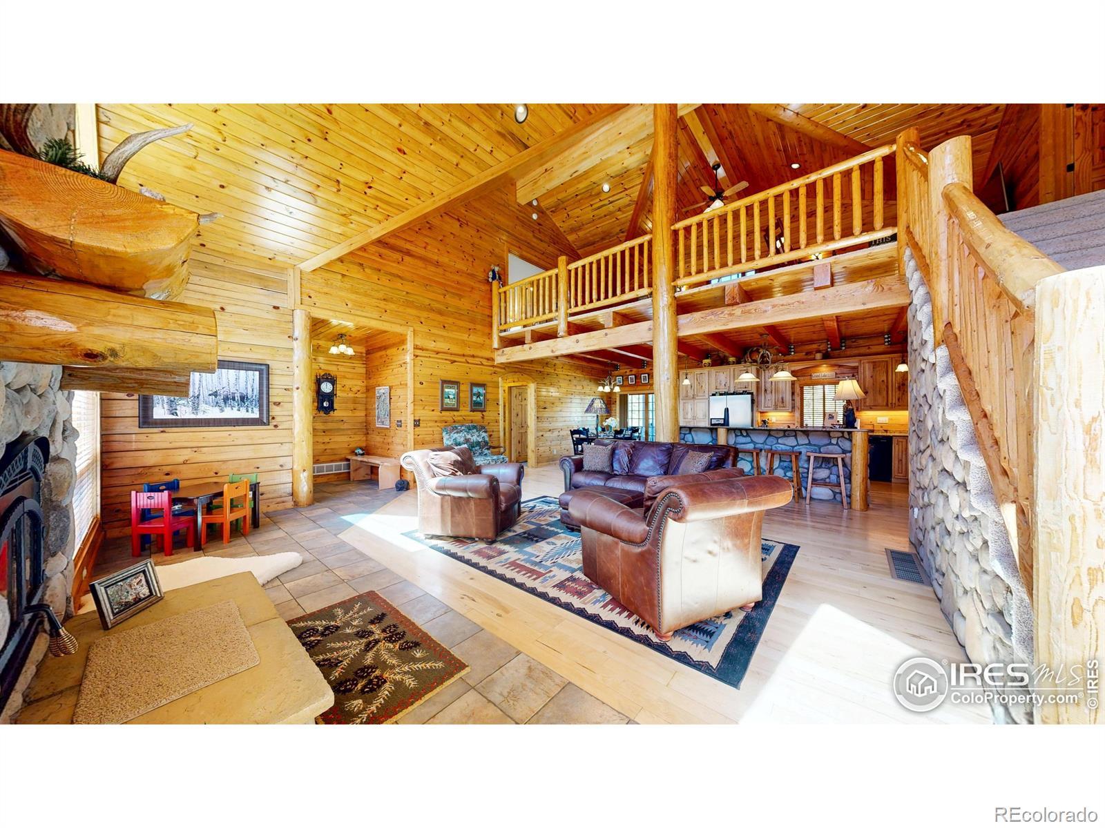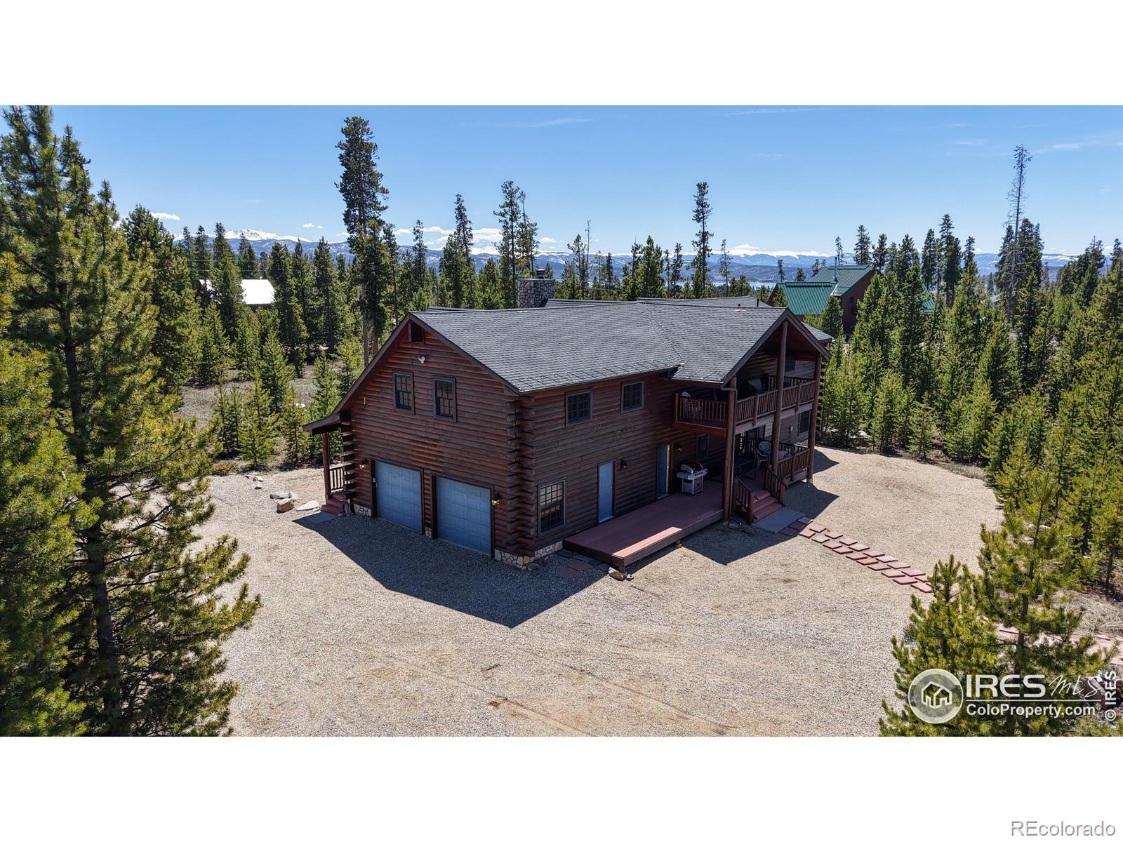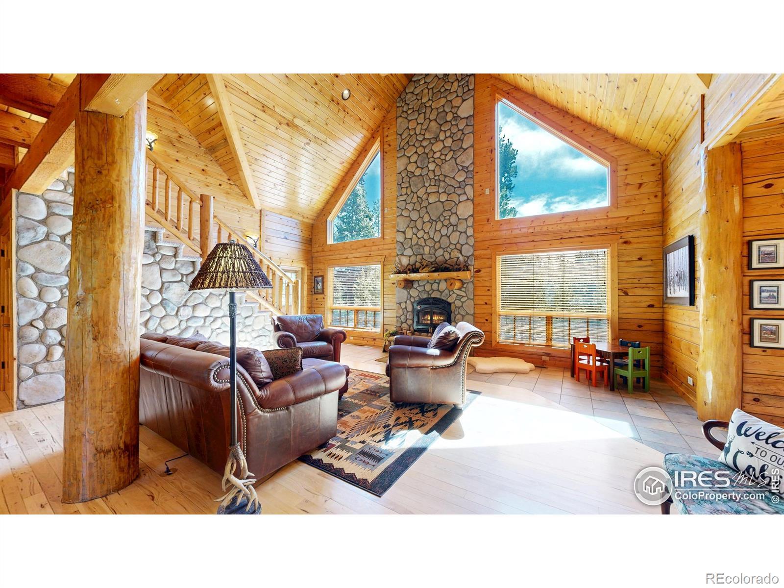Nestled on 2.8 pristine treed acres, this impeccably maintained 6-bedroom, 4-bath custom log home offers an unrivaled Colorado mountain living experience. With over 4,600-square-feet of finished living space, experience modern convenience with the rustic charm of logs, exposed beams and hickory hardwood floors. The spacious great room features soaring vaulted ceilings and a beautiful wood burning fireplace with floor to ceiling river rock. In the gourmet kitchen you'll find custom hickory cabinets, granite countertops, double ovens and a gas cooktop. A separate dining room, two main floor bedrooms, a full bath, laundry room and a mudroom complete the main floor living area. Upstairs, retreat to the primary suite featuring three closets, a private 5-piece bath, and an additional sitting area. The spacious loft offers direct access to the rear deck. The upper level also includes a 27' X 27' bonus room with a gathering area, full bath and 2 built-in beds, plus dedicated space for an additional double bed. The perfect private area for guests or family activities. Basement (finished in 2020) provides two additional bedrooms, 3/4-bath, game room/bonus space for entertaining, and an additional storage area. Owned security system and propane tank included. Oversized, 2 car attached garage and plenty of additional parking. Bring your toys! Enjoy peaceful mornings or evenings of entertaining on one of the four private decks surrounding around the home. Located just minutes from Grand Lake's charming village and the western entrance to Rocky Mountain National Park, restaurants, three lakes and world-class hiking, fishing, and snowmobiling.
