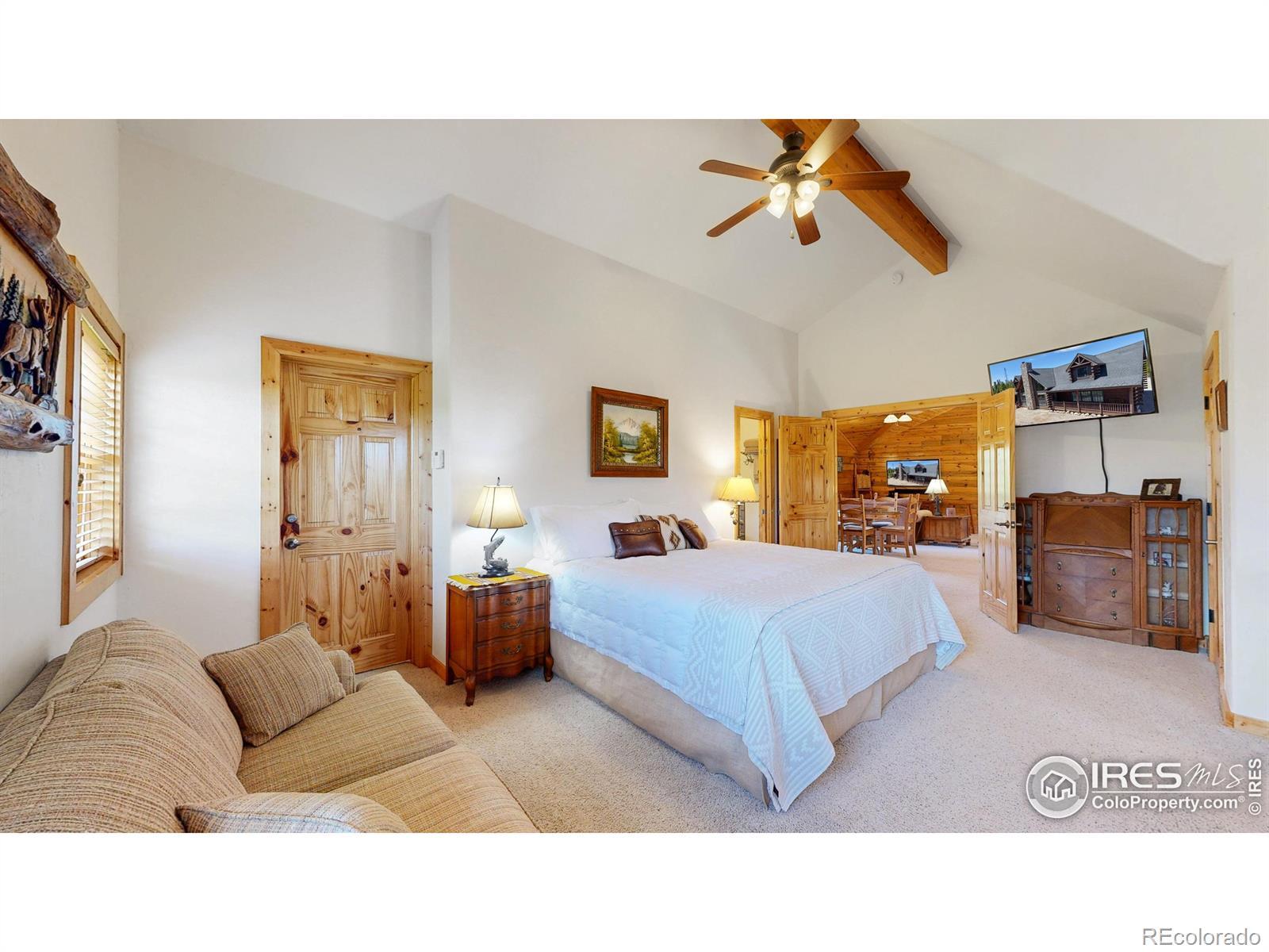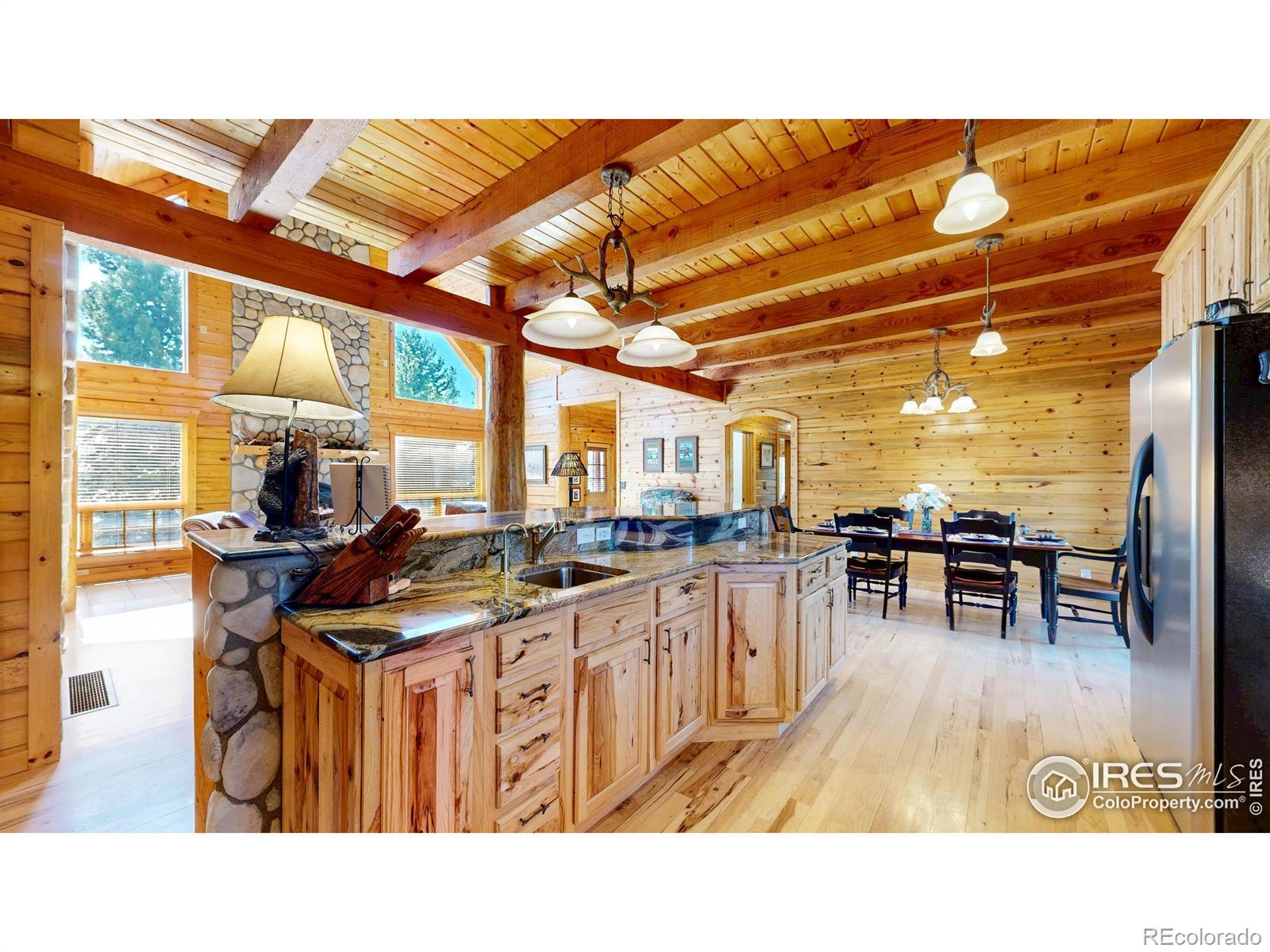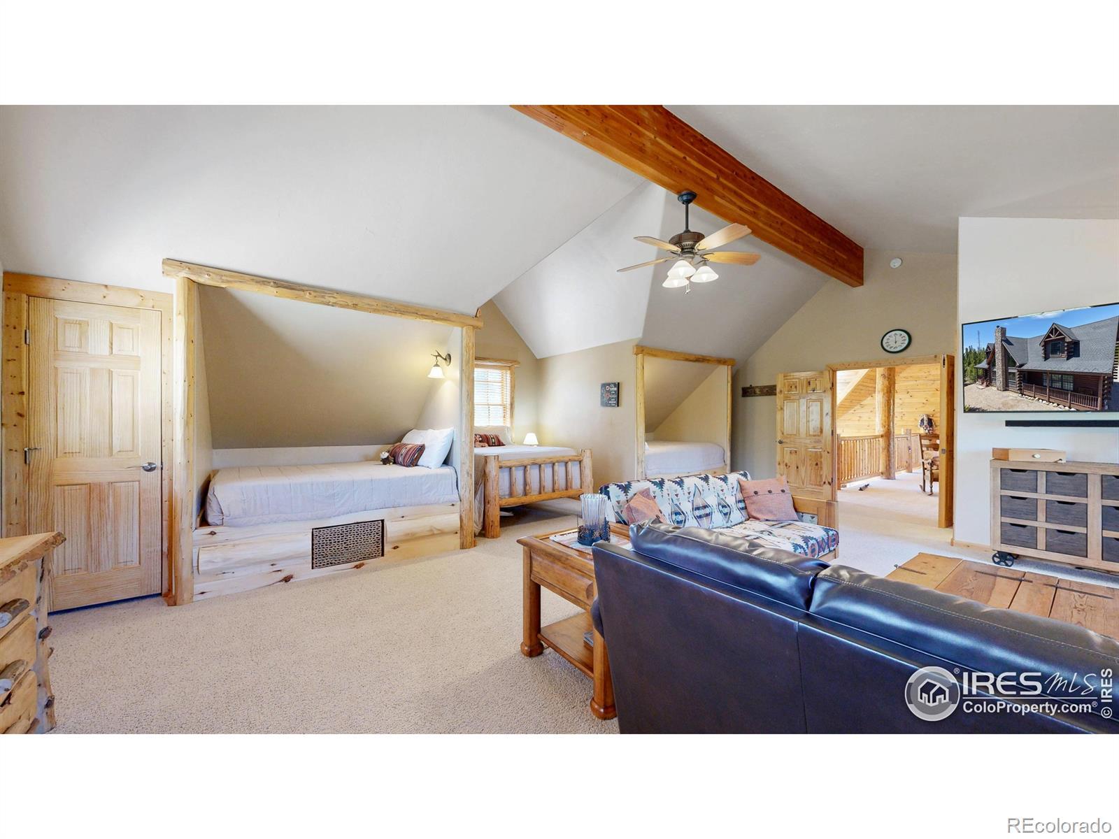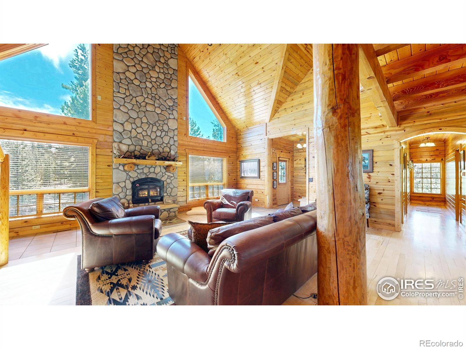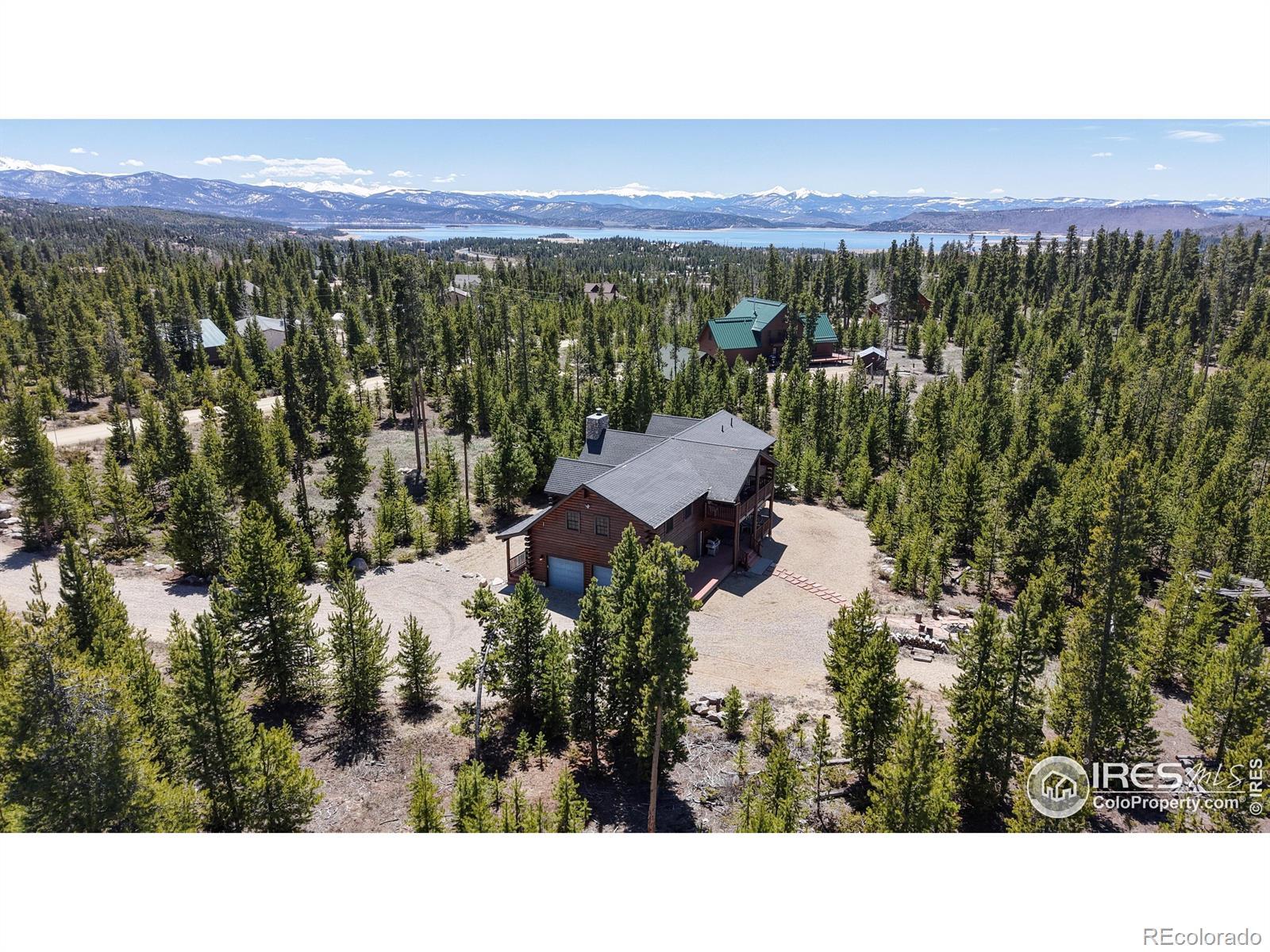 Nestled on 2.8 pristine treed acres, this impeccably maintained 6-bedroom, 4-bath custom log home offers an unrivaled Colorado mountain living experience. With over 4,600-square-feet of finished living space, experience modern convenience with the rustic charm of logs, exposed beams and hickory hardwood floors. The spacious great room features soaring vaulted ceilings and a beautiful wood burning fireplace with floor to ceiling river rock. In the gourmet kitchen you'll find custom hickory cabinets, granite countertops, double ovens and a gas cooktop. A separate dining room, two main floor bedrooms, a full bath, laundry room and a mudroom complete the main floor living area. Upstairs, retreat to the primary suite featuring three closets, a private 5-piece bath, and an additional sitting area. The spacious loft offers direct access to the rear deck. The upper level also includes a 27' X 27' bonus room with a gathering area, full bath and 2 built-in beds, plus dedicated space for an additional double bed. The perfect private area for guests or family activities. Basement (finished in 2020) provides two additional bedrooms, 3/4-bath, game room/bonus space for entertaining, and an additional storage area. Owned security system and propane tank included. Oversized, 2 car attached garage and plenty of additional parking. Bring your toys! Enjoy peaceful mornings or evenings of entertaining on one of the four private decks surrounding around the home. Located just minutes from Grand Lake's charming village and the western entrance to Rocky Mountain National Park, restaurants, three lakes and world-class hiking, fishing, and snowmobiling.