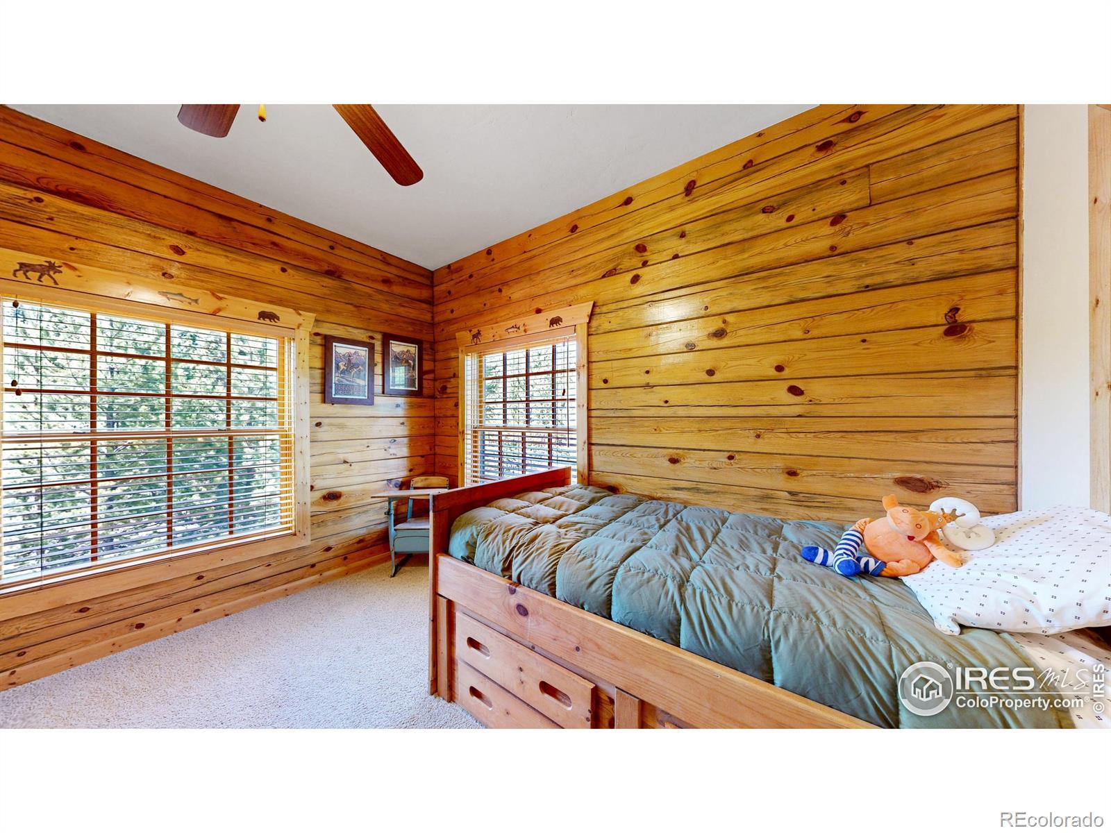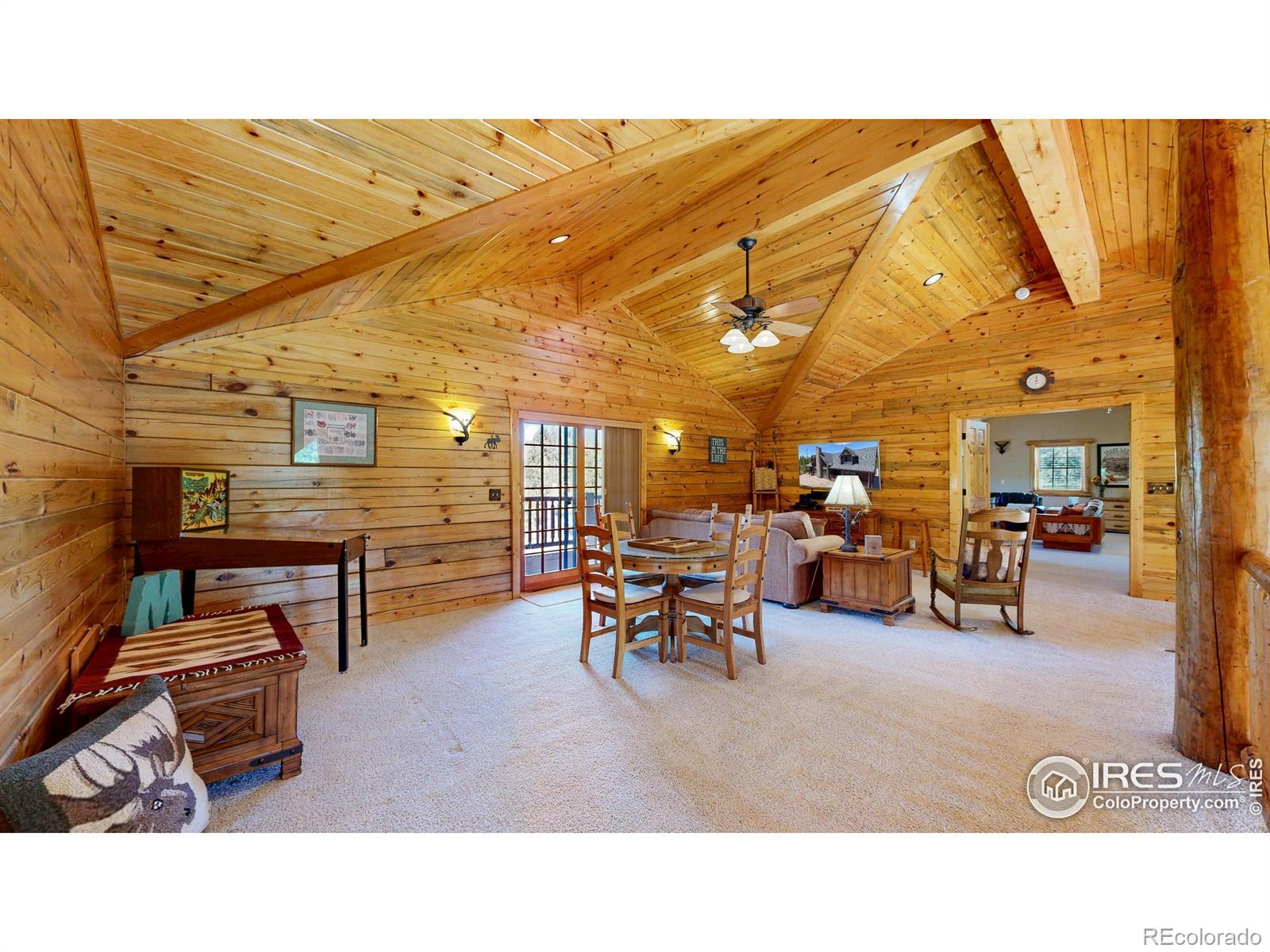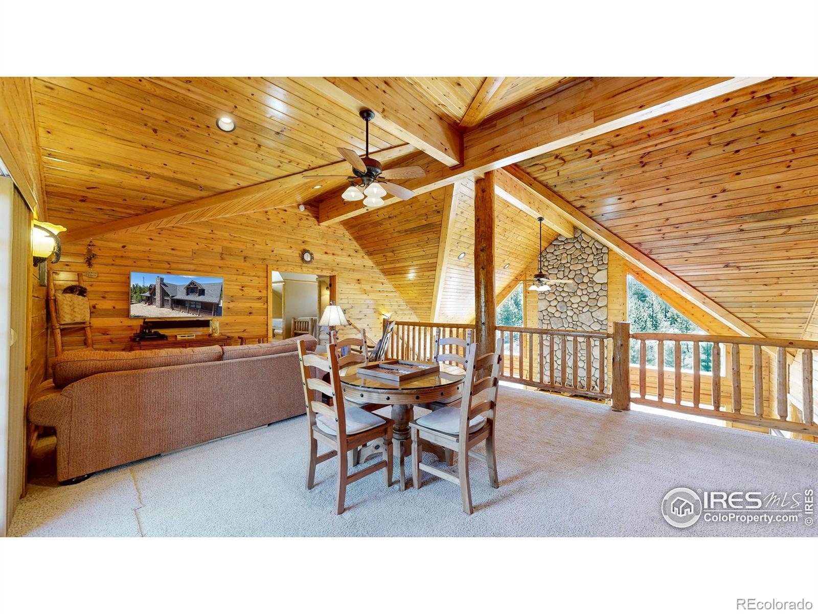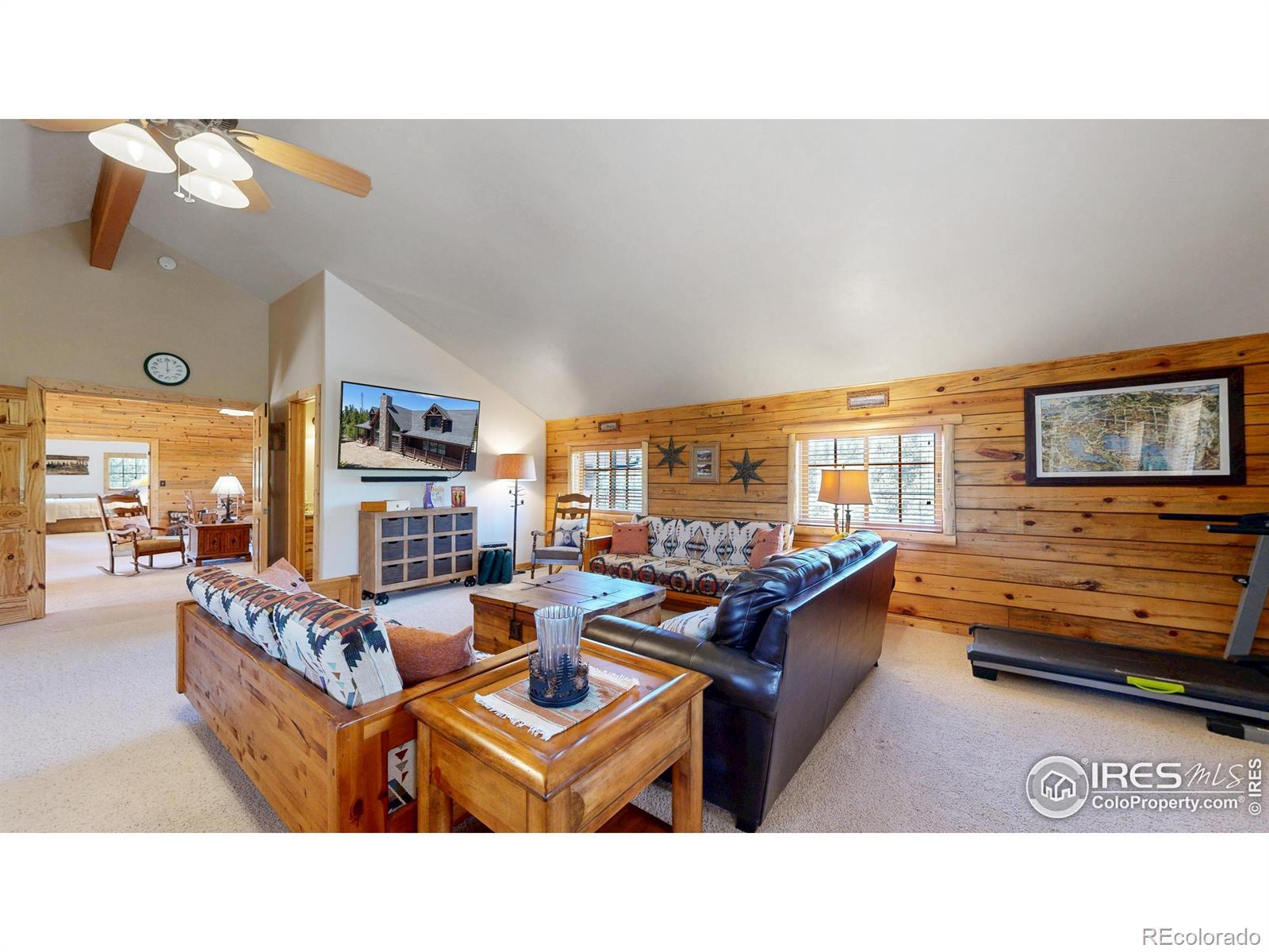 Nestled on 2.8 pristine treed acres, this impeccably maintained 6-bedroom, 4-bath custom log home offers an unrivaled Colorado mountain living experience. With over 4,600-square-feet of finished living space, experience modern convenience with the rustic charm of logs, exposed beams and hickory hardwood floors. The spacious great room features soaring vaulted ceilings and a beautiful wood burning fireplace with floor to ceiling river rock. In the gourmet kitchen you'll find custom hickory cabinets, granite countertops, double ovens and a gas cooktop. A separate dining room, two main floor bedrooms, a full bath, laundry room and a mudroom complete the main floor living area. Upstairs, retreat to the primary suite featuring three closets, a private 5-piece bath, and an additional sitting area. The spacious loft offers direct access to the rear deck. The upper level also includes a 27' X 27' bonus room with a gathering area, full bath and 2 built-in beds, plus dedicated space for an additional double bed. The perfect private area for guests or family activities. Basement (finished in 2020) provides two additional bedrooms, 3/4-bath, game room/bonus space for entertaining, and an additional storage area. Owned security system and propane tank included. Oversized, 2 car attached garage and plenty of additional parking. Bring your toys! Enjoy peaceful mornings or evenings of entertaining on one of the four private decks surrounding around the home. Located just minutes from Grand Lake's charming village and the western entrance to Rocky Mountain National Park, restaurants, three lakes and world-class hiking, fishing, and snowmobiling.