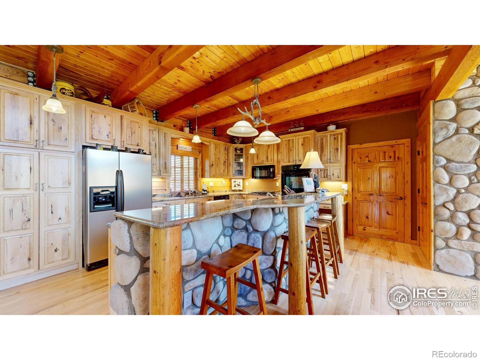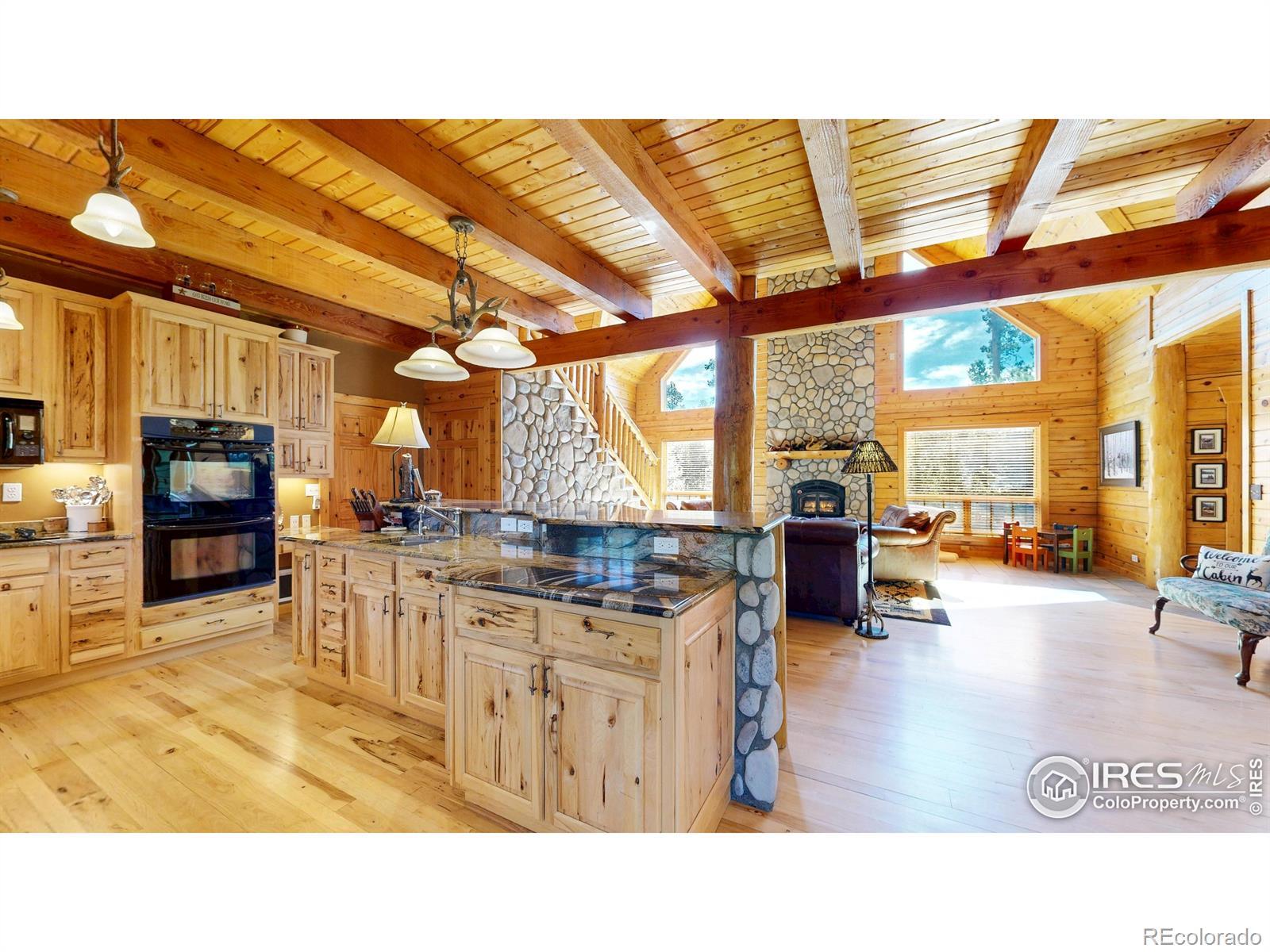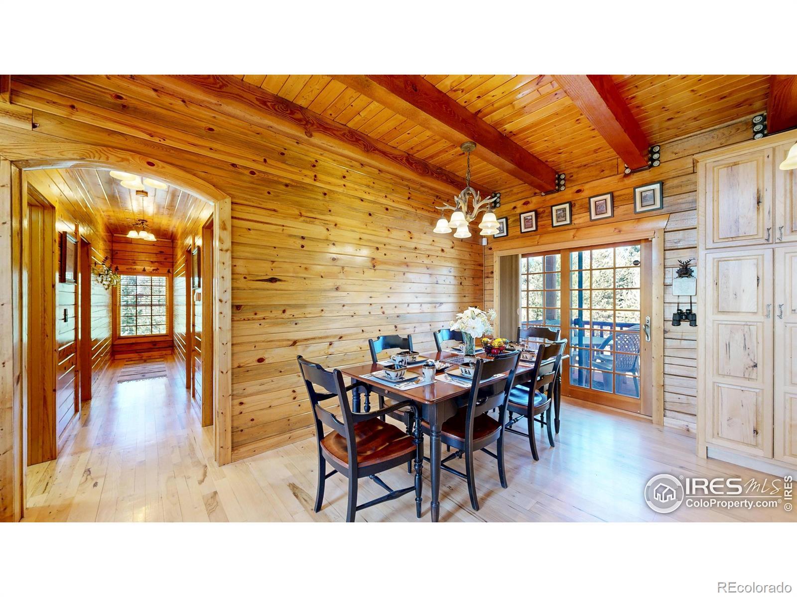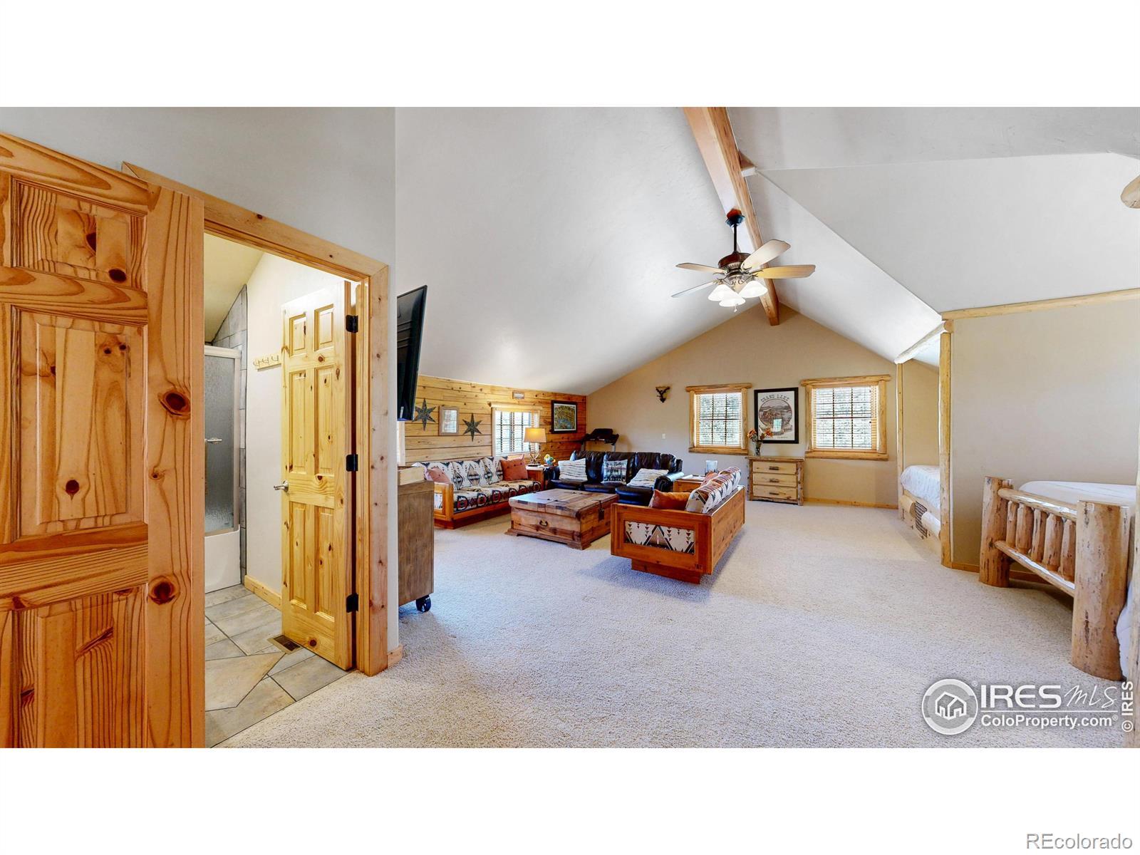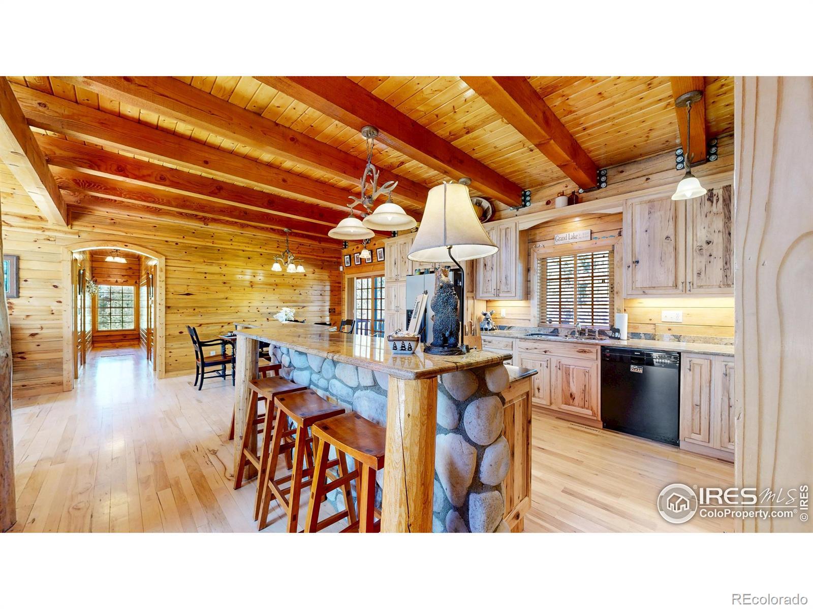 Nestled on 2.8 pristine treed acres, this impeccably maintained 6-bedroom, 4-bath custom log home offers an unrivaled Colorado mountain living experience. With over 4,600-square-feet of finished living space, experience modern convenience with the rustic charm of logs, exposed beams and hickory hardwood floors. The spacious great room features soaring vaulted ceilings and a beautiful wood burning fireplace with floor to ceiling river rock. In the gourmet kitchen you'll find custom hickory cabinets, granite countertops, double ovens and a gas cooktop. A separate dining room, two main floor bedrooms, a full bath, laundry room and a mudroom complete the main floor living area. Upstairs, retreat to the primary suite featuring three closets, a private 5-piece bath, and an additional sitting area. The spacious loft offers direct access to the rear deck. The upper level also includes a 27' X 27' bonus room with a gathering area, full bath and 2 built-in beds, plus dedicated space for an additional double bed. The perfect private area for guests or family activities. Basement (finished in 2020) provides two additional bedrooms, 3/4-bath, game room/bonus space for entertaining, and an additional storage area. Owned security system and propane tank included. Oversized, 2 car attached garage and plenty of additional parking. Bring your toys! Enjoy peaceful mornings or evenings of entertaining on one of the four private decks surrounding around the home. Located just minutes from Grand Lake's charming village and the western entrance to Rocky Mountain National Park, restaurants, three lakes and world-class hiking, fishing, and snowmobiling.