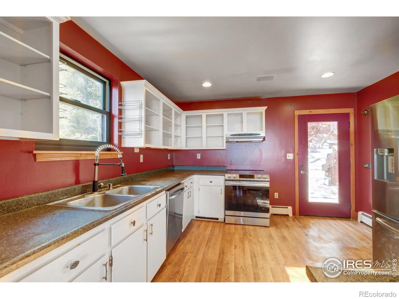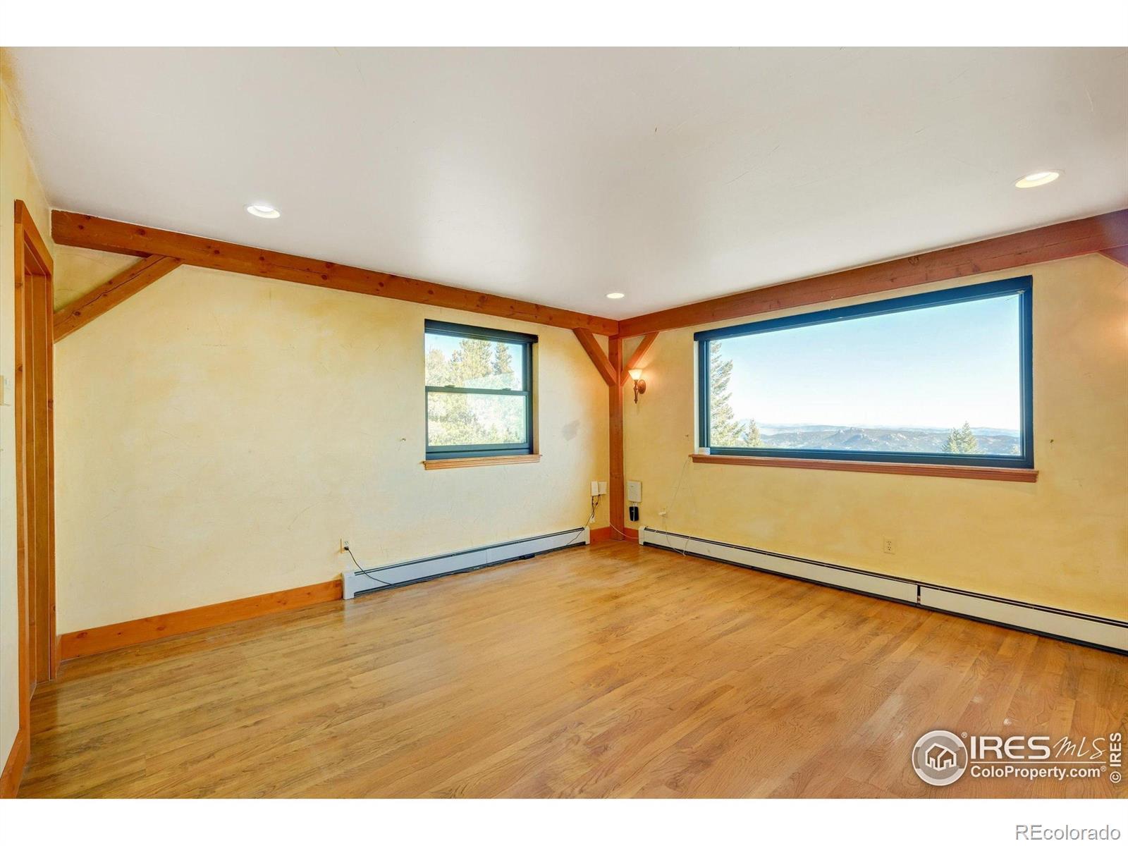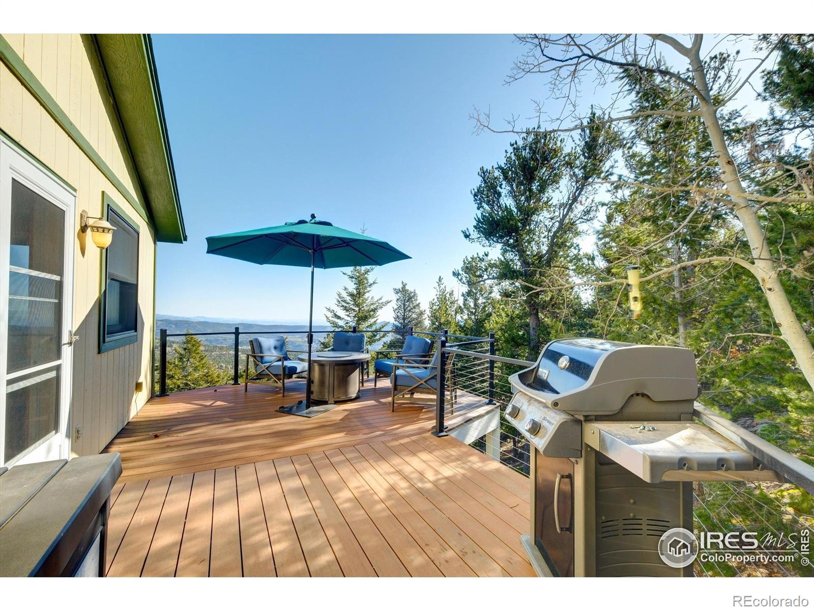 ***HUGE PRICE REDUCTION**THE VIEWS!!! Perched in the peaceful beauty of Canyon Creek, this contemporary mountain home delivers a standing ovation VIEW with every glance-offering unobstructed, jaw-dropping views of Longs Peak, the city of Denver, and the majestic Rocky Mountains (Seriously...some of the best views ever seen). From your brand-new picture windows or the expansive Trex deck, take in Colorado's most iconic scenery-morning to night, season to season. This thoughtfully designed home features 3 bedrooms and 2 full baths, with a main-level primary suite for easy living. Warm wood beam ceilings and gleaming engineered hardwood floors add character and charm, while two fireplaces (main level & basement) create cozy, inviting spaces to gather. The walkout basement includes two additional bedrooms, a full bath, and a spacious family room-perfect for guests or a quiet retreat. Set on over 2 private acres, there's room to roam, garden, or simply soak in the silence and starlight. A rare blend of modern comfort and mountain magic, all within reach of Boulder, Denver, and the great outdoors. This is Colorado living at its finest.