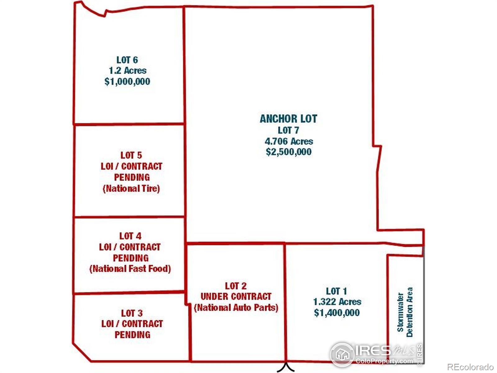PADS NEAR COMPLETION - JULY 2025!New construction, retail shopping center in fast growing Berthoud community. Hard corner/lighted intersection. Approved site plan of box-anchored shopping center with flexible spaces. Close proximity to TPC Colorado Golf Course. Anchor site ideal for grocer, farm & ranch, dollar store, pet store, etc. No natural grocers in rapidly growing community. Pad sites for restaurants, automotive, daycare, quick lube, banks, fast food, gas/convenience, etc. LOT 6 IS 1.2 ACRES. SALE PRICE $1,000,000.