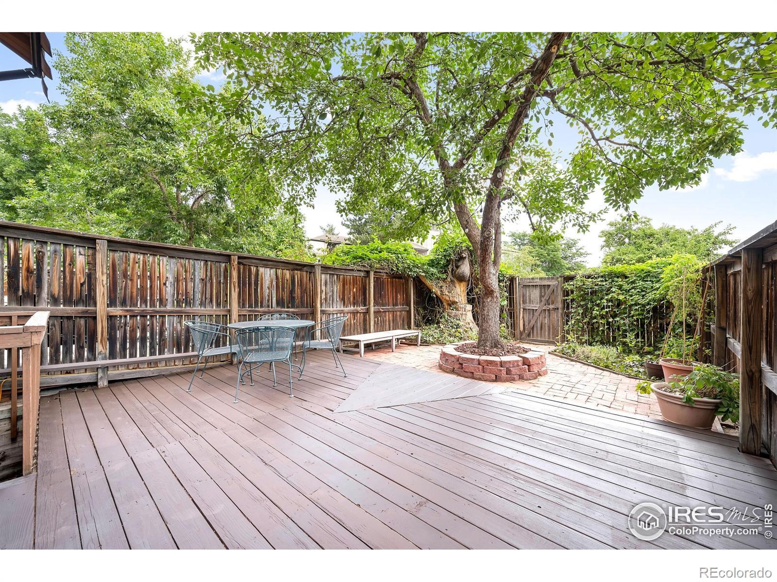 Discover serene bliss and classic charm in this rarely available North Boulder townhome. Poised in a coveted locale within the Willow Springs community, this residence blends convenience with an elevated lifestyle, offering immediate access to nearby parks, bike paths and local nature trails. Surrounded by mature landscaping, a private entrance leads into an open floor plan flowing with warm wood flooring and freshly painted crisp white walls. The living area is adorned with a brick fireplace, perfect for enjoying cozy nights in. A dining area opens into a bright kitchen with pantry storage. One of three sun-filled bedrooms, the spacious primary is complemented by an en-suite vanity and generous walk-in closet. Garden, rest and rejuvenate in your own outdoor oasis with a large, fenced-in deck and yard featuring two private gated entrances near dedicated reserved parking and a one-car garage. This beautifully landscaped, HOA-managed community offers access to amenities including an on-site pool, hot tub and tennis courts. Enjoy living in a vibrant central Boulder location with close proximity to local restaurants, shopping and outdoor recreation.
