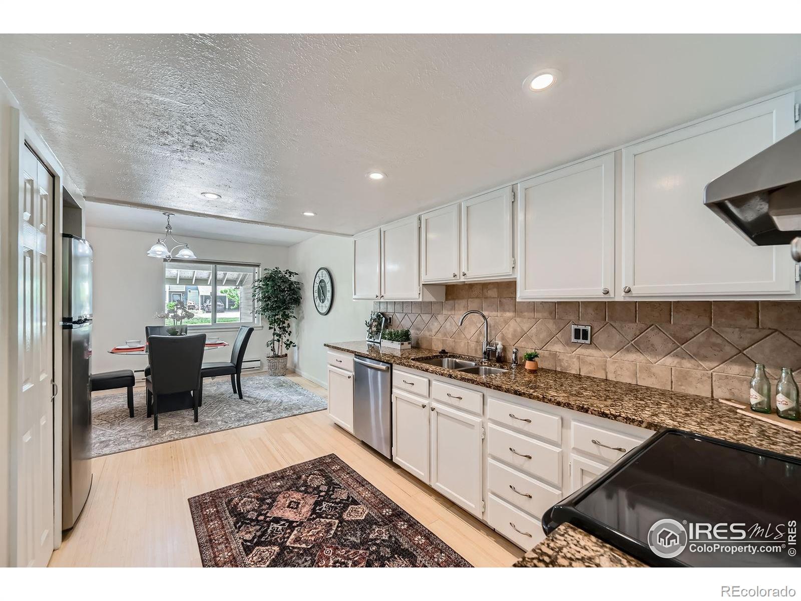 Tucked away in a peaceful corner of Boulder's desirable Glenwood Gardens community, this beautifully updated 3-bedroom, 3-bath townhome lives like a detached home and offers a rare combination of privacy, style, and unbeatable location. Inside, a thoughtful 2012 remodel opened the floor plan and enhanced functionality-adding a new entry between the kitchen and living room, relocating the laundry, and transforming a large bedroom into two separate rooms. Newly refinished bamboo flooring flows throughout the home, complemented by matching granite countertops, stainless steel appliances, modern lighting, and newer vinyl windows and sliders. Enjoy the spacious living room with a cozy fireplace, or step outside to your private, partially covered back patio with flagstone and concrete finishes-perfect for outdoor dining or relaxing under the mature Columnar Oak. Upstairs, the sun-filled primary suite boasts vaulted ceilings, a south-facing balcony, and stunning Flatirons views from the top back deck. With two dedicated parking spaces (one carport and one reserved spot), and HOA services covering snow removal, exterior maintenance, hazard insurance, and more, comfort and convenience are covered. Just steps from greenbelts, trails, and Boulder's best bike paths (Bike Score 100), this location offers easy access to the Diagonal Hwy, Hwy 36, and I-25. Walk to local favorites like The Cork, Verde, and Rayback Collective (Walk Score 77), plus coffee shops, groceries, and public transit. Dog-friendly, community-minded, and move-in ready-don't miss this rare gem in the heart of Boulder. Note: There is a Special Assessment for replacement of the 15 roofs in the HOA. 2 payments with $2K due by July 31, 2025 & another $2K due July 31, 2026