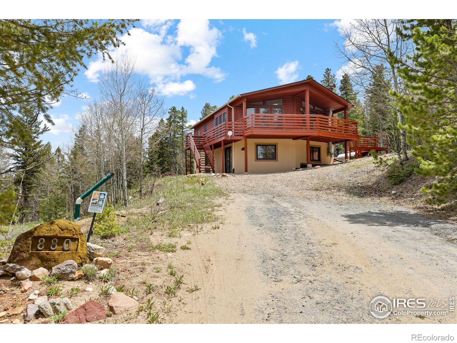 Experience mountain living at its finest in this charming Nederland home, featuring 3 spacious bedrooms and 2 well-appointed bathrooms, spread across 2,138 square feet of comfortable living space. This home is perfectly situated on close to a one-acre lot, providing ample space for outdoor enjoyment and, yet, completely private.Inside, you'll find a layout designed for both relaxation and entertaining. The main living area shows off with vaulted ceilings and views of the Continental Divide from every angle. Don't stop there as you will be equally impressed with the gorgeously updated kitchen made for a chef. Also on the main level you will find two bedrooms and a luxury bathroom.Step outside onto the spacious covered deck, soaking in the western and northern views. Watch the sun dip behind the mountains as hummingbirds zip around and listen to the soothing sound of the creek in the quiet evening air. It's the perfect spot to escape and relax.The walk-out basement is sun drenched and spacious. With flexibility for a third bedroom, an office, a den, or a creative space, this floor is a blank slate to fill your needs. Outdoor views from every side of the house upstairs and down. Speaking of outdoors- you will enjoy elk, moose, bobcats, and even wild turkey!This property is a smart choice for those seeking a harmonious blend of nature and convenience. Close to National Forest hiking and biking. Don't miss the opportunity to make this delightful home your own mountain retreat! 30 minutes to Boulder, 10 minutes from Nederland, and yet you feel like you are on vacation every day!