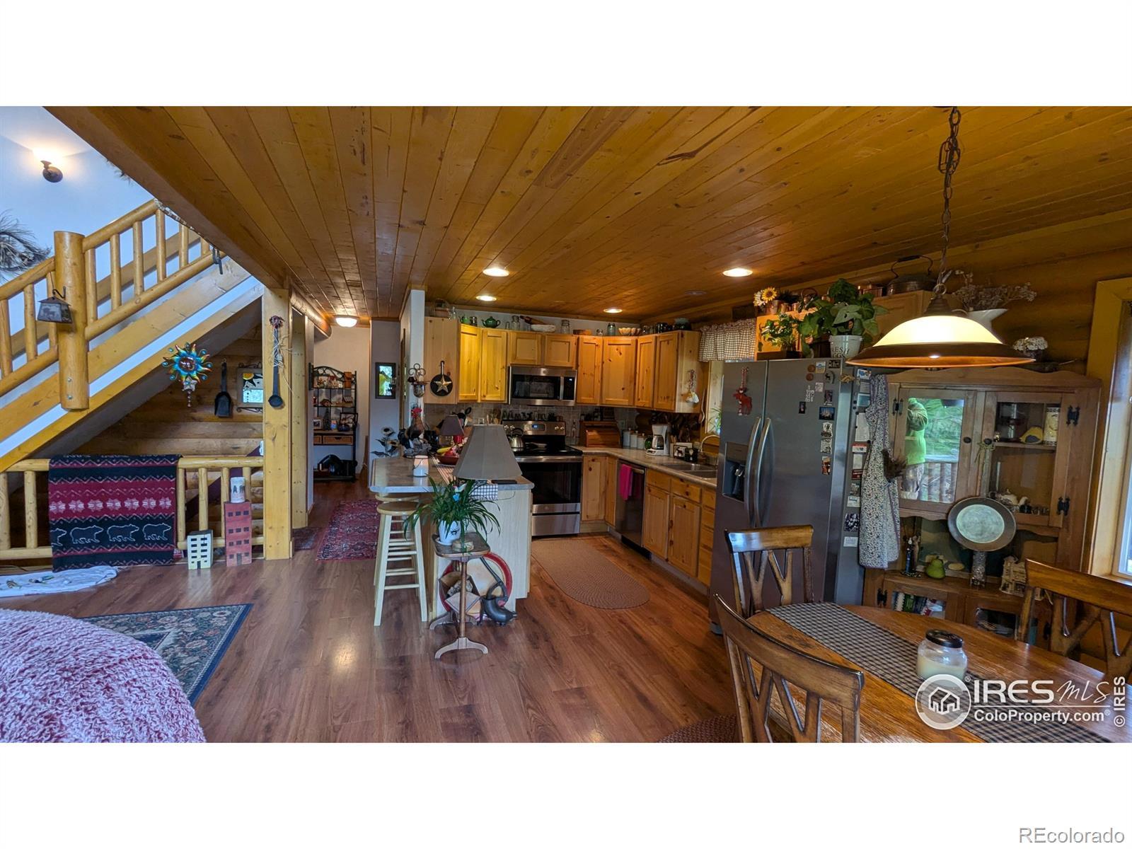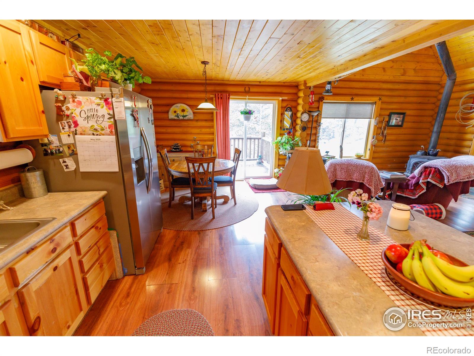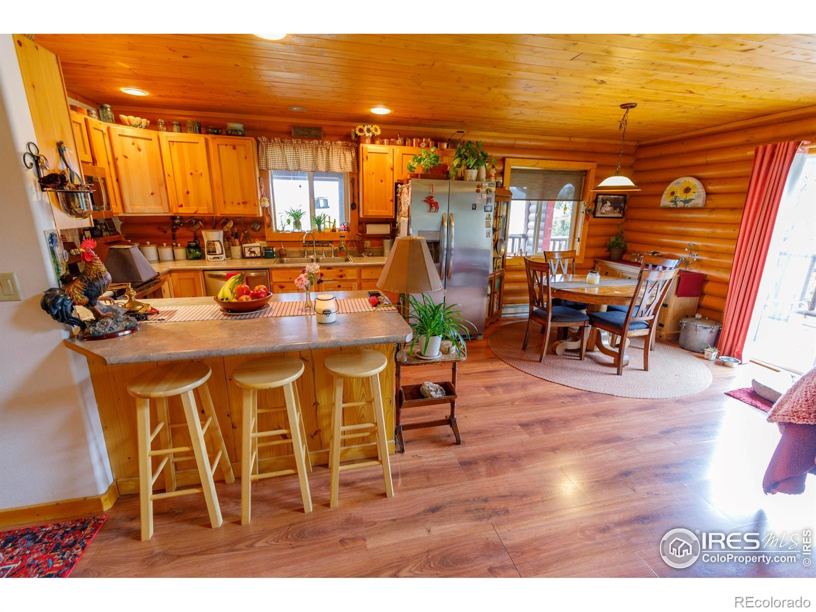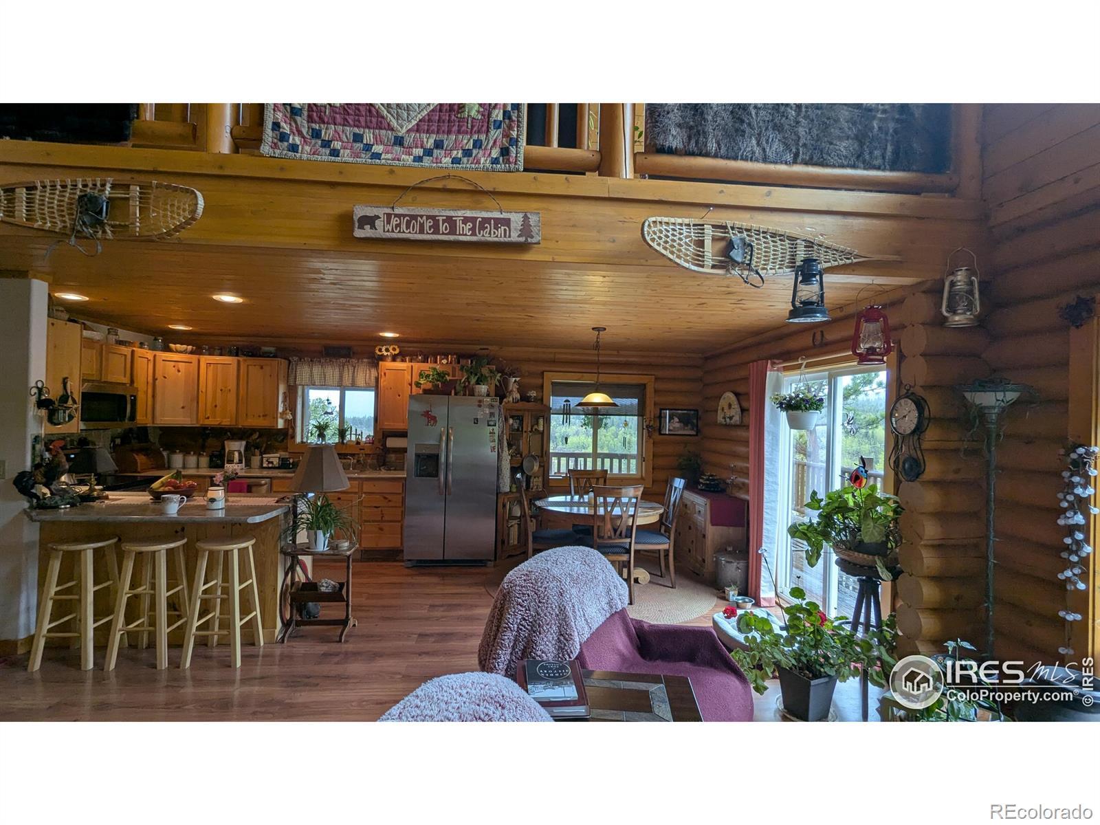 CUSTOM LOG HOME/ OVERSIZE SHOP/GARAGE, Fabulous Country Log Home on over 2.6 acres of gentle rolling mountain land. Over 2,920 square feet of living space includes walkout lower level and addition room, All the romance of knotty pine ceilings + full round logs, Great room design with loft, walkout lower level and covered porch for lots of extra space to enjoy the best of mountain living. It is in great shape and very well maintained, 4 bdrm, 3 bath home has lots of potential, Fireplace in great room and pellet stove in lower level. Oversize 1,950 sq ft Garage / shop with 3 - 9 foot doors, Additional 10x 12 building for office or extra storage, Great Buy - Lots of Home w/ extras for the $$, Property has grassy meadows, tall pine and quaking aspen, Close to Nat'l Forest, In scenic Crystal Lakes, just 5 miles from Red Feather lakes Village and an hour drive NW of Fort Collins, All kitchen appliances, Billiard table, ATV with plow and some furniture negotiable, Full fishing privileges included too, Come on up and See it for yourself, Call Today!