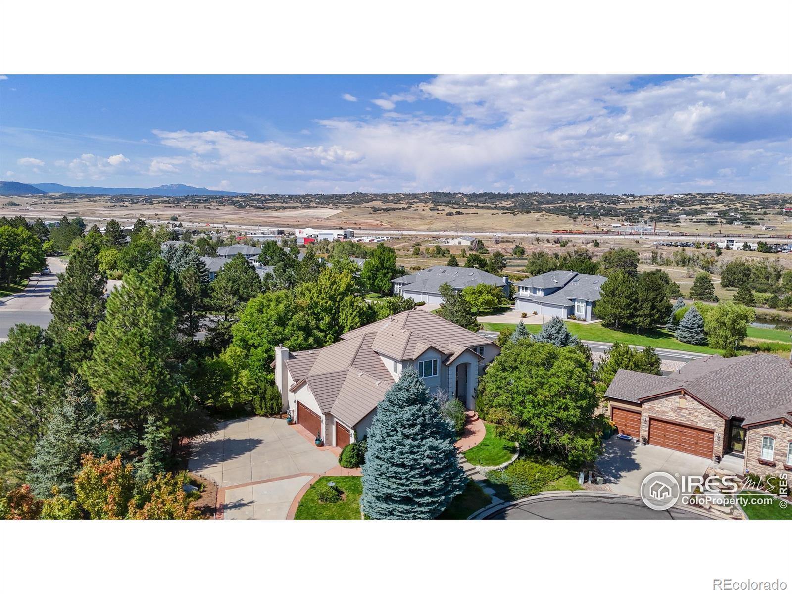 Luxury Living in Players Club Estates - Private, Peaceful, and Perfectly Appointed. Welcome to your executive retreat in Players Club Estates - where refined living meets mountain serenity on a rare 23,740 sq ft lot spanning two parcels. Tucked among majestic pines with beautifully tiered landscaping and decorative stone walls, this home offers unbeatable privacy, space, and elegance just steps from Plum Creek Golf Course. Inside, the sunlit foyer leads to a thoughtful open floor plan with a seamless blend of formal entertaining areas and relaxed family spaces. The main-floor primary suite is a true sanctuary, featuring a luxurious 5-piece bath, walk-in closet, plantation shutters, and direct deck access. Need to work from home? You'll love the private executive office with French doors and custom floor-to-ceiling built-ins. The heart of the home is a chef's kitchen with center island, cheerful breakfast nook, planning desk, and ample storage - perfect for entertaining or casual gatherings. Upstairs, three spacious bedrooms offer ideal separation: one with an ensuite bath, and two connected by a Jack & Jill layout, perfect for family or guests. The finished walkout basement adds even more versatility, with a large family room, game table niche, wet bar, wine cellar, and a flexible bonus room (easily converted into a 5th bedroom). There's even space for a gym, playroom, or home theater - the options are endless. Enjoy Colorado's 300+ days of sunshine from two decks and a lower patio, ideal for outdoor dining, relaxing, or soaking in Front Range views. Additional highlights include: 3-car attached garage, Mature landscaping and lush privacy on a Quiet cul-de-sac location. Moments from Plum Creek Golf Club, trails, shopping, and I-25 access. This one-of-a-kind property is move-in ready and offers the rare combination of luxury, space, and natural beauty - don't miss your chance to call it home.