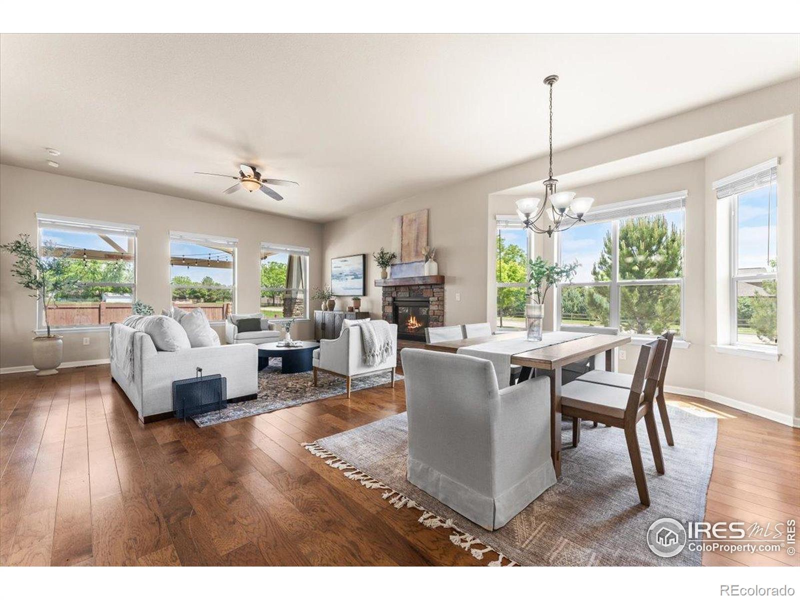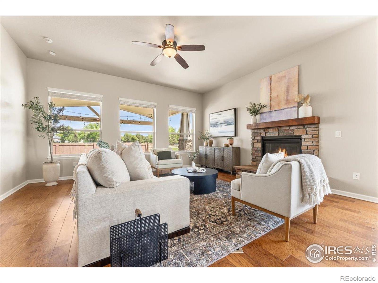 Seller is offering a seller concession! Located in the desirable Kechter Farm neighborhood of southeast Fort Collins, this Toll Brothers-built 1-story ranch home offers true main-floor living with a finished basement and flexible living spaces. Built in 2016, the home features 4 bedrooms, 3 bathrooms, and 3,746 total sq ft, including 3,070 fin sq ft, with 2,110 fin sq ft on the main level. The open floor plan includes a spacious living area with a cozy fireplace, flowing into the kitchen and dining space. The kitchen features a large center island with under-cabinet storage and a walk-in pantry, offering functional workspace and storage. The primary suite is located on the main level, along with an office on the main level, providing convenient single-story living. The finished basement adds additional living space, plus unfinished storage. Situated on a corner lot, the home features a fenced yard and covered patio, ideal for outdoor enjoyment and neighbors only on one side. Additional highlights include an attached 2-car garage and quality construction typical of a Toll Brothers home. This gorgeous home is close to Twin Silo Park, Tailwinds Park, and walking paths throughout Kechter Farm, with nearby access to Starbucks, Dazbog Coffee, Target, King Soopers, Safeway, Sprouts, Costco, and Walmart. The home is served by Poudre School District with elementary, middle, and high schools within walking distance or short bike ride away. With quick highway access and no metro district, this home combines ranch-style living, thoughtful design, and everyday convenience in southeast Fort Collins. The exclusive Kechter Farm clubhouse, fitness center and pool are within walking distance too!