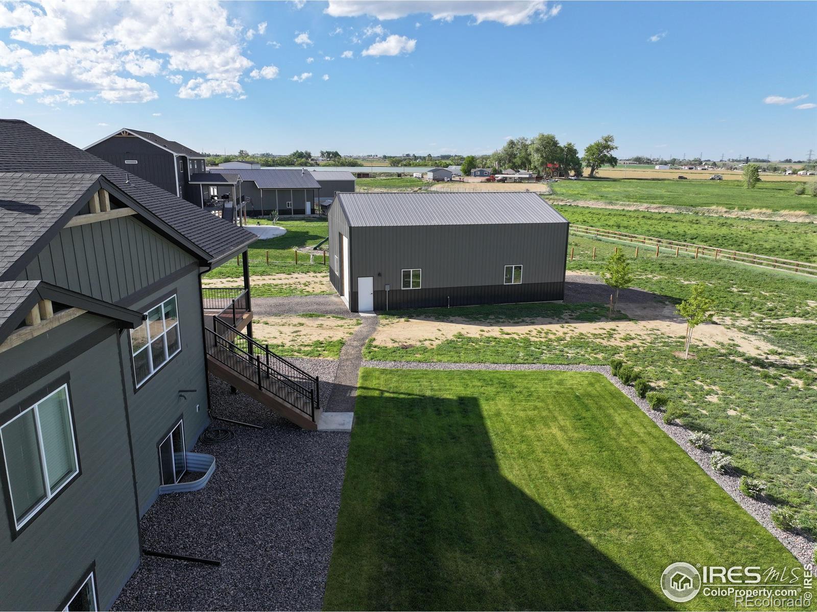 This stunning modern farmhouse ranch offers an inviting open floor plan, featuring 3 bedrooms, 2 bathrooms, and 3,720 total square feet of thoughtfully designed living space. The gourmet kitchen is a chef's delight, equipped with a 5-burner gas range, a spacious center island with ample counter space, and a convenient corner pantry. Enjoy the ease of a main floor laundry room just off the garage, with plenty of storage for your everyday essentials. Cozy up by the gas log fireplace or relax on the covered deck, perfect for outdoor entertaining. The unfinished garden-level basement offers endless potential, with the option to finish it, adding 2 additional bedrooms and a full bathroom. This home also includes a 3-car garage and a massive 30x50 outbuilding with concrete floor, gas and electric and pull through doors; ideal for hobbies, storage, or a workshop. Large shop doors are 12x14 - ready for your RV! - and smaller door is 10x10. Set on a generous 1.25-acre lot with, you'll enjoy both space and serenity. Non-potable water is available through the Metro District. Perfectly located with easy access to I-25 or Hwy 85 and within the highly regarded Eaton School District, this home combines rural charm with modern convenience. Basement finish option available through builder. See documents for cost.