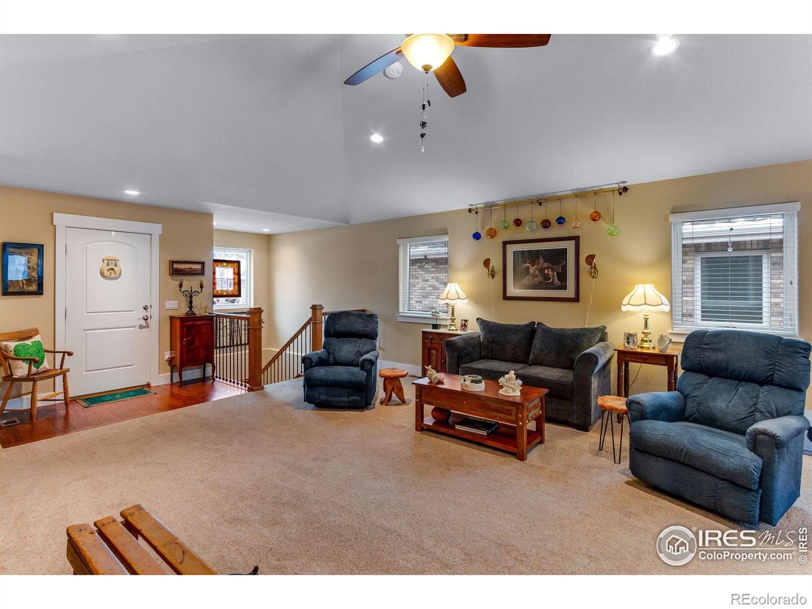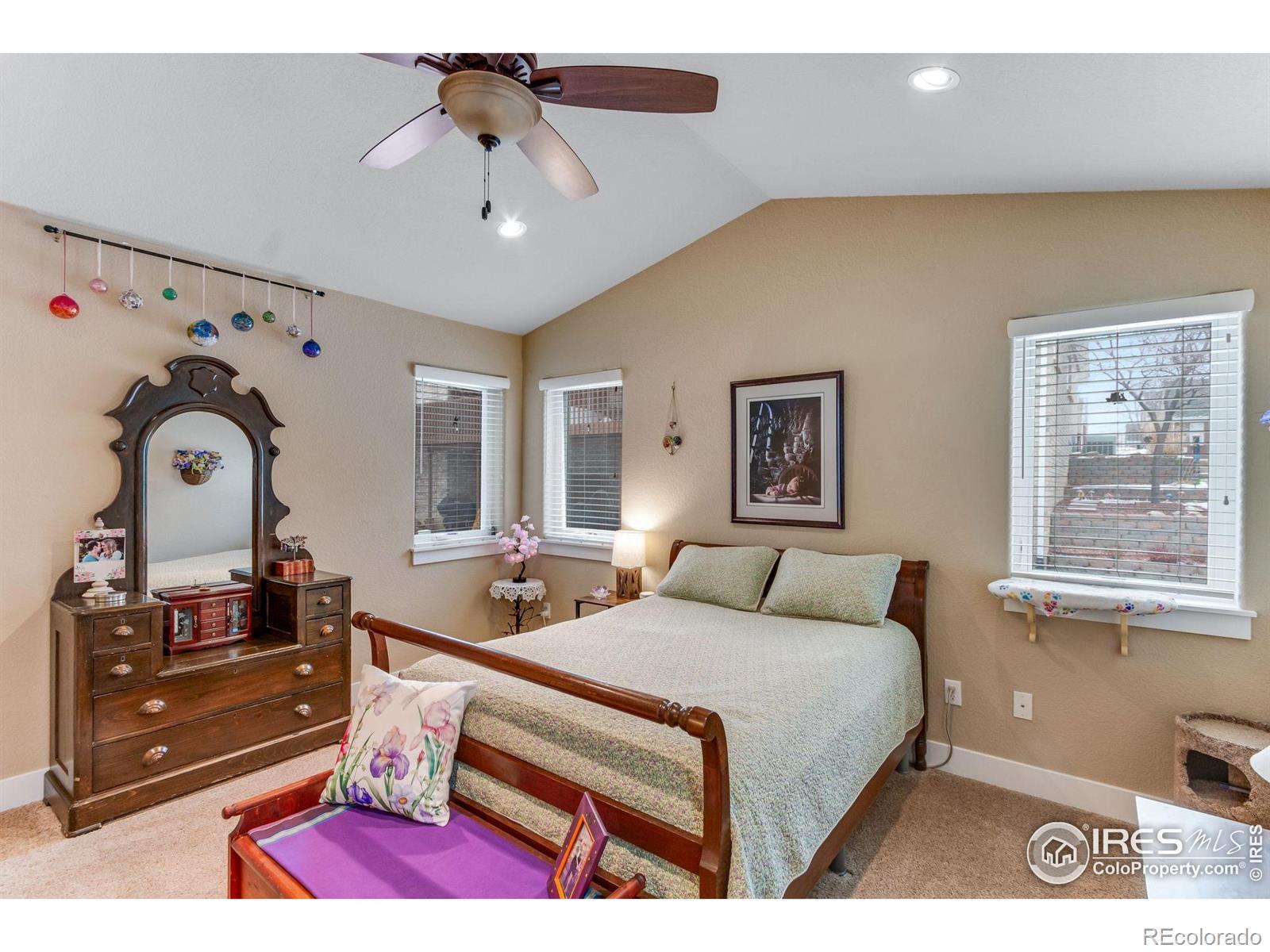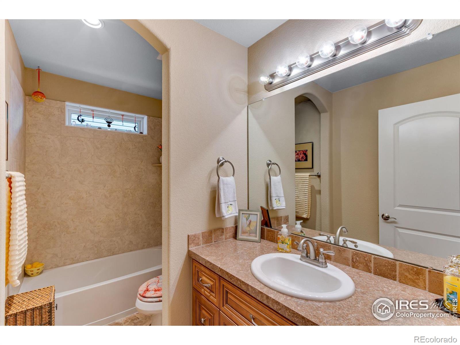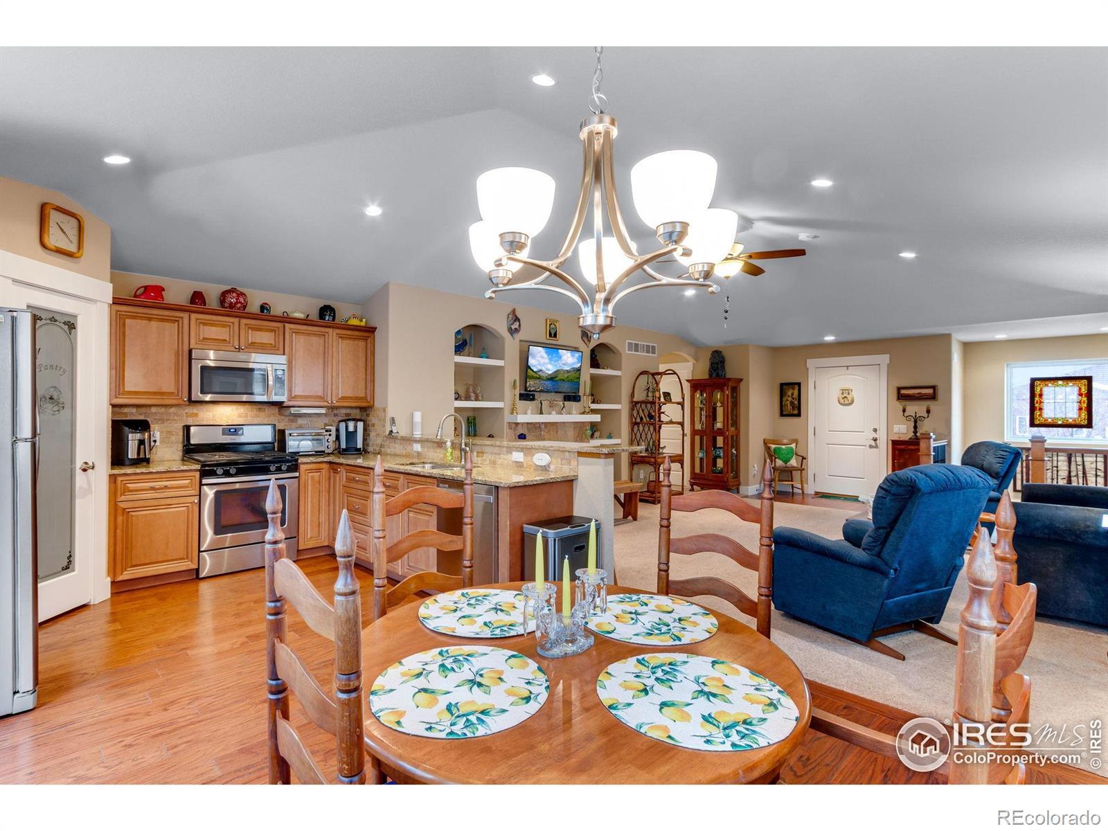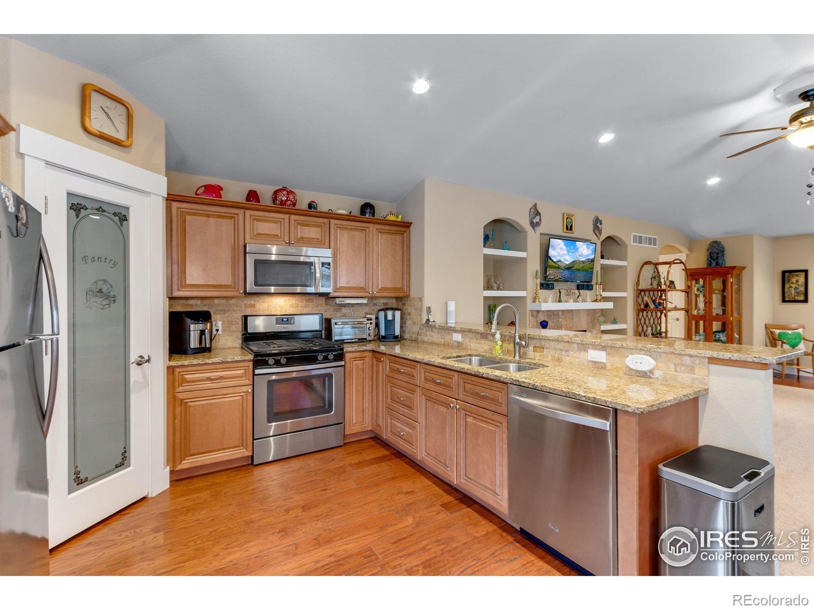 Enjoy this stylish, low-maintenance Patio Home. No yardwork! "Lock and Leave" convenience! Built in 2015, this move-in-ready home offers an open layout with engineered wood floors, granite countertops, stainless steel appliances, and a cozy living room featuring a gas fireplace and custom built-in shelves. The main-floor primary suite includes an ensuite bathroom and walk-in closet. A second bedroom, full bath, and smart laundry complete the main level. The finished basement provides additional living space with a family room, two bedrooms (one with a built-in Murphy bed/desk-ideal for guests or a home office), and a Jack and Jill bathroom. Step outside to the back patio with a natural gas grill and retractable awning. Additional highlights include a 2-car garage, new roof (2020), ceiling fans, custom blinds, and ample storage. HOA covers landscaping and snow removal. Conveniently located with easy access to Old Town and I-25. This well-maintained, attractive subdivision with lots of green space has a community feel to it, and many neighbors engage in coffee clatches and hang out in the open spaces together. No fencing is allowed in this patio home community but there is plenty of area right outside your back door to walk a pup!
