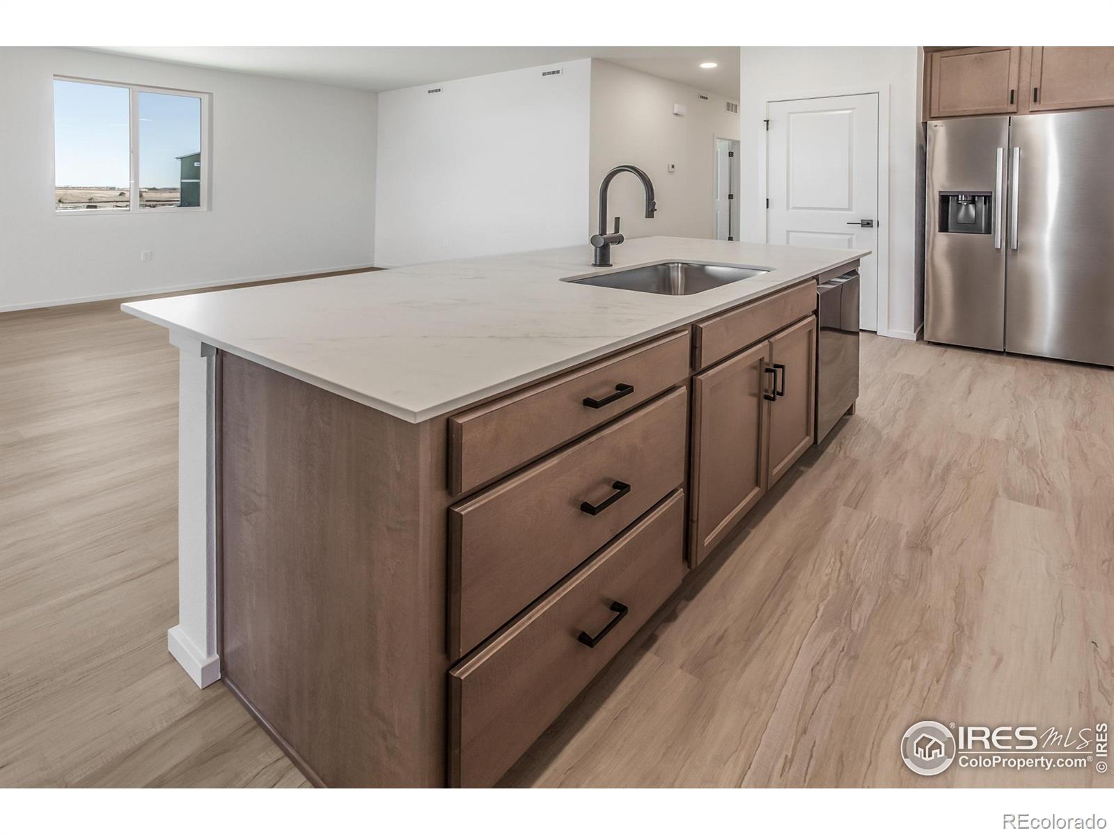 Armstrong floor plan by Hartford Homes. New construction ranch. Open floor plan. Central a/c. S.s. dishwasher, fridge, microwave, range. Biscotti maple cabinetry. Dekton countertops throughout. Vinyl plank flooring in entry, kitchen, great room, dining room. 3 bedrooms. Flex/study space. Washer & dryer included. Garage door opener. Active radon system. Front yard landscaping included. EV Ready Outlet in Garage. There is a $275 annual non-potable water fee to be paid to metro district. Future plans for community to have a Community Green, retail, parks, trails, pool. PHOTOS FROM ACTUAL HOME. ASK ABOUT CURRENT LENDER OR CASH BUYER INCENTIVES. Estimated Nov/Dec completion