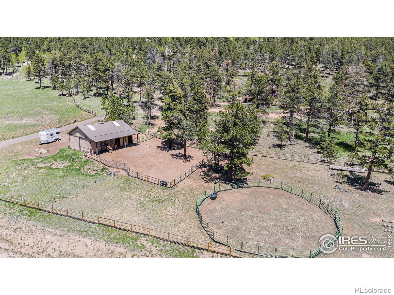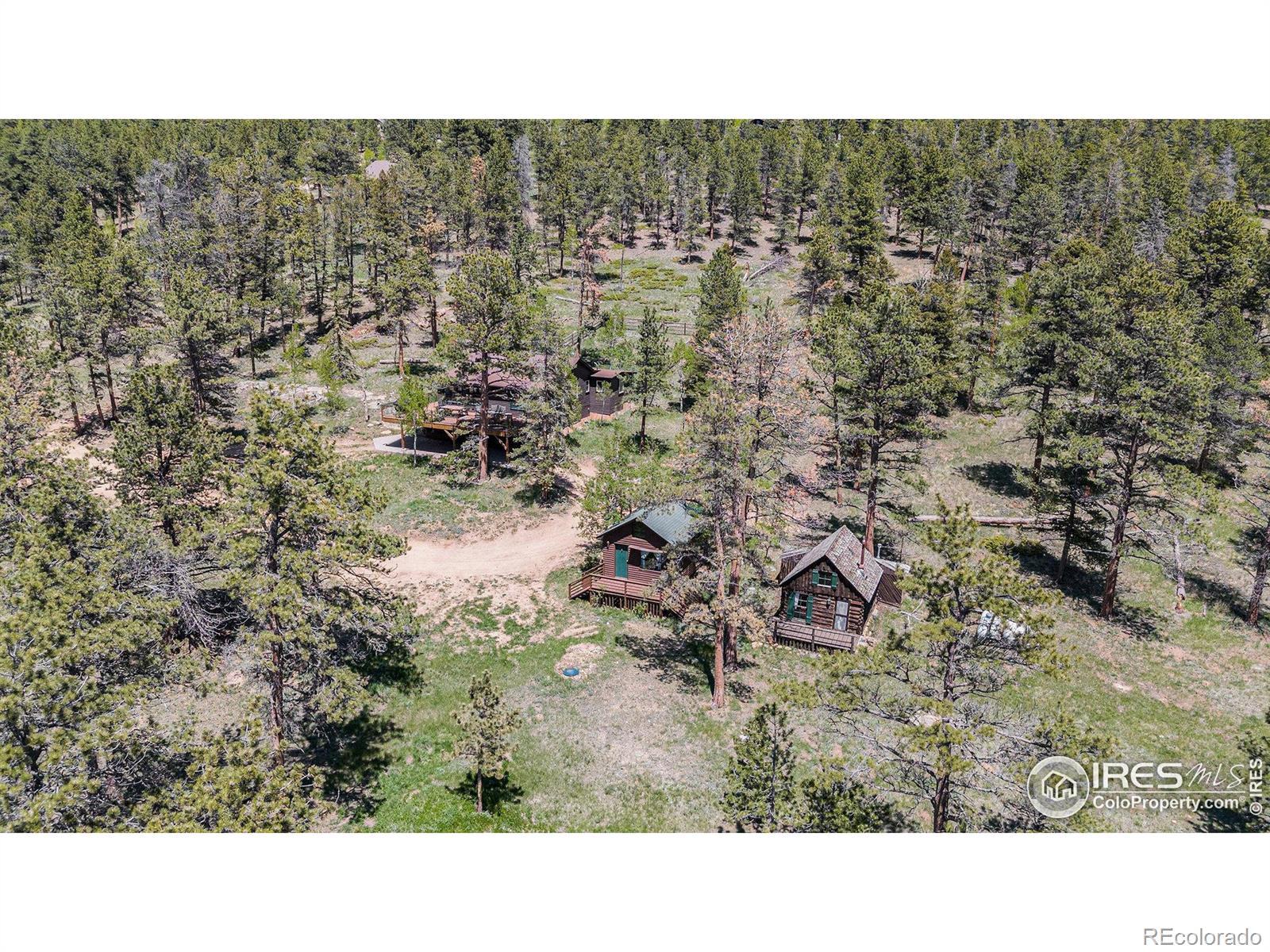 Experience breathtaking views of Longs Peak from this remarkable 12.76-acre mountain retreat, offering a main residence plus two unique guest cabins. Nestled in a serene forest of aspens and pines, the land is alive with wildflowers and native grasses. The 3-bedroom main home features a warm and welcoming great room centered around a native stone fireplace-perfect for cozy evenings and mountain living. The updated 1-bedroom, 1-bath guest cabin provides comfort and privacy, while the enchanting 1884 historic Miner's cabin-complete with wood stove, clawfoot tub, and original tin ceiling-transports you to a bygone era. This property is perfectly suited for horse enthusiasts, featuring a well-maintained three-stall horse barn complete with a corral and open pasture. An automatic waterer provides convenience and ensures your horses stay hydrated year-round. With ample space for riding and grazing, this is an ideal setting for those seeking a functional and comfortable environment for their equine companions. A rare and magical property you won't want to miss!