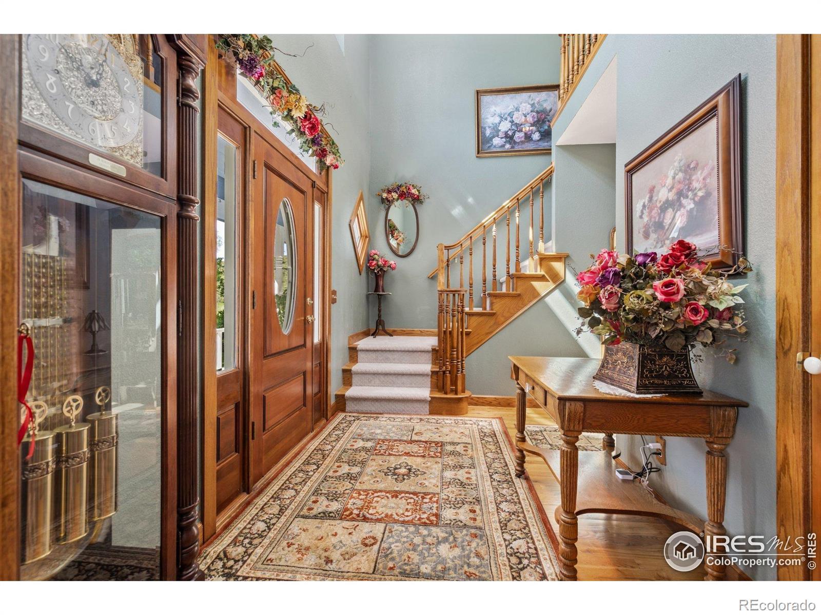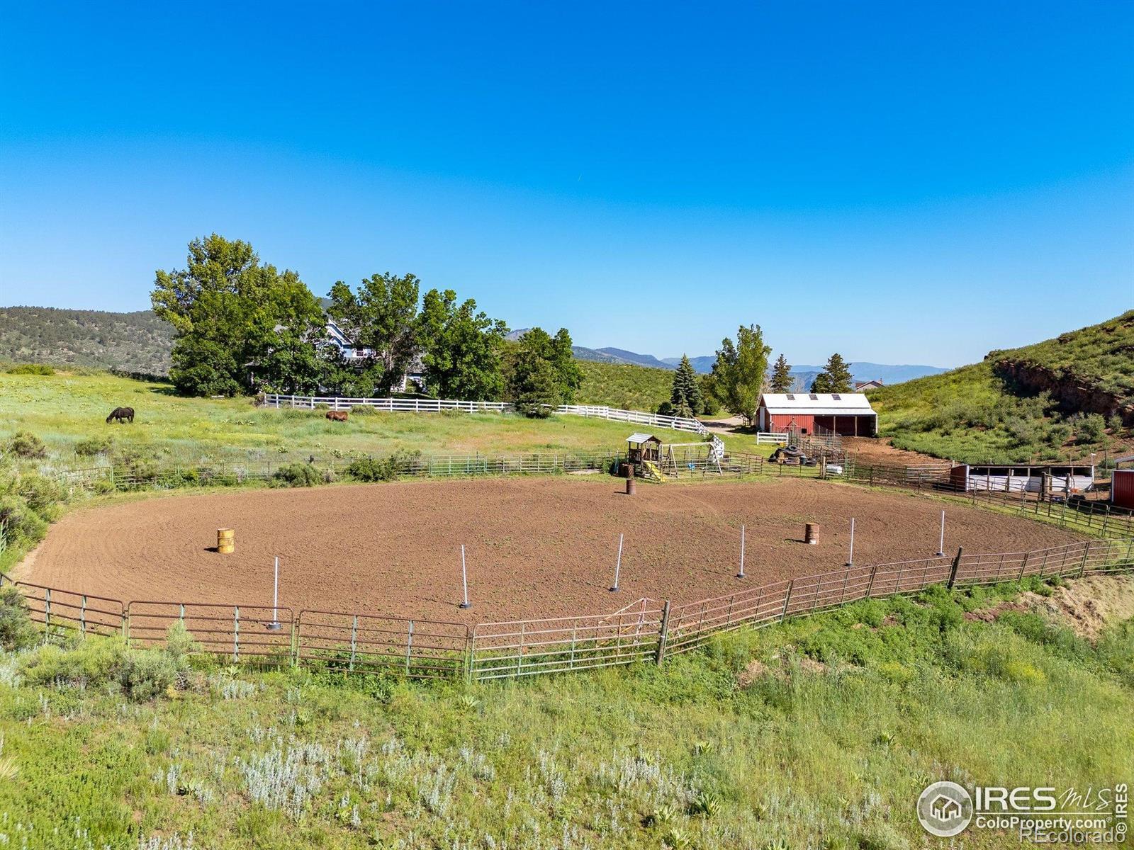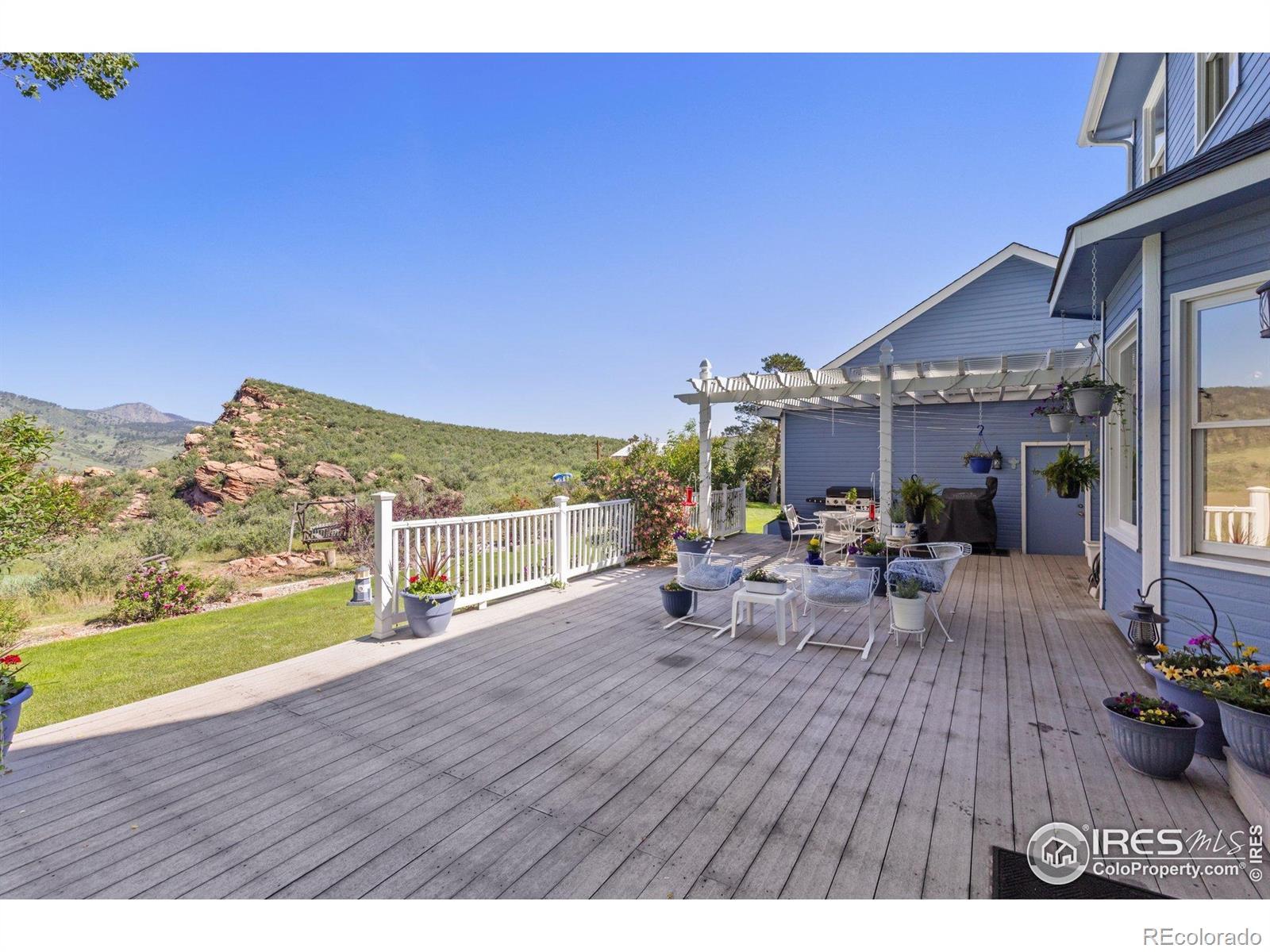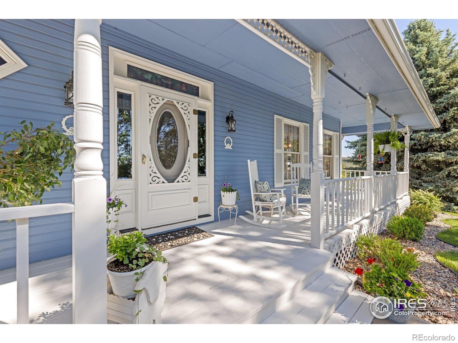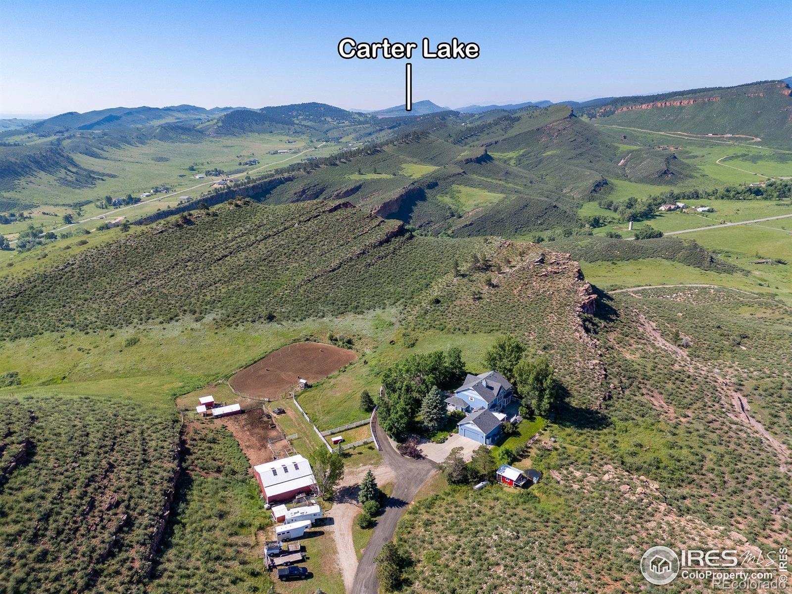 Offered for the first time by its original owners, this custom-designed 40+ acre estate combines privacy, function, and timeless charm in one of Northern Colorado's most scenic foothill settings. Tucked behind a private gate at the end of Rugged Rock Road, the property offers end-of-road seclusion and sweeping views of the surrounding hillsides between Loveland and Berthoud. The nearly 5,000 square foot home was thoughtfully crafted to offer both everyday comfort and elegant gathering spaces. It features five bedrooms and six bathrooms, along with a parlor, sunroom currently used as a home office, formal dining room, and a breakfast nook. A traditional wraparound front porch greets visitors in the front and there's over 1,000 square feet of back deck space creating the perfect setting for relaxing or entertaining against a backdrop of the surrounding natural beauty. Equestrian facilities include a 1,800 square foot barn with stalls, tack room, loafing areas, and storage for tractors or other equipment. Additional features include a chicken coop, loafing sheds, a 132-square-foot shed/shop, and even a 120 by 140 foot riding arena. Surrounded by nature yet conveniently located, the property offers quick access to top regional destinations. Explore fishing, hiking, boating, and paddleboarding at Carter Lake, Pinewood Reservoir, Flatiron Reservoir, and the highly anticipated Chimney Hollow Reservoir and Open Space are all just minutes away. Golfers will appreciate the proximity to TPC Colorado, a championship-level course and host of a PGA Korn Ferry Tour event, offering world-class facilities and dining with panoramic mountain views. This is a rare opportunity to own a one-of-a-kind retreat that balances rural serenity, recreational access, and convenience to the nearby communities.