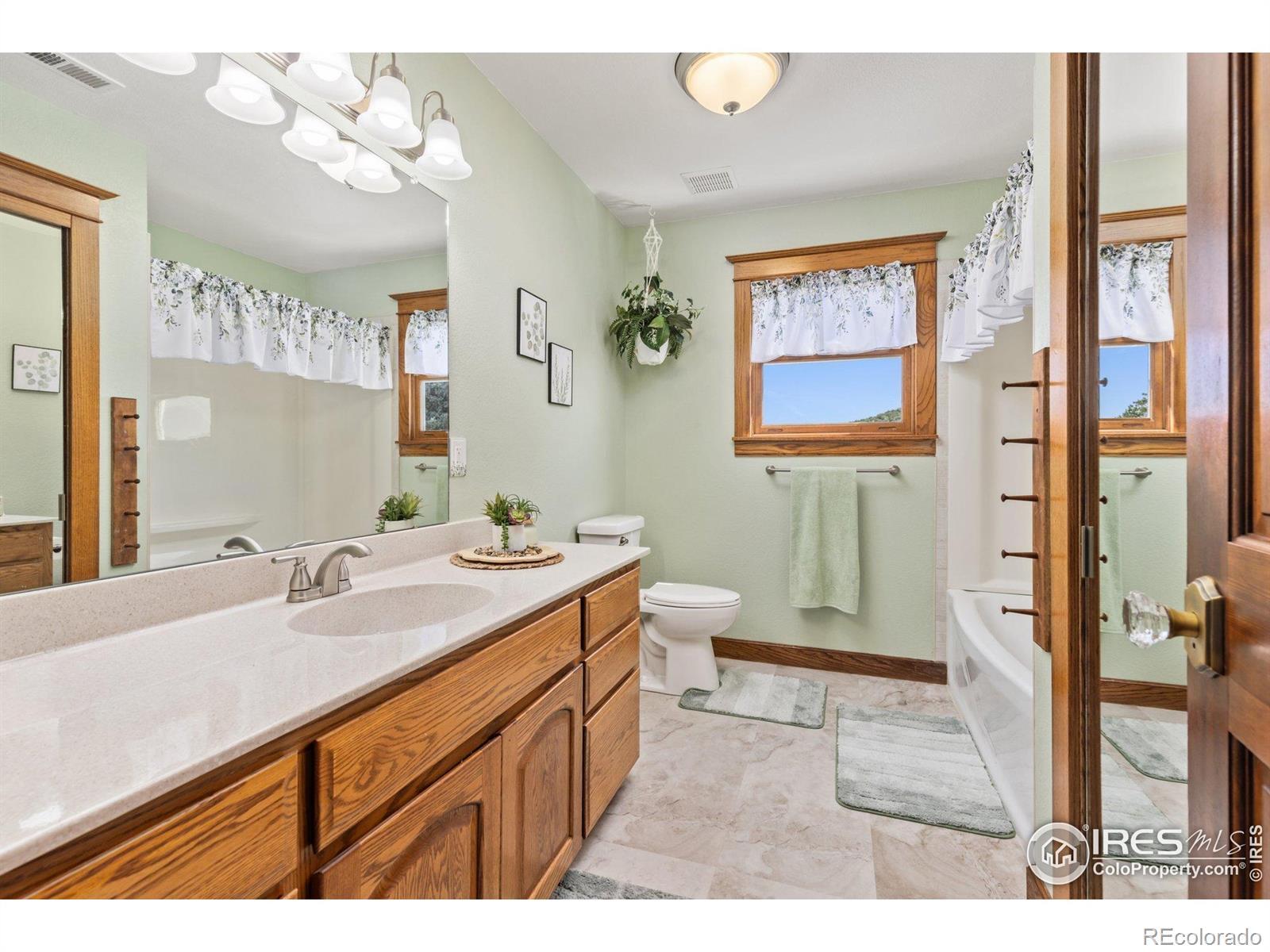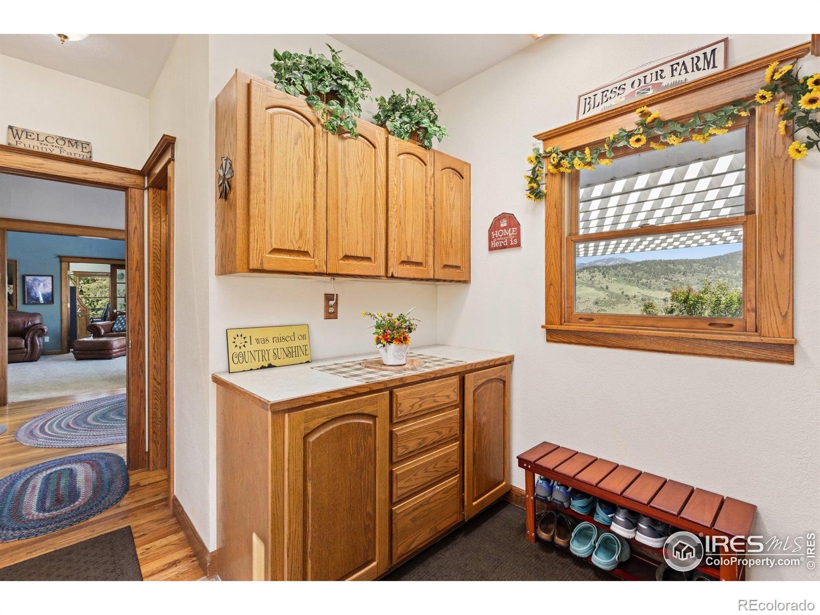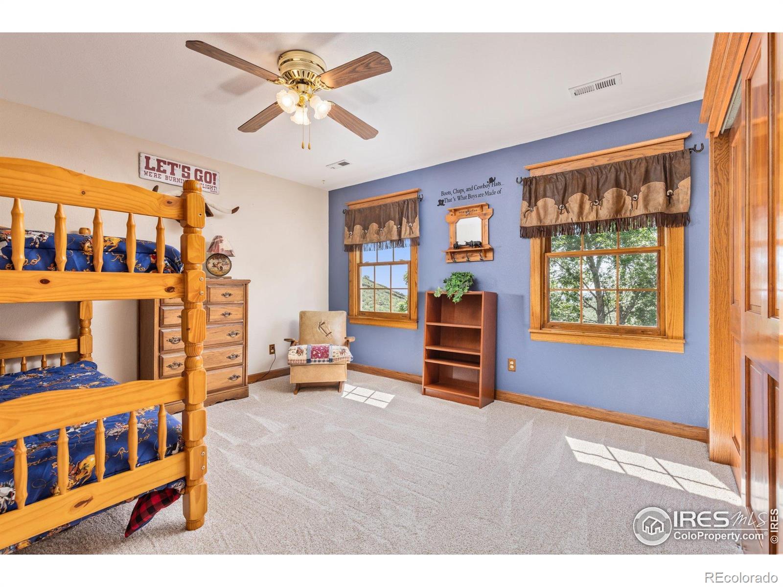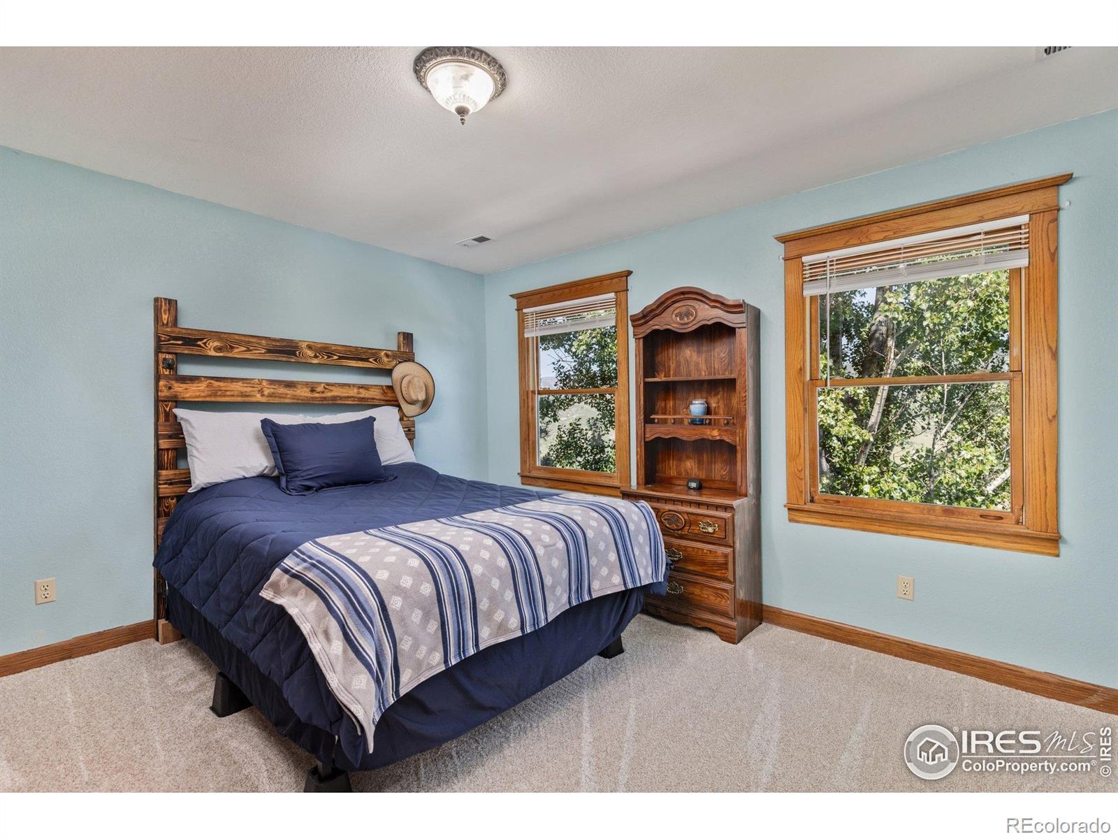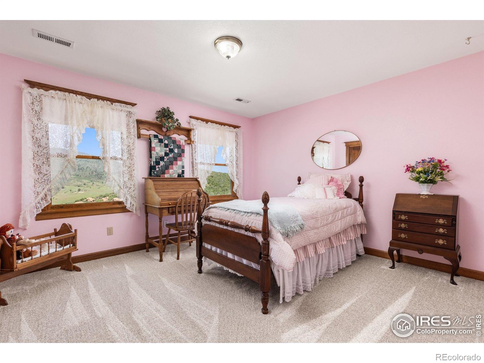 Offered for the first time by its original owners, this custom-designed 40+ acre estate combines privacy, function, and timeless charm in one of Northern Colorado's most scenic foothill settings. Tucked behind a private gate at the end of Rugged Rock Road, the property offers end-of-road seclusion and sweeping views of the surrounding hillsides between Loveland and Berthoud. The nearly 5,000 square foot home was thoughtfully crafted to offer both everyday comfort and elegant gathering spaces. It features five bedrooms and six bathrooms, along with a parlor, sunroom currently used as a home office, formal dining room, and a breakfast nook. A traditional wraparound front porch greets visitors in the front and there's over 1,000 square feet of back deck space creating the perfect setting for relaxing or entertaining against a backdrop of the surrounding natural beauty. Equestrian facilities include a 1,800 square foot barn with stalls, tack room, loafing areas, and storage for tractors or other equipment. Additional features include a chicken coop, loafing sheds, a 132-square-foot shed/shop, and even a 120 by 140 foot riding arena. Surrounded by nature yet conveniently located, the property offers quick access to top regional destinations. Explore fishing, hiking, boating, and paddleboarding at Carter Lake, Pinewood Reservoir, Flatiron Reservoir, and the highly anticipated Chimney Hollow Reservoir and Open Space are all just minutes away. Golfers will appreciate the proximity to TPC Colorado, a championship-level course and host of a PGA Korn Ferry Tour event, offering world-class facilities and dining with panoramic mountain views. This is a rare opportunity to own a one-of-a-kind retreat that balances rural serenity, recreational access, and convenience to the nearby communities.