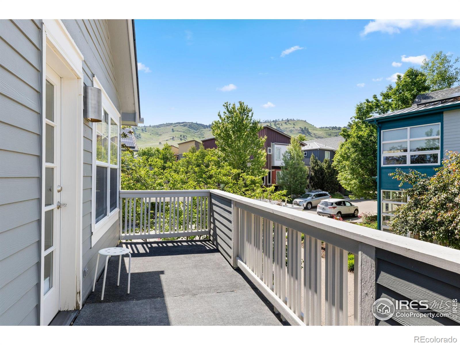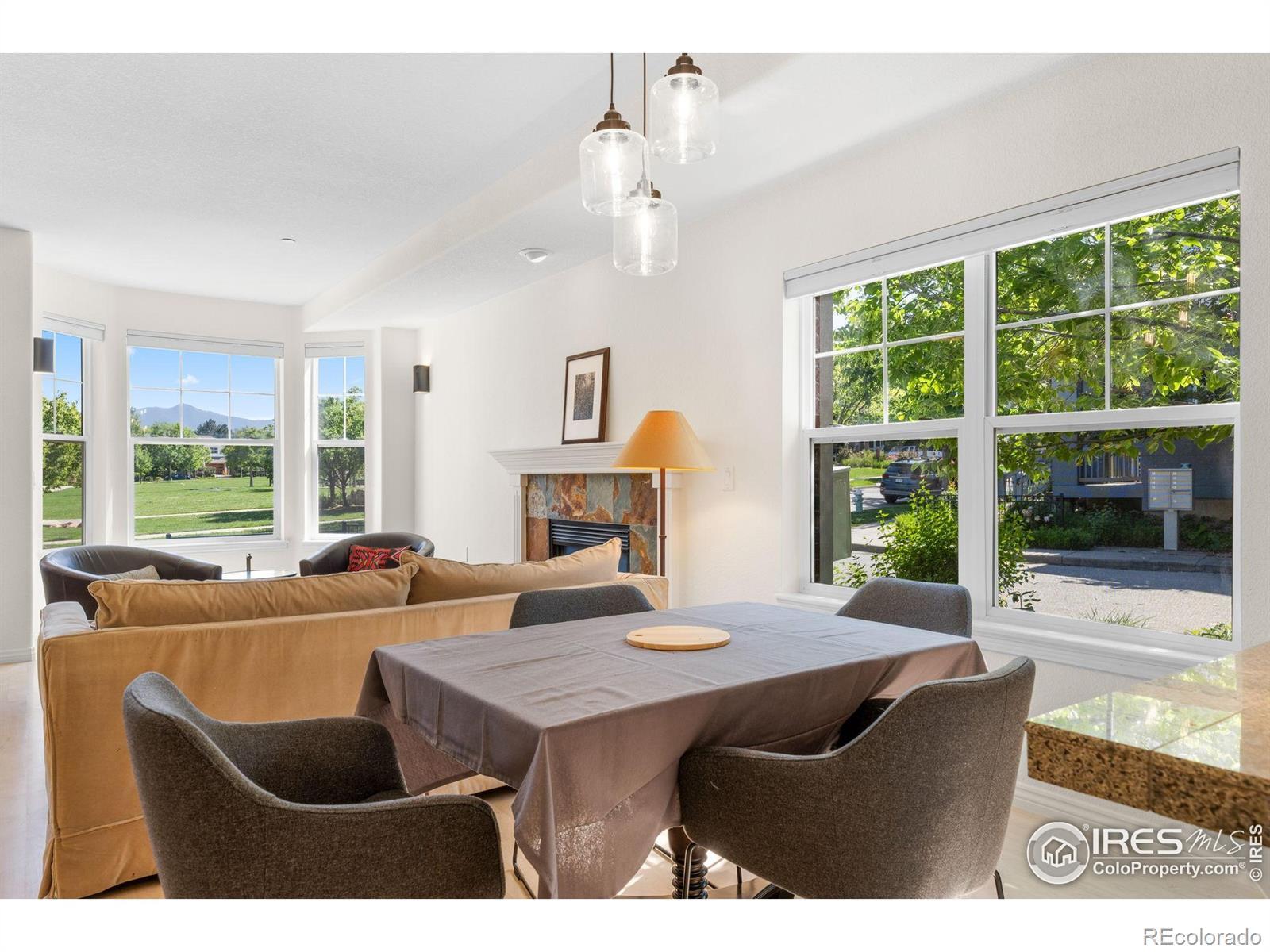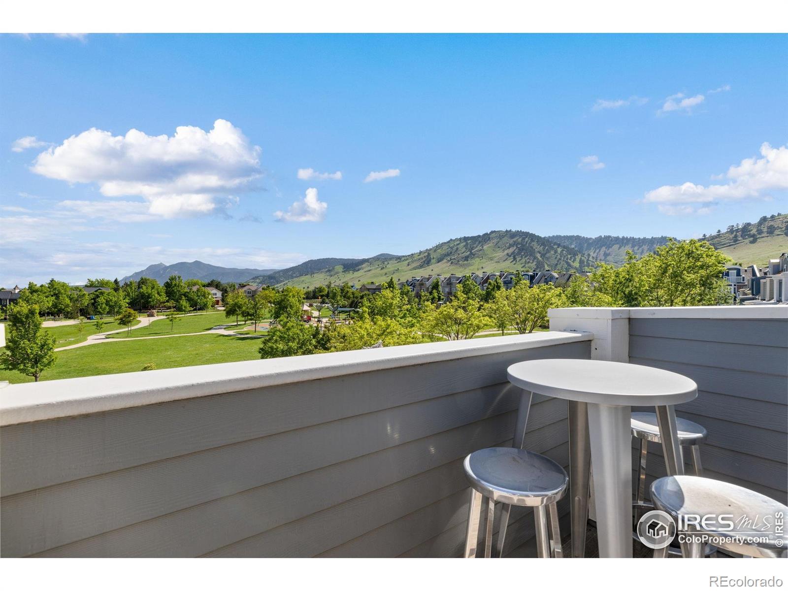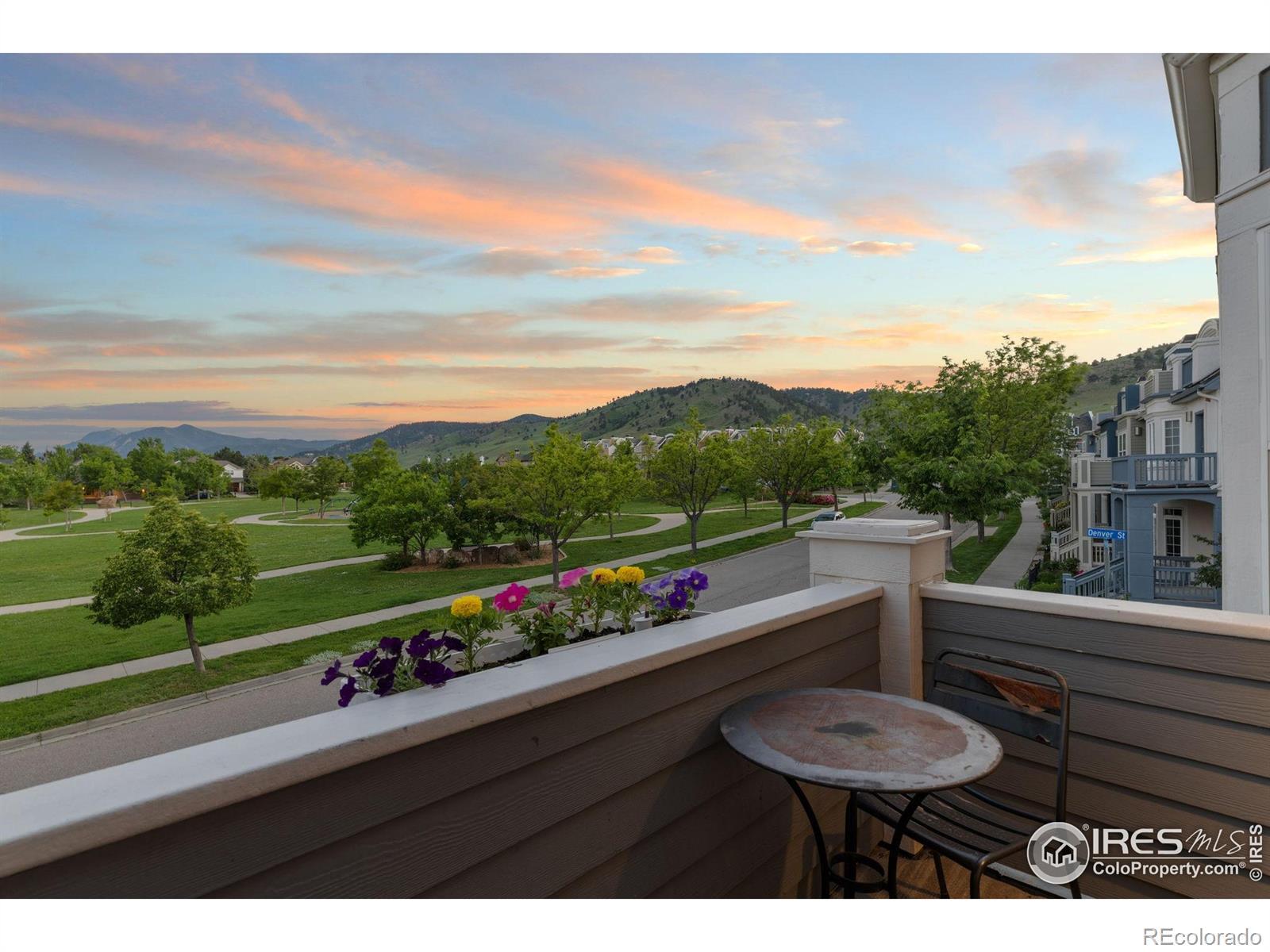 Discover an exceptional opportunity at 555 Laramie Blvd, a rare south-facing end-unit townhouse in Boulder's desirable Dakota Ridge. This home offers spectacular, unobstructed Flatirons views and overlooks a serene park and lush open space, providing an immediate sense of tranquility. It truly stands out with generous square footage compared to interior units and an abundance of natural light. The thoughtfully remodeled entryway immediately opens up the main floor, creating a unique and welcoming feel. The open floor plan is designed for comfortable and elegant living, featuring three private bedrooms, each with its own en-suite bath and private balcony - perfect for unwinding and soaking in the views. The airy, sunlit living room, complete with a cozy fireplace, captures breathtaking mountain views, while the kitchen boasts premium appliances, including a Bosch induction stove, and convenient bar seating. The finished basement, with its impressive 9-foot ceilings and full bath, offers versatile space that can serve as a dynamic recreation/theater room, a dedicated home office, or even a potential fourth bedroom. This home is built for modern comfort and sustainable efficiency, featuring new Mitsubishi heat pumps for effective heating and cooling year-round. Practical amenities include a spacious laundry room and ample storage throughout. The attached two-car garage is equipped with a 40-amp, level-2 EV charger, providing convenient at-home charging and plenty of room for bikes and outdoor gear. Fronting a vibrant community park and miles of scenic trails and popular bike routes, this home offers unparalleled access to Boulder's outdoor lifestyle. With charming shops and exquisite dining options just minutes away, 555 Laramie Blvd is more than just a house; it's a perfect blend of privacy, luxury, and outdoor adventure for living, working, and playing.