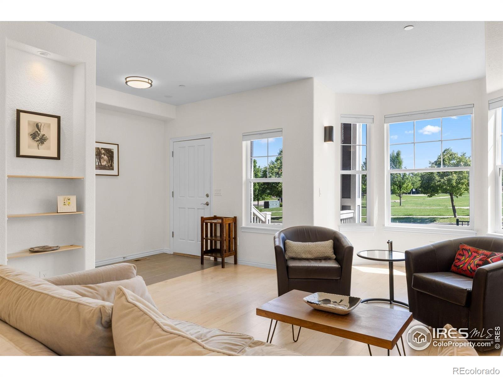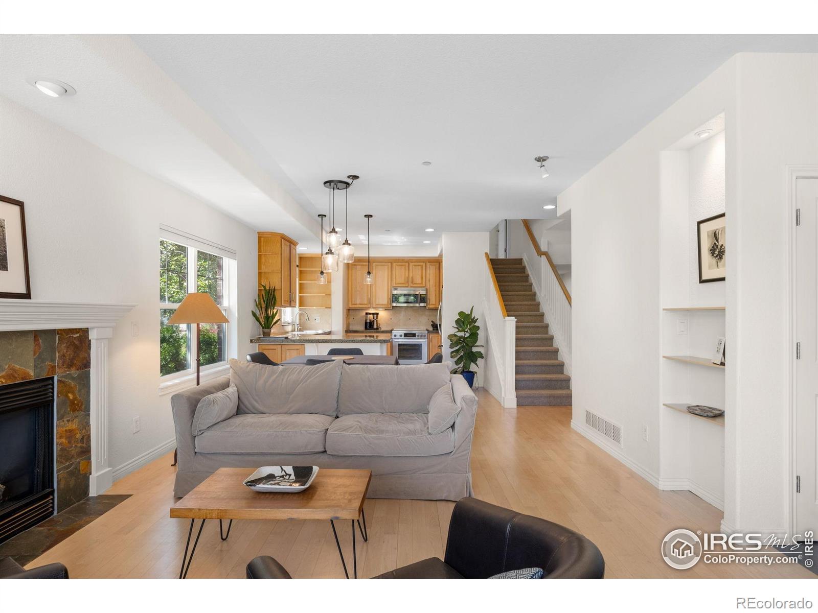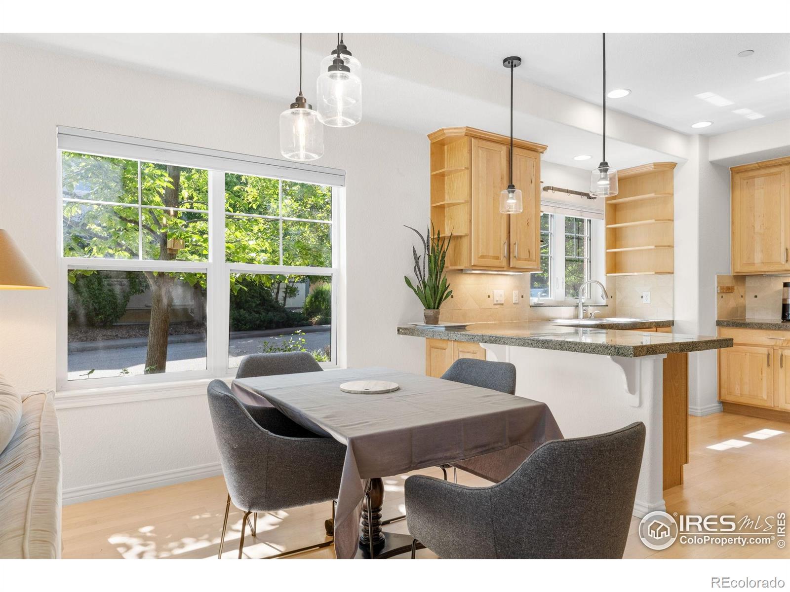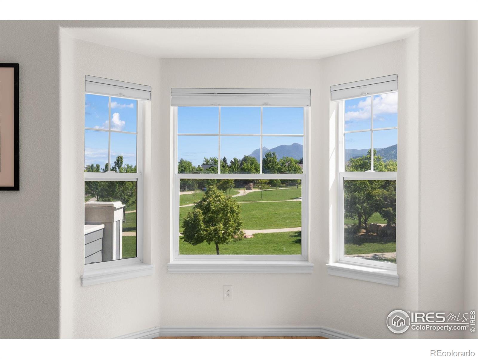Discover an exceptional opportunity at 555 Laramie Blvd, a rare south-facing end-unit townhouse in Boulder's desirable Dakota Ridge. This home offers spectacular, unobstructed Flatirons views and overlooks a serene park and lush open space, providing an immediate sense of tranquility. It truly stands out with generous square footage compared to interior units and an abundance of natural light. The thoughtfully remodeled entryway immediately opens up the main floor, creating a unique and welcoming feel. The open floor plan is designed for comfortable and elegant living, featuring three private bedrooms, each with its own en-suite bath and private balcony - perfect for unwinding and soaking in the views. The airy, sunlit living room, complete with a cozy fireplace, captures breathtaking mountain views, while the kitchen boasts premium appliances, including a Bosch induction stove, and convenient bar seating. The finished basement, with its impressive 9-foot ceilings and full bath, offers versatile space that can serve as a dynamic recreation/theater room, a dedicated home office, or even a potential fourth bedroom. This home is built for modern comfort and sustainable efficiency, featuring new Mitsubishi heat pumps for effective heating and cooling year-round. Practical amenities include a spacious laundry room and ample storage throughout. The attached two-car garage is equipped with a 40-amp, level-2 EV charger, providing convenient at-home charging and plenty of room for bikes and outdoor gear. Fronting a vibrant community park and miles of scenic trails and popular bike routes, this home offers unparalleled access to Boulder's outdoor lifestyle. With charming shops and exquisite dining options just minutes away, 555 Laramie Blvd is more than just a house; it's a perfect blend of privacy, luxury, and outdoor adventure for living, working, and playing.
